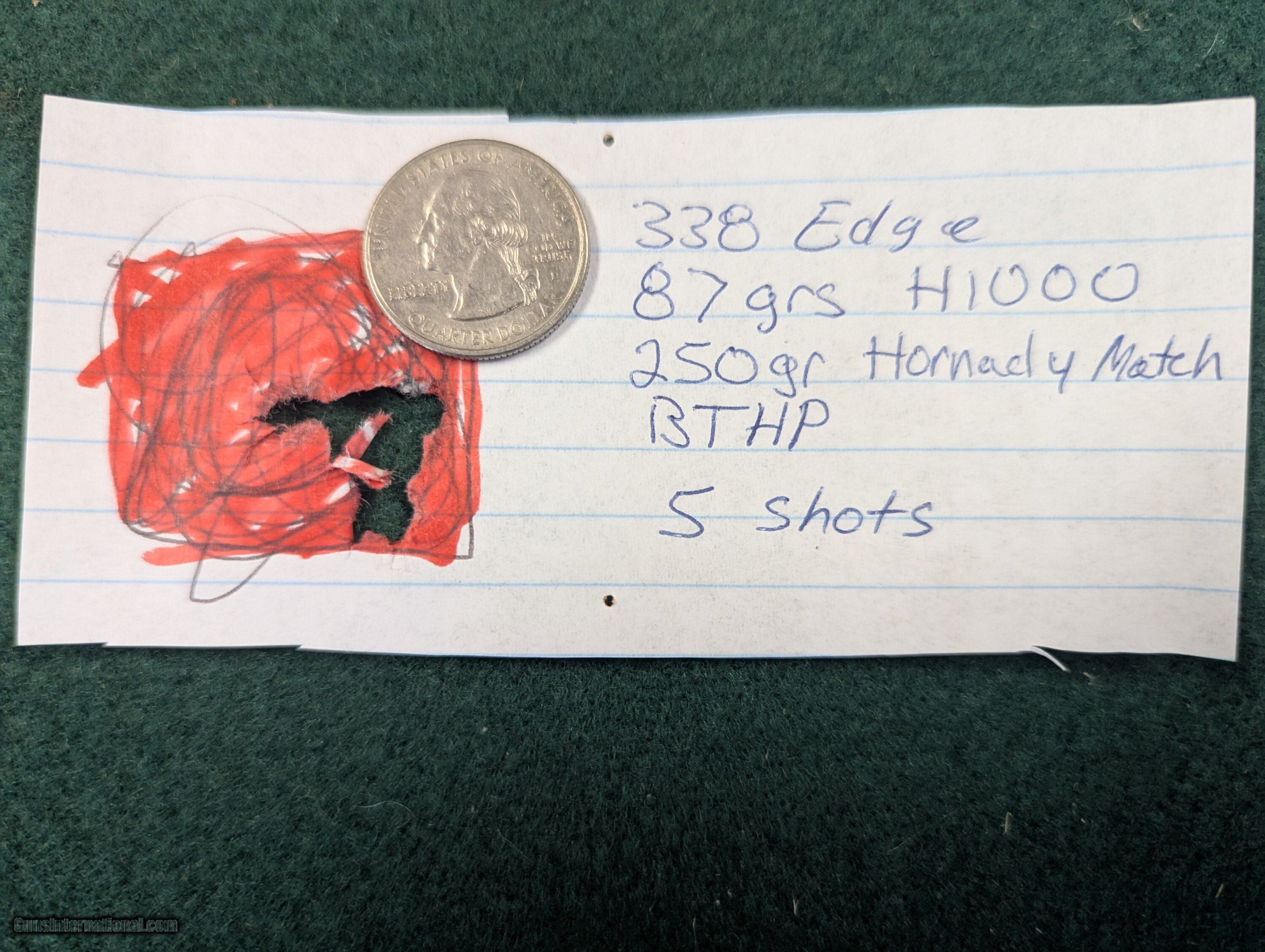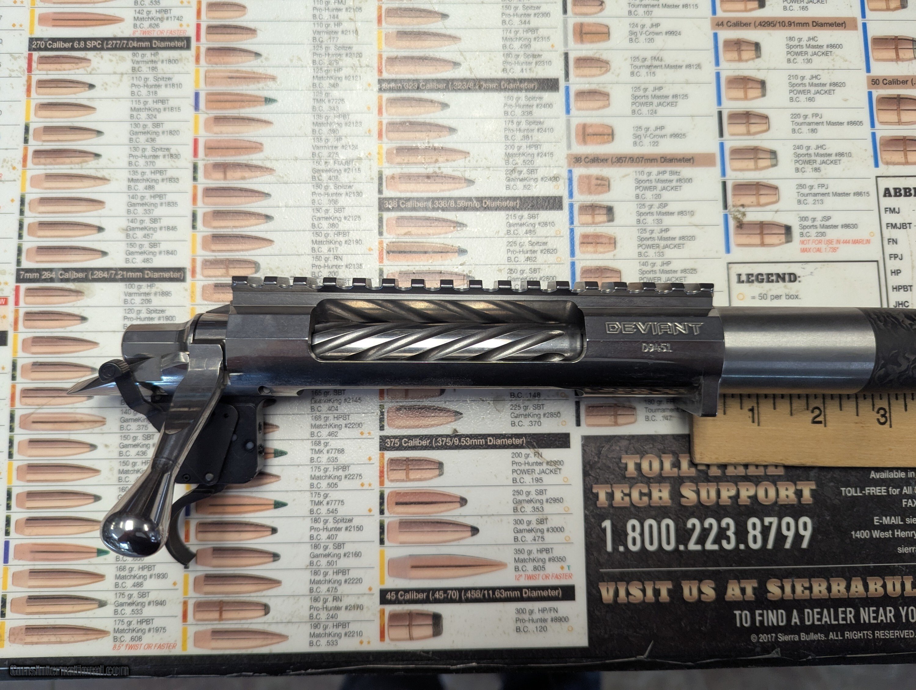Description: Custom rifle on Defiance Deviant Tactical action in 338 edge with a Plus P chamber. 104 rds thru rifle. 20 MOA intergraded rail Timeny trigger Proof Research carbon fiber 30" barrel 9.4 twist Piercision slabbes 5 port muzzle brake 5/8-24 thread Manners EH1 stock with DBM mini chassis Comes with 100 new never opened ADG brass, 168) Berger 338 300gr bullets and 28) Hornady 338 250gr. Also 50rd used brass. 3 loaded, 36 deprimed and sized, 10 primed and sized, and one modified case for checking over all length. This action was ordered with a oversized .750 bolt so it can be sent back to Defiance to be fitted for lapua bolt. I built 2 of these rifles for my dad and I to shoot together but he got sick so that is my reason for selling. Gun shoots great. Please see pictures of groups. I am a professional gunsmith so please call with any questions 6059872486. Rifle Caliber: .338 Edge Price: $4,200.00 Shipping: $100.00 Contact Seller |