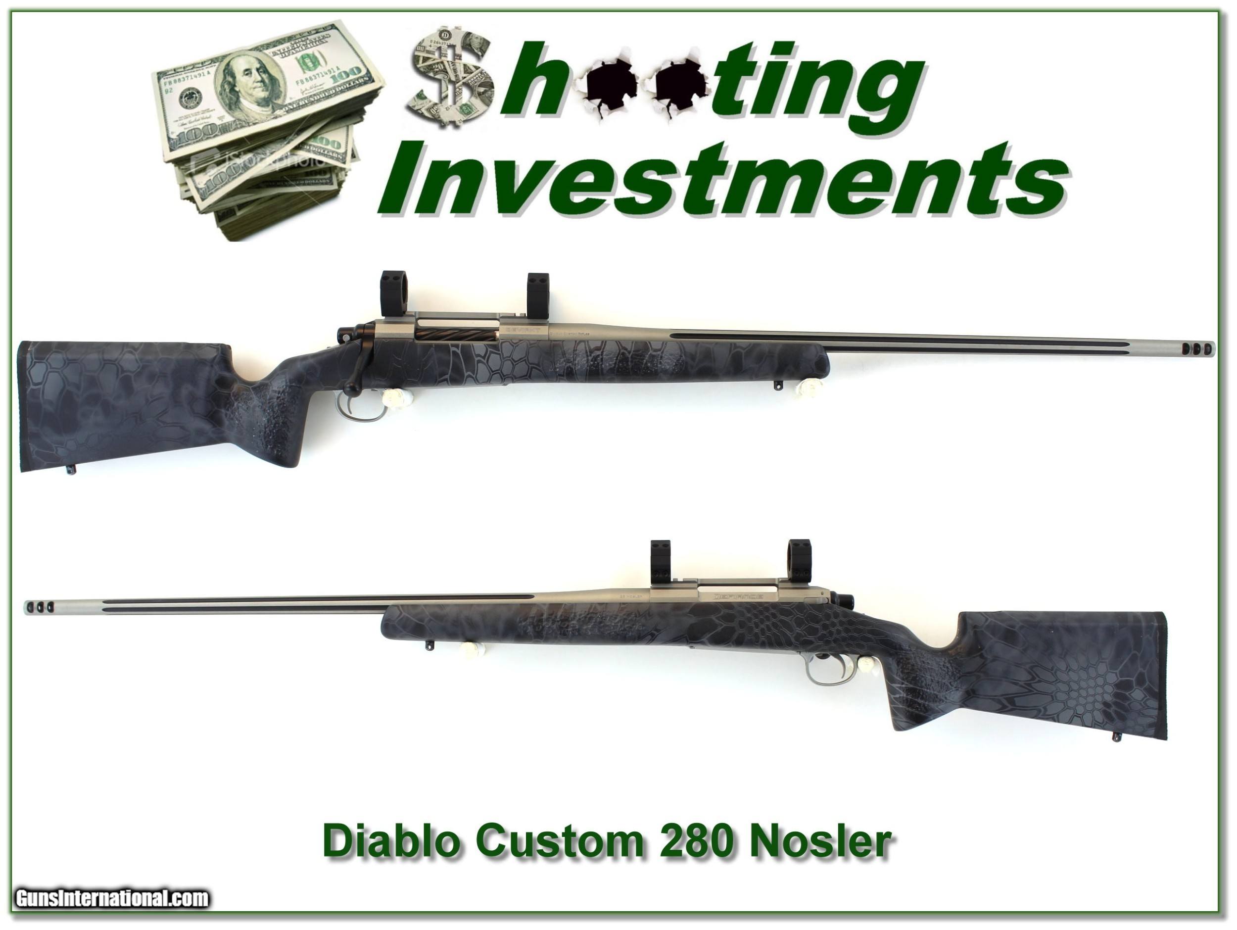 Description: This is a like new Diablo Custom Rifles in 28 Nosler. It is built on a Defiant Deviant action with Bartlein 3B, 26” fluted barrel with custom blended brake. It has a 9 in 1 twist. The stock is Manners EH1 dipped Kryptek Typhoon with 13.5in LOP. It has a Jewell trigger set at about 2#. It has Cerakoted metal and included Seekins 30 mm rings ($120.00). It weighs 7.5libs. This rifle was built to shoot 180 grain Berger VLD Hybrids and is highly accurate. Only a few rounds fired. I am selling this one on consignment and as such lay-a-way can’t be used. It does of course have the standard 3-day inspection. Shipping and insurance is $59. Please email me with any questions or larger pictures. (Consign your quality firearms with Shooting Investments for only 12%! Let me know if you have any you would like to sell!) 20-0137 Payment: Payment is by Money Order, Cashiers Check or Personal Check. I can now also accept MasterCard and Visa with a 3% convenience fee. PayPal can be used for some items but never firearms. Please let us know if you would like to pay via PayPal. Shipping: The shipping charge will be listed in each description. It is $39 for most guns. Some heavy guns or those insured for over $2000 will be higher. Shipments to Alaska and Hawaii are higher because air shipment is required. Most firearms are shipped on Tuesday and Thursday and usually in 5 days of receipt of payment. We package all shipments carefully and insure them. Returns: Our return policy is simple. If for any reason you are not pleased with your purchase, you may return your item for a full refund of purchase price. Ammunition cannot be returned. It is important to us that you are happy. Guns cannot be fired or dissembled before returning them and they must be returned in the same condition as received. Notification of a return must occur with-in 3 days of receipt at your dealer. Shipping, convenience and dealer fees are not refundable and are the responsibility of the buyer. Lay-a-way: If needed, we offer a 60 day lay-a-way option on most firearms. It is 1/3 now, 1/3 in 30 days and 1/3 in 60 days. Lay-a-way firearm sales are final and if not completed the first payment cannot be returned. Consigning your firearms with Shooting Investments: We will help you get top dollar for your firearms. While most local guns shops charge 20% or more, our fee is only 12% with a minimum of $75. At your local gun shop it might take months to sell. Selling on-line provides instant access to thousands of interested buyers. You won’t find any other on-line dealer willing to sell your firearms for only 12% or listing every gun on 3 separate s. Selling through an House typically costs the seller 15% and the buyer an addition 15% (so 30%) and you have to wait several months to sell and longer to receive funds. If properly priced, we will sell your firearms in a few weeks. Send us an email or give us a call and we’ll explain how easy it is for you to get top dollar. Trading: Trading for use is really just buying your gun to re-sell. If you have a gun you want to trade, please email a picture and we will let you know what we can give or it. You will always get more if we sell it for you on consignment. Help for California Buyers: We are happy to ship to California. It is the buyer’s responsibility to make sure any item you buy is legal in your state. We are also happy to help with your purchase of a firearm from someone other than us. If you see a gun you would like to buy but the seller can’t or won’t ship to California they can ship to use and we’ll then ship it to your California dealer. The cost for this service is only $30 + shipping. Let us know if we can help! SOLD |