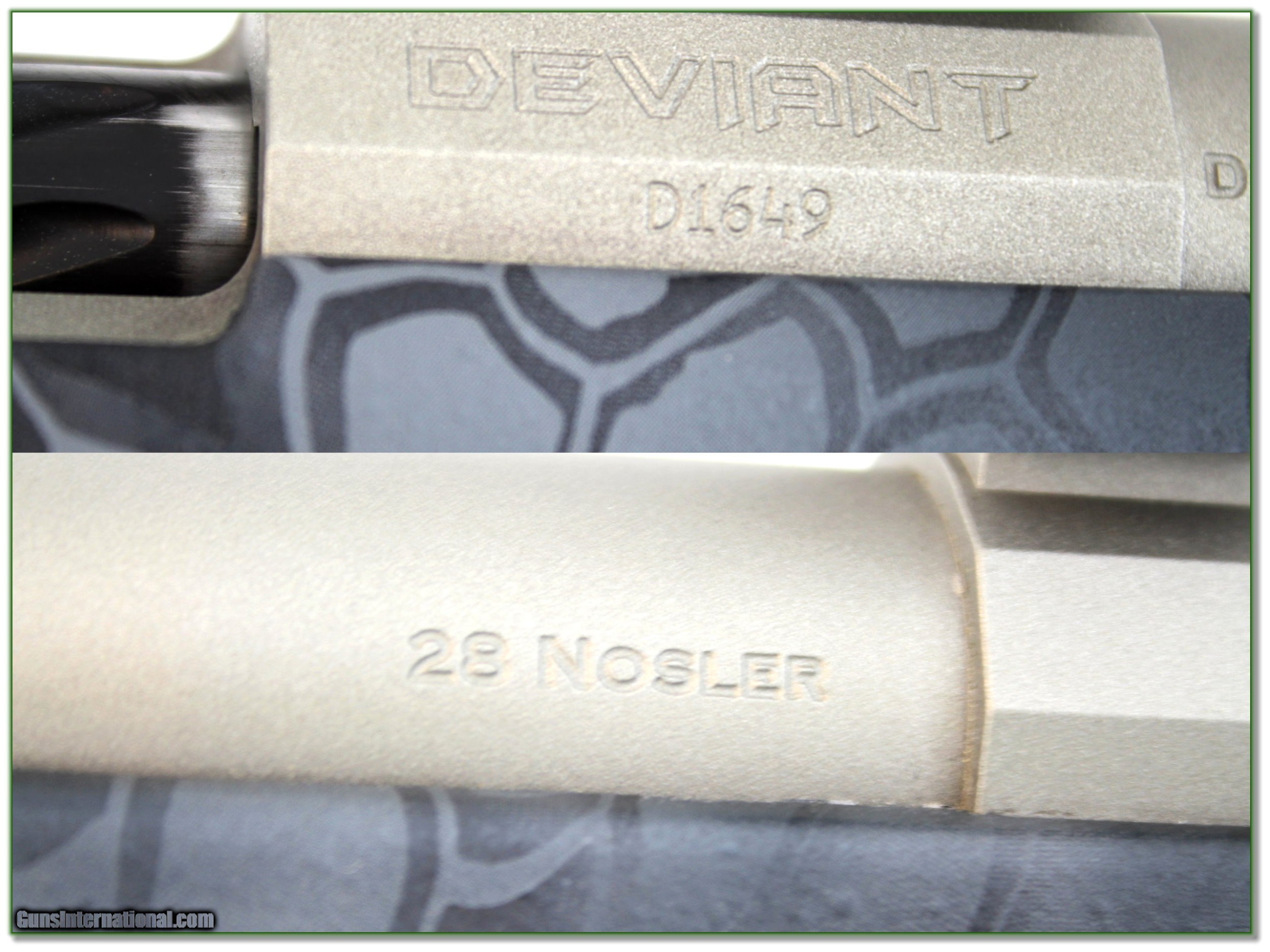 Description: This is a like new Diablo Custom Rifles in 28 Nosler. It is built on a Defiant Deviant action with Bartlein 3B, 26” fluted barrel with custom blended brake. It has a 9 in 1 twist. The stock is Manners EH1 dipped Kryptek Typhoon with 13.5in LOP. It has a Jewell trigger set at about 2#. It has Cerakoted metal and included Seekins 30 mm rings ($120.00). It weighs 7.5libs. This rifle was built to shoot 180 grain Berger VLD Hybrids and is highly accurate. Only a few rounds fired. I am selling this one on consignment and as such lay-a-way can’t be used. It does of course have the standard 3-day inspection. Shipping and insurance is $59. Please email me with any questions or larger pictures. (Consign your quality firearms with Shooting Investments for only 12%! Let me know if you have any you would like to sell!) 20-0137 Payment: Payment is by Money Order, Cashiers Check or Personal Check. I can now also accept Credit Cards (MasterCard, Visa, Discover & American Express) with a 3% convenience fee. Shipping: The shipping charge will be listed in each description. It is $39 for most firearms. Some heavy guns or those insured for over $2000 will be higher. Shipments to Alaska and Hawaii are higher because air shipment is required. Most firearms are shipped on Tuesday and Thursday and usually in 5 days of receipt of payment. We package all shipments carefully and insure them. Optics are shipped Priority Mail and most other non-firearm shipments are shipped First Class. Returns: Our return policy is simple. If for any reason you are not pleased with your purchase, you may return your item for a full refund of purchase price. Ammunition cannot be returned. It is important to us that you are happy. Guns cannot be fired or dissembled before returning them and they must be returned in the same condition as received. Notification of a return must occur with-in 3 days of receipt at your dealer. Shipping, convenience and dealer fees are not refundable and are the responsibility of the buyer. Lay-a-way: If needed, we offer a 60 day lay-a-way option on most firearms. It is 1/3 now, 1/3 in 30 days and 1/3 in 60 days. Lay-a-way firearm sales are final and if not completed the first payment cannot be returned. Consigning your firearms with Shooting Investments: We will help you get top dollar for your firearms. While most local guns shops charge 20% or more, our fee is only 12% with a minimum of $75. At your local gun shop it might take months to sell. Selling on-line provides instant access to thousands of interested buyers. You won’t find any other on-line dealer willing to sell your firearms for only 12% or listing every gun on 3 separate s. Selling through an House typically costs the seller 15% and the buyer an addition 15% (so 30%) and you have to wait several months to sell and longer to receive funds. If properly priced, we will sell your firearms in a few weeks. Send us an email or give us a call and we’ll explain how easy it is for you to get top dollar. Trading: Trading for use is really just buying your gun to re-sell. If you have a gun you want to trade, please email a picture and we will let you know what we can give or it. You will always get more if we sell it for you on consignment. Help for California Buyers: We are happy to ship to California. It is the buyer’s responsibility to make sure any item you buy is legal in your state. We are also happy to help with your purchase of a firearm from someone other than us. If you see a gun you would like to buy but the seller can’t or won’t ship to California they can ship to use and we’ll then ship it to your California dealer. The cost for this service is only $30 + shipping. Let us know if we can help! SOLD |