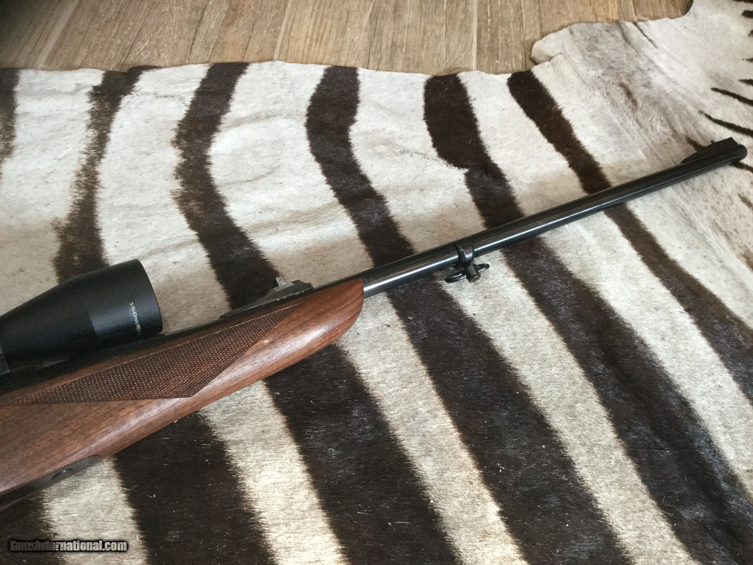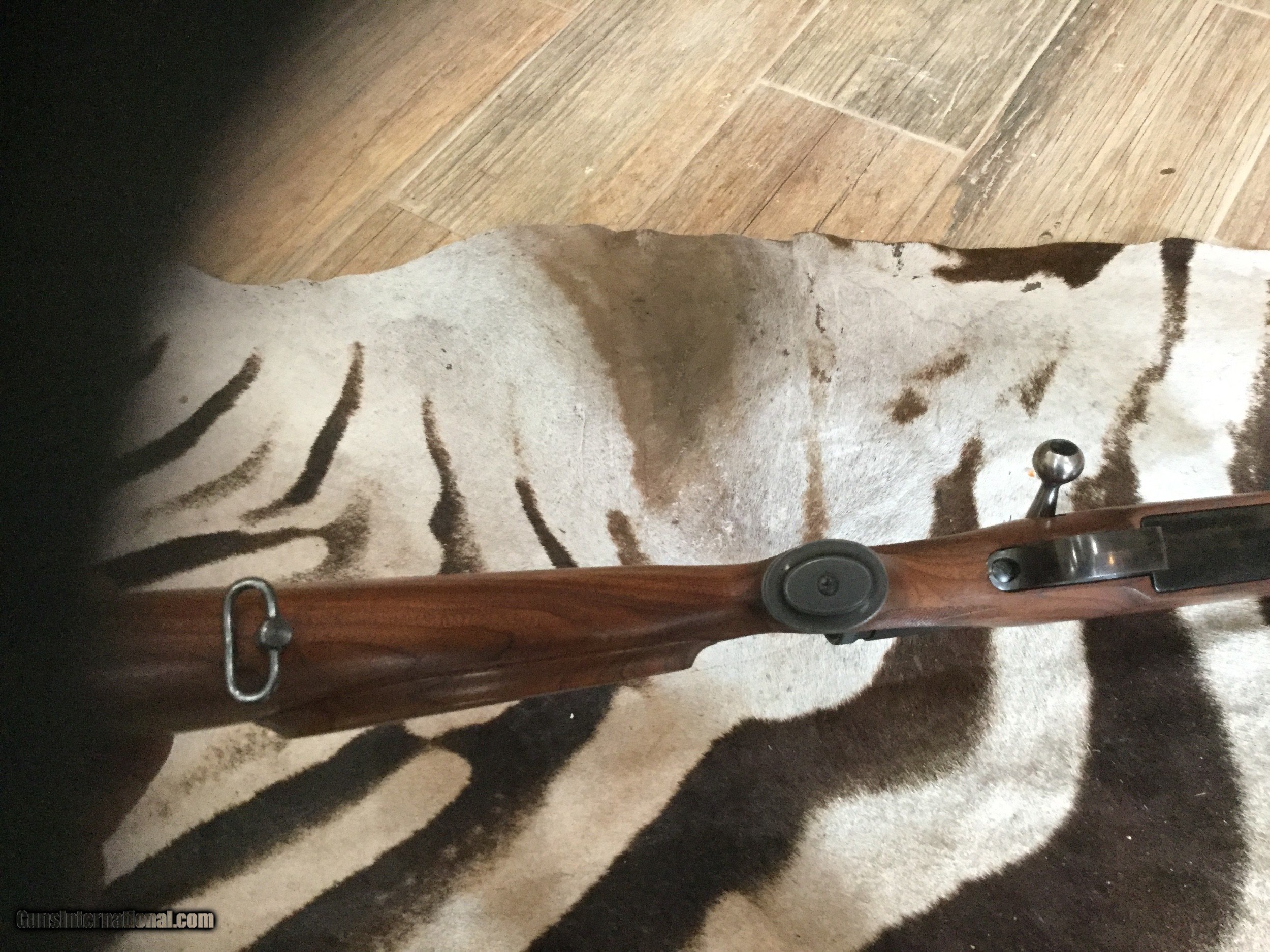 Description: This is a custom rifle built in England on a BSA (Birmingham Small Arms) in 270 Winchester it sports a beautiful slender English style stock with Silvers recoil pad, island sight with one standing one folding leaves, barrel band sling attachment. Metal and wood condition is 99% plus without any sign of use. It comes with built in quick detach scope mount and Weaver 3x9x40 scope. It came with a collection I acquired years ago so I have very little information about the maker. SOLD PENDING FUNDS SOLD Manufacturer: Custom Barrel Length: 24” Caliber Info: 270 Winchester Condition: 99% Metal Condition: 99% Wood Condition: 99% Bore Condition: 100% Action: Bolt Triggers: Adjustable to 2-1/2 pounds Stock Cast: Right hand Butt Pad: Silvers LOP: 14-5/8” Finish: Blue/nickel Weight: 8 pounds scoped Sights: Open two leaf Manufacture Date: Unknown Extras: Scope Case: No Item Location: North Carolina Proof:Nitro: Yes |