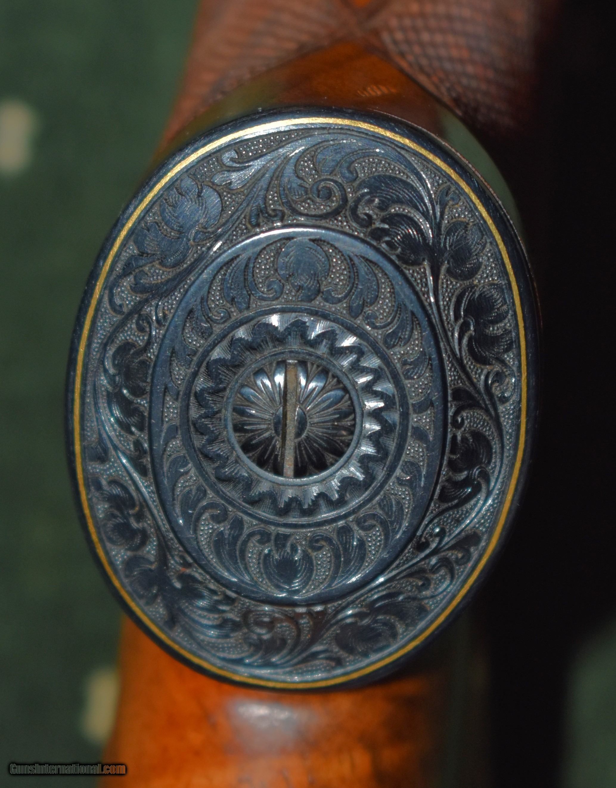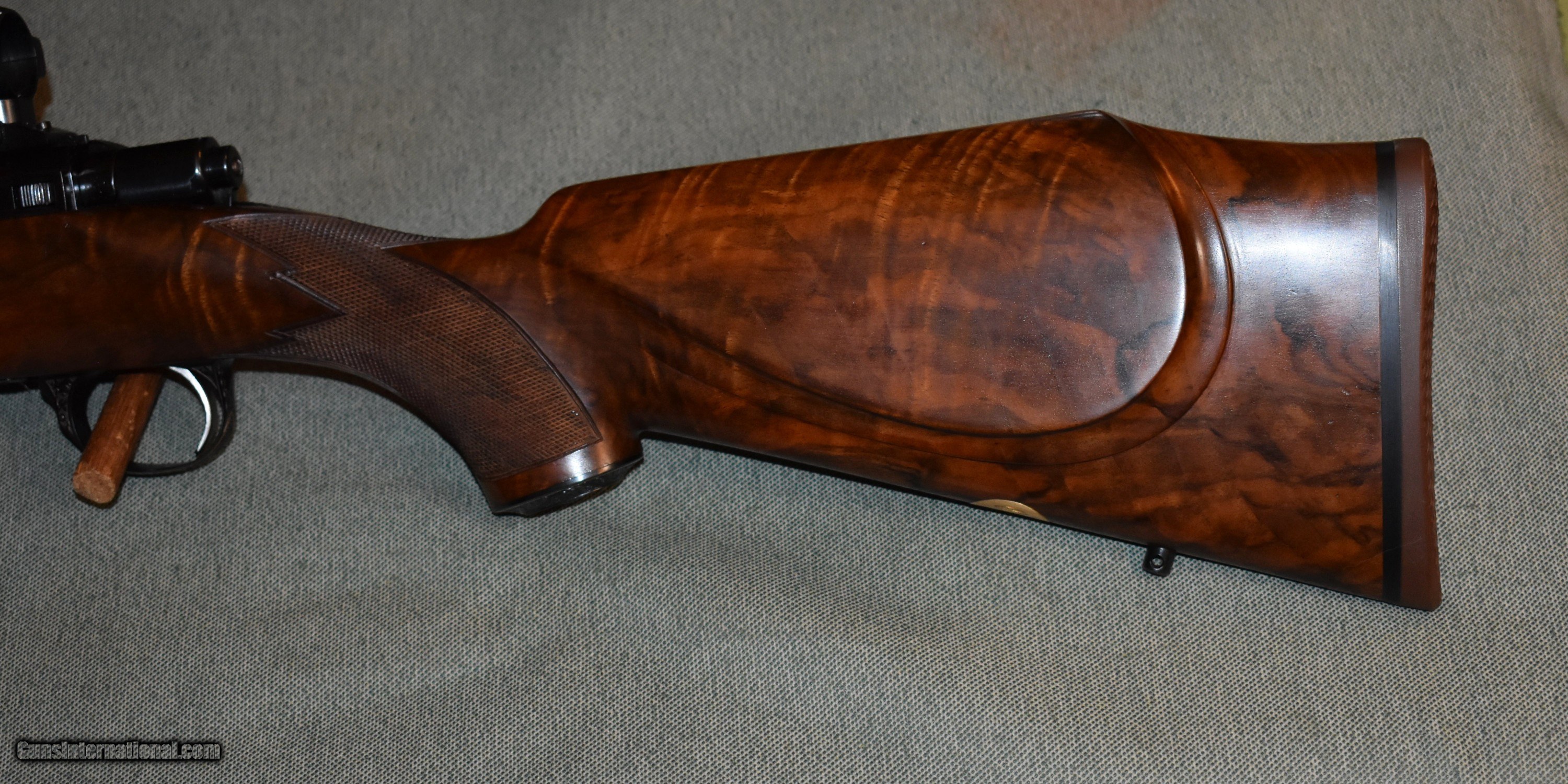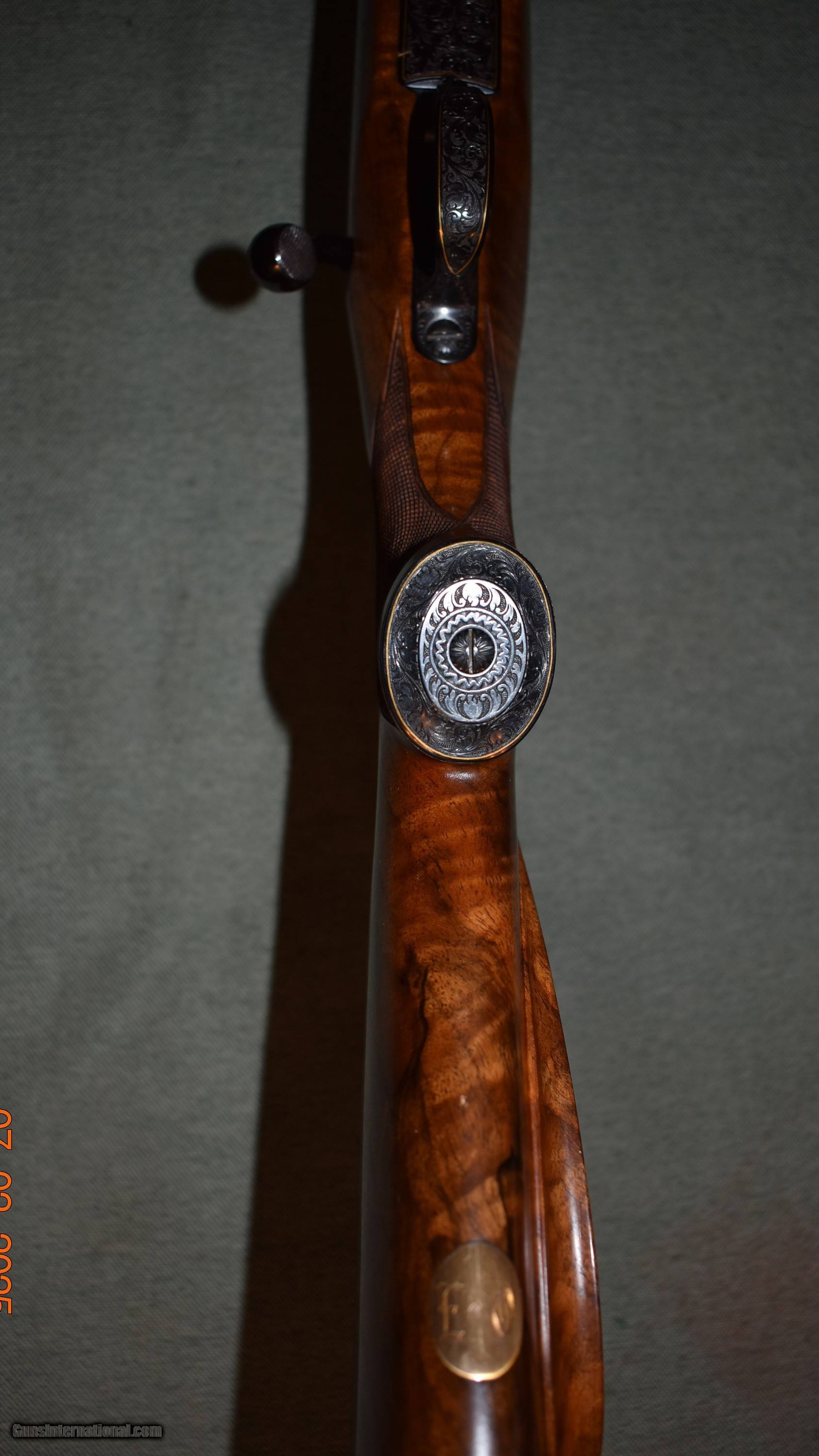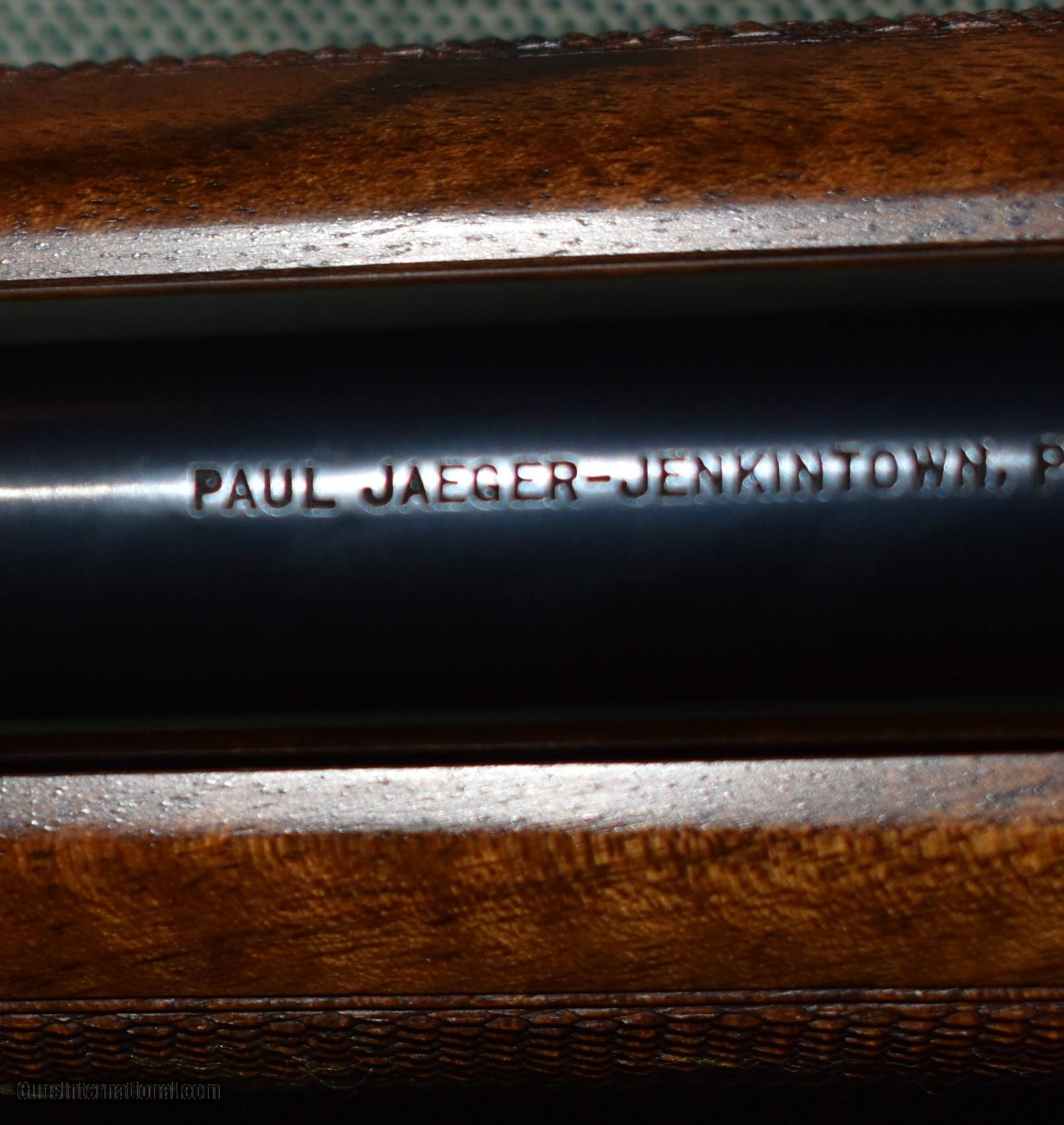Description: Custom built 243 by Paul Jaeger of Jenkintown,Pa. Built in the late 1950s or early 1960s,this rifle is a true piece of gunmaking art. Built on a Sako L579 action, this rifle has a 26" Douglas premium barrel,a Timney trigger, a beautiful highly figured stock with 28 line checkering, and 1" Leupold bases and rings. The floorplate, grip cap,and triggerguard are engraved with gold wire and a gold groundhog surrounded by deep cut Germanic scroll. The engraving was done by the Willing family in Germany. Cost to duplicate this rifle today is well over $20,000. The rifle is in mint like new condition retaining 100% of the metal and wood finishes. C&R eligible. Price includes shipping to your FFL. Curio/Relic: Yes Rifle Caliber: .243 Winchester Manufacturer: Paul Jaeger Model: Custom Serial Number: 5297 Barrel Length: 26 Condition: mint Metal Condition: mint Wood Condition: mint Bore Condition: mint Barrel Type: Douglas Premium Action: Bolt Triggers: Timney Manufacture Date: Late 1950s Price: $4,900.00 Contact Seller |