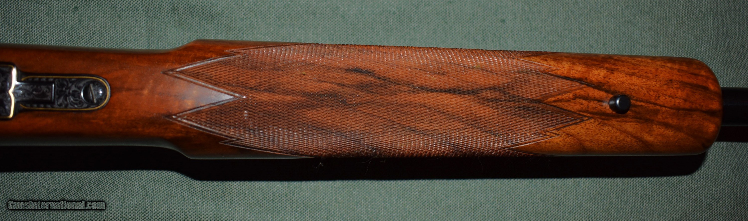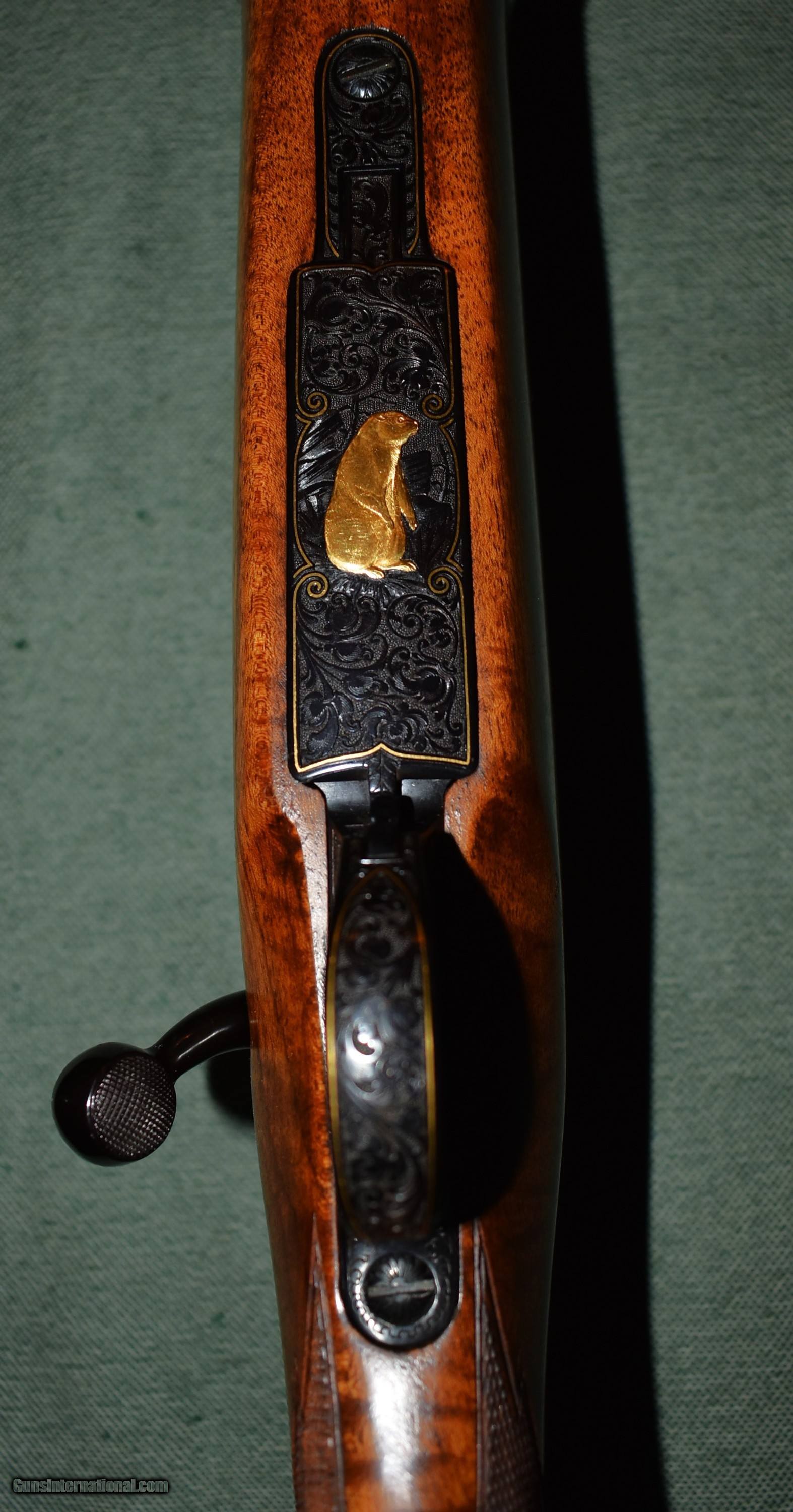 Description: Custom 243 by Paul Jaeger of Jenkintown,Pa. Built in the late 1950s or early 1960s this beautiful rifle is a ture work of gunmaking art. It has a 3X european walnut stock with 28 line checkering. Other features include a 26" Douglas premium barrel, a Sako L579 action, fully engraved floorplate,trigger guard,and grip cap, gold wire and game scene inlays. The engraving was done in Germany by the Willig family. A classic Jaeger custom that would cost over $20K to duplicate today/ C&R eligible. Price includes shipping to your FFL> SOLD Curio/Relic: Yes Rifle Caliber: .243 Winchester Manufacturer: Paul Jaeger Model: Custom Serial Number: 65297 Barrel Length: 26 Condition: mint Metal Condition: mint Wood Condition: mint Bore Condition: mint Barrel Type: Douglas Premium Action: Bolt Engraving: Game Scene Gold |