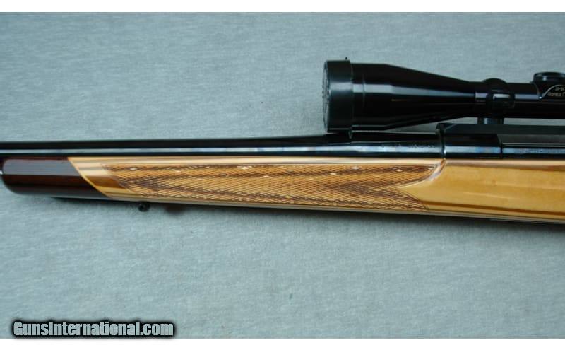 Description: Custom Mauser chambered in .308 Norma Magnum. This is a beautiful Custom Mauser with a nicely checkered laminated stock, very dark high gloss bluing, and a custom trigger with a shoe. It has a Redfield 3-9x scope. It has a 26-inch Shilen medium weight barrel, a butt stock trapdoor cartridge carrier, and a rubber recoil pad. The .308 Norma Magnum (7.62×65mmBR) cartridge is based on a shortened 300 H&H magnum. It has ballistics similar to the .300 Winchester Magnum. No box. .308 Norma Magnum Metal Condition: Excellent Wood Condition: Excellent Bore Condition: Bright Barrels: 26 Inches Triggers: Custom Stock Dimensions: LOP 14 Inches Fore End: Checkered laminated hardwood Butt Pad: Rubber pad Weight: 10 lbs 8 oz Sights: Redfield 3-9x Scope Item Location: La Vista, NE Price: $1,399.99 Contact Seller |