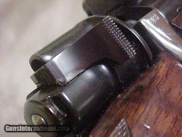 Description: Serial # 25xxx. A beautiful 7 lb lightweight custom mauser in 270 WIN caliber signed by Montana custom stock maker Fred Speiser with his number 783. FN action with jeweled bolt and follower, Timney trigger, hinged floor plate and Mdl 70 style safety with Redfield style 2 piece scope bases. Fitted with a 22 1/2” lightweight barrel chambered in 270 Win. Excellent highly figured walnut with great color contrast & fiddleback, fleur de lis checkering wrapping fully around the FE, ebony tip and grip cap, sling studs, & Pachmayr pad. A great custom rifle with excellent workmanship and accuracy. SOLD Curio/Relic: Yes |