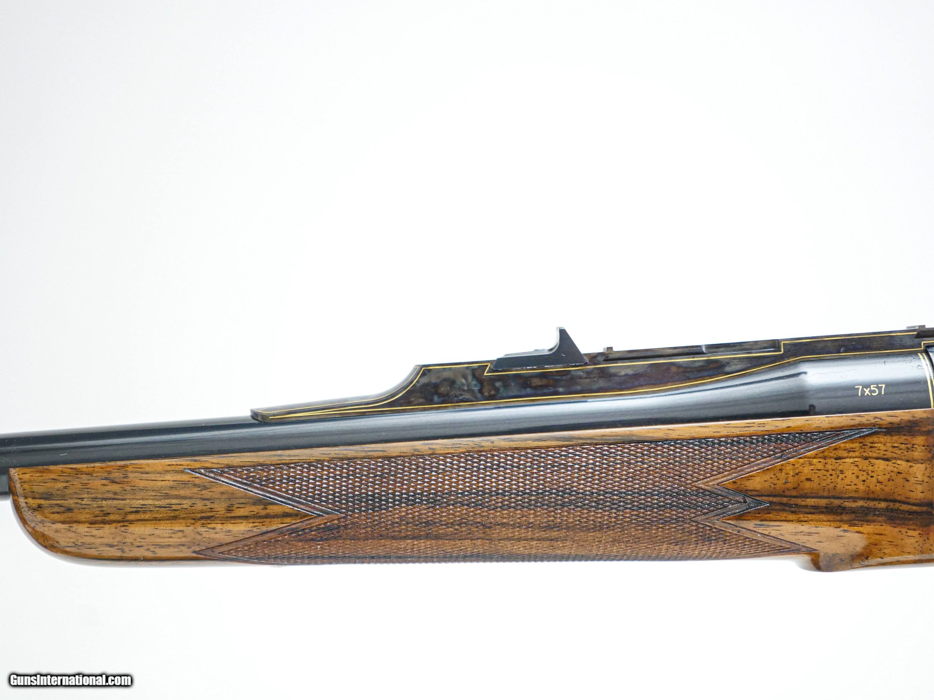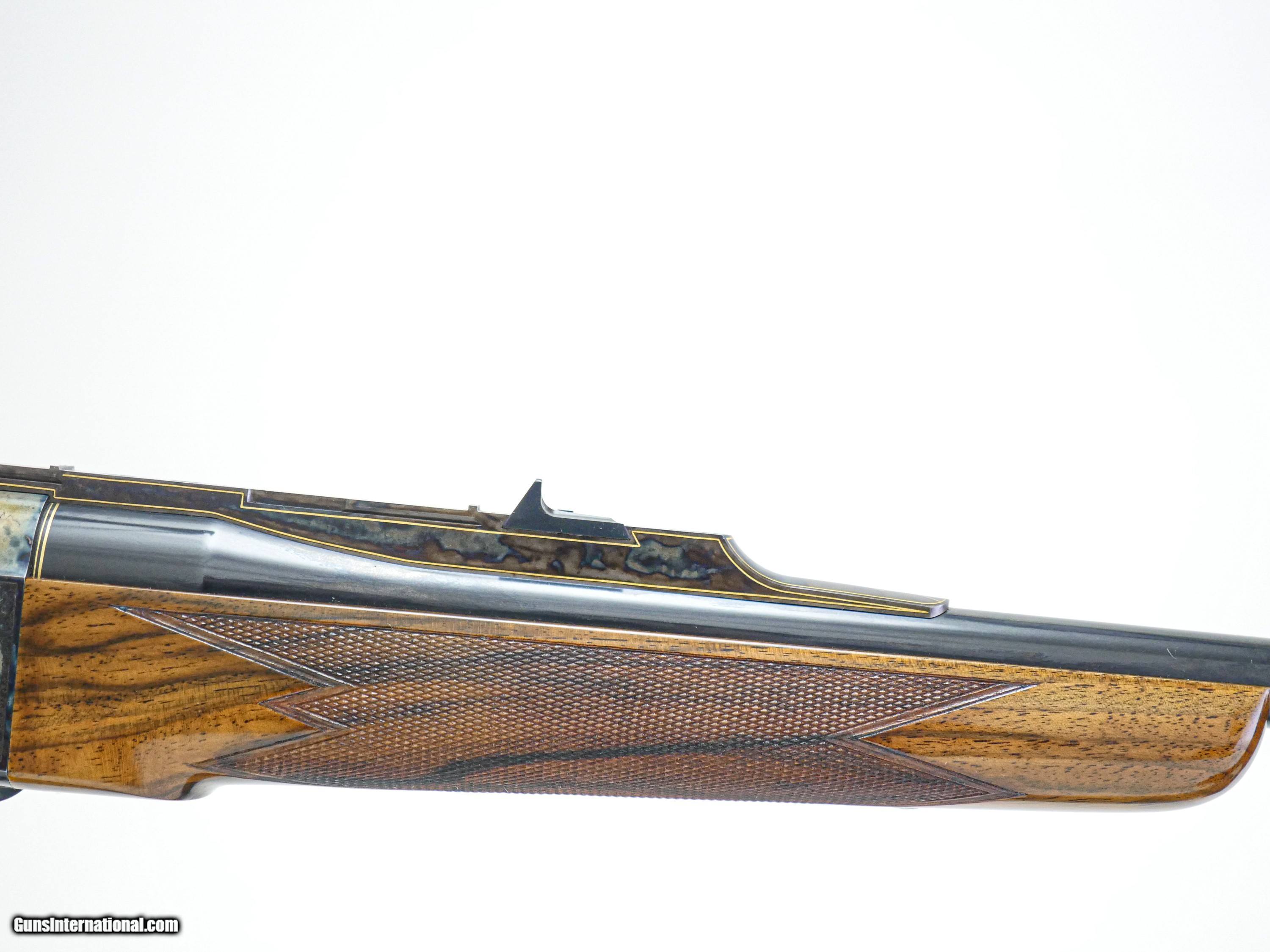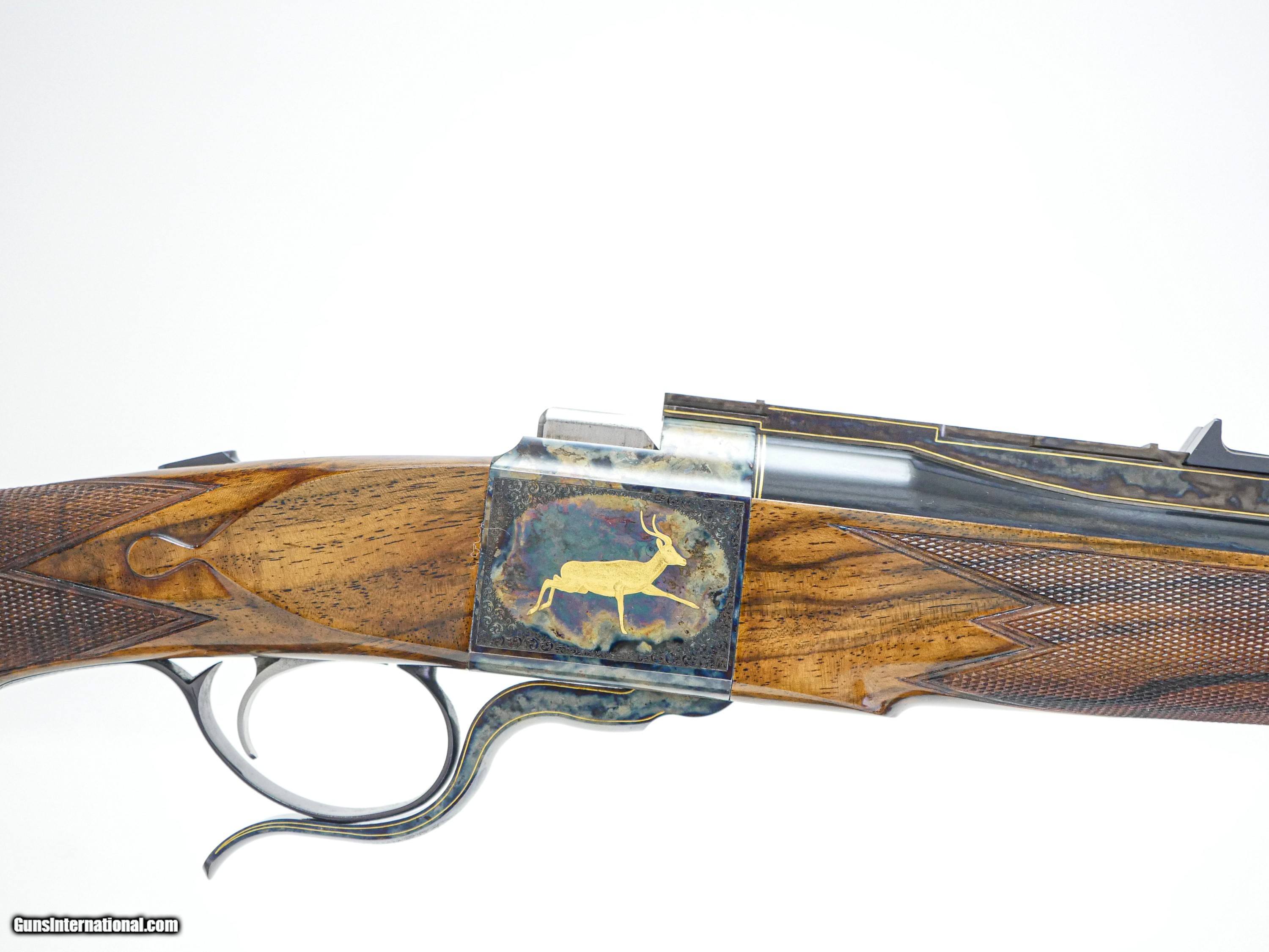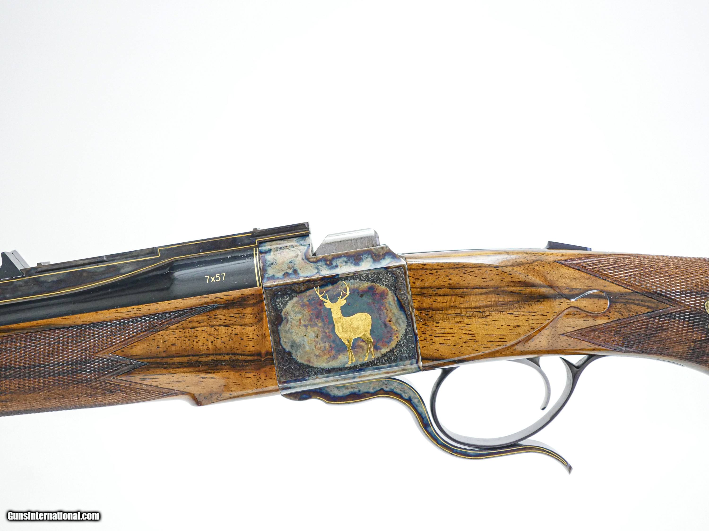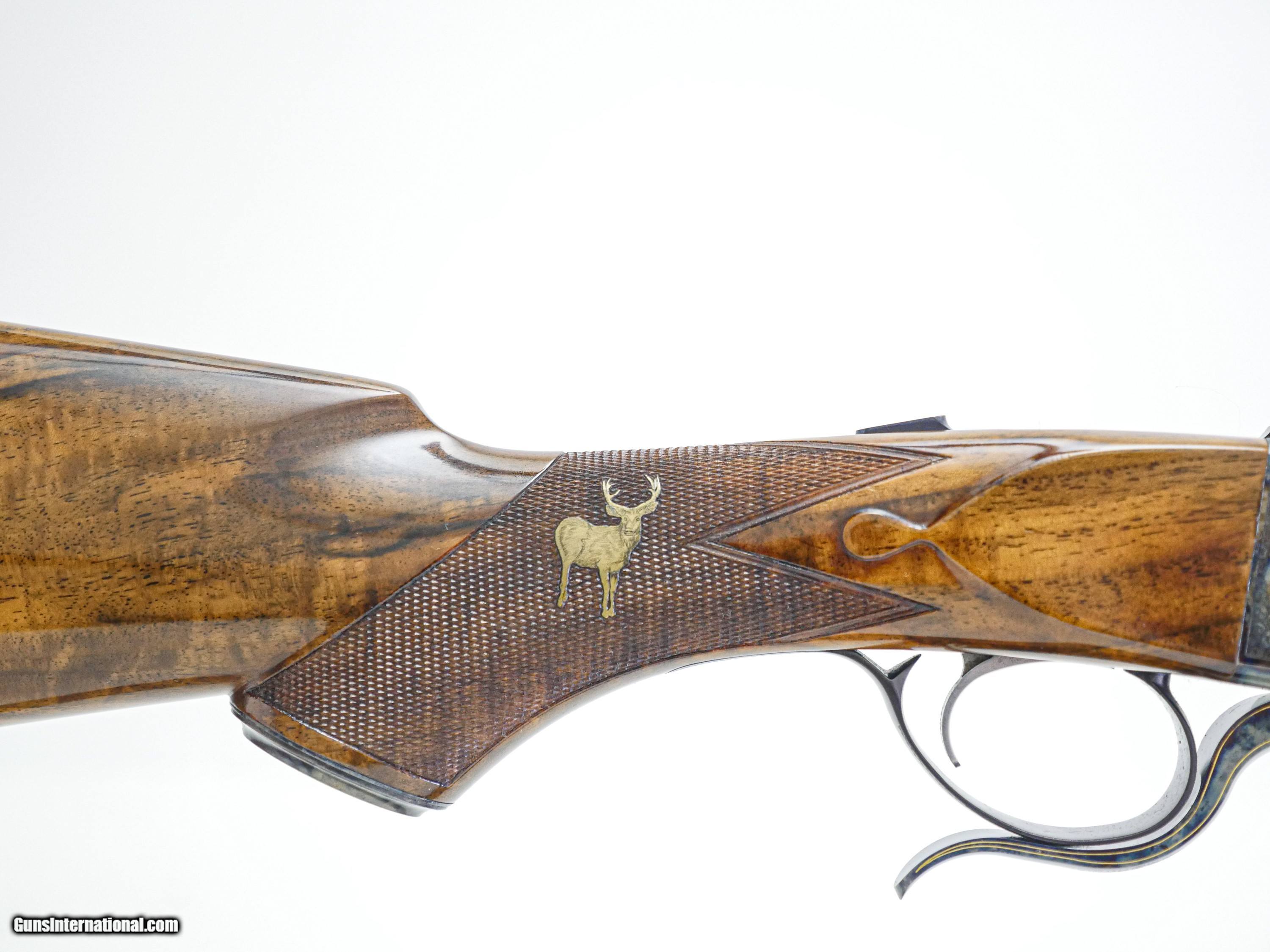 Description: Galazan - Falling Block Rifle, 7x57. 23" Barrels. Our finest custom rifle built on a falling block action, exhibition Turkish walnut stock, leather covered pad, case color hardened receiver, with English scroll and gold line work, two beautiful gold inlays in the receiver, along with two gorgeous gold inlays in the wrist of the stock, all detailed to the highest level, an exceptional single shot Model 10 finished to the highest level, available for immediate delivery. Inv: 24689 6 lbs. 10 oz. 14 ¼” LOP $27,999.00 The largest, most diverse, high-grade shotgun and firearms inventory in history. There is no one even close and a service department to back up everything we sell with our unparalleled warranty to support our customers exclusively. If someone tells you they have a larger inventory, just look for yourself. Price: $27,999.00 Contact Seller |