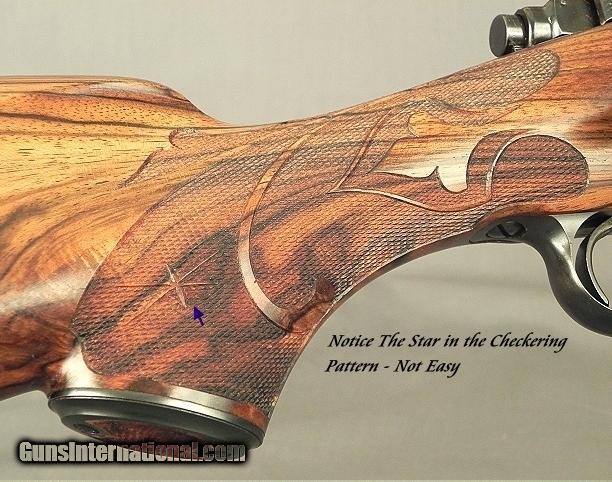 GARY GOUDY 25-06 IMP (40 Degree Shoulder)- OUTSTANDING FLEUR-DE-LIS CHECKERING- PRE-64 MOD 70 ACTION #701- BY GOUDY in 2001- EXHIBITION WOOD