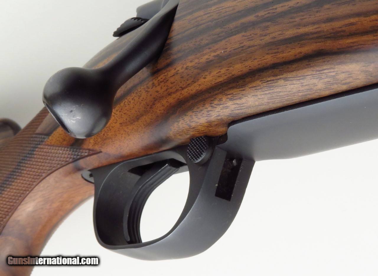 Description: Dale Goens custom .458 Winchester Magnum. Based on a Mark X Mauser 98 action built in Yugoslavia and stocked in AAA English walnut with dynamic grain, features include a banded front sight with button-release hood and flip up night bead, banded sling swivel stud, bedded action (to the recoil lug), custom bottom metal with push-button floorplate release and a leather-covered recoil pad. Accents include a rosewood forend tip and grip cap, exceptional checkering and a shadow line cheekpiece. The barrel is 23.5 inches long and topped by a quarter rib with one fixed and three folding regulated leafs. The length-of-pull is 13.75 inches and weight is 9.0 pounds. Both the rust blue metal finish and the stock remain in at least 99% condition, with only the slightest hint of handling wear. The forearm has a small filled flaw (not a crack) on right side just aft of the forend tip. Inside, the bore is pristine. From an estate, the history is unclear. That said and even though unsigned, the estate represented the maker as Dale Goens – quite likely accurate as it included several other rifles from the same maker. The price is firm and layaway is available. $4,000 plus shipping. SOLD Rifle Caliber: .458 Winchester Magnum |