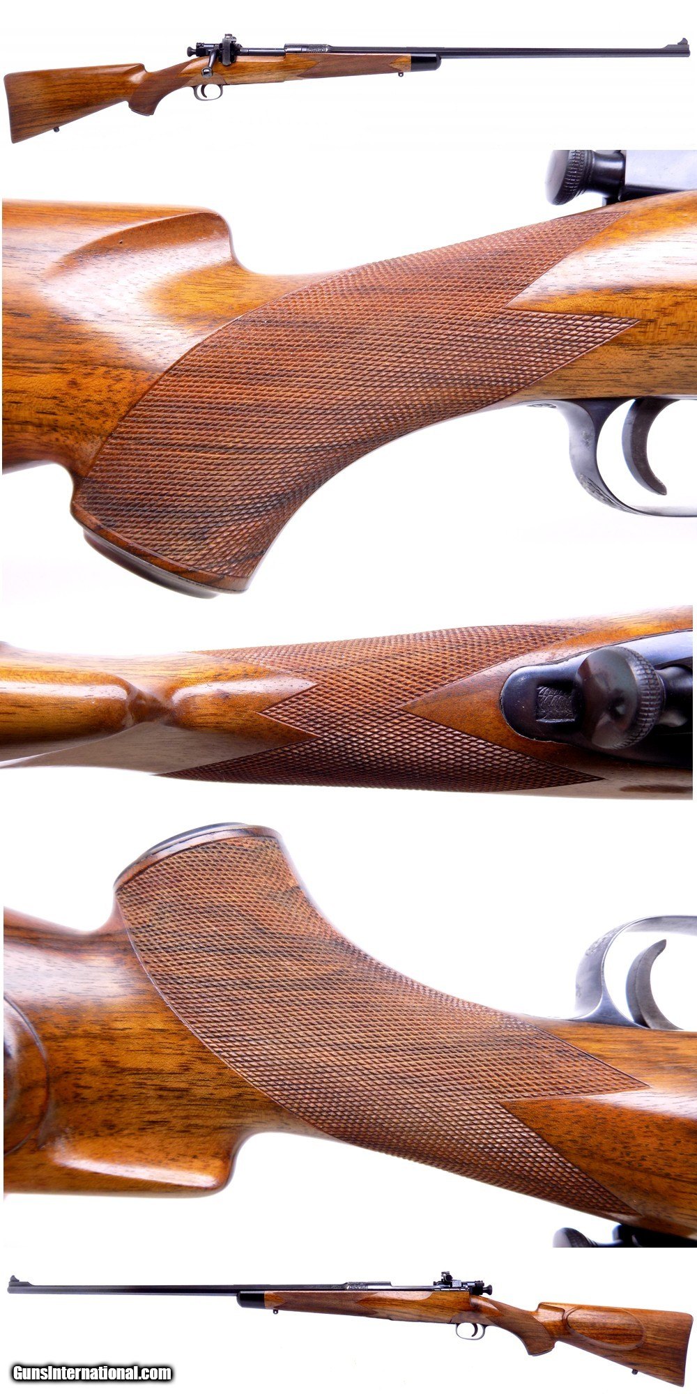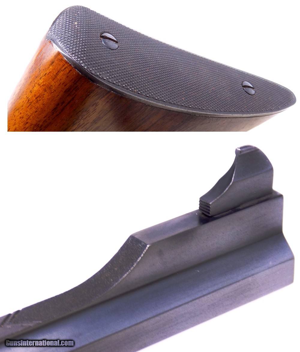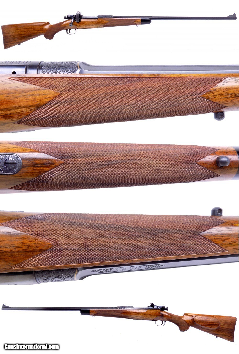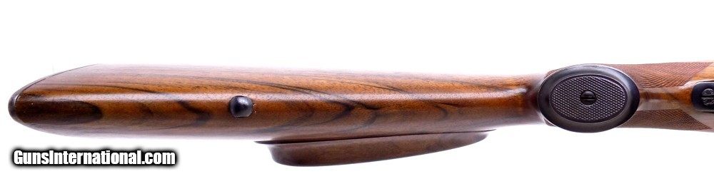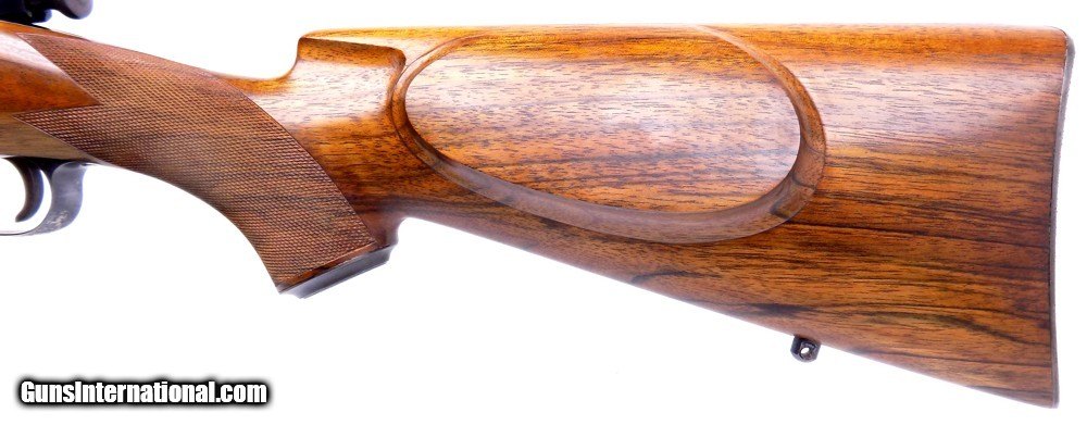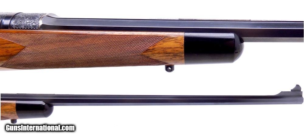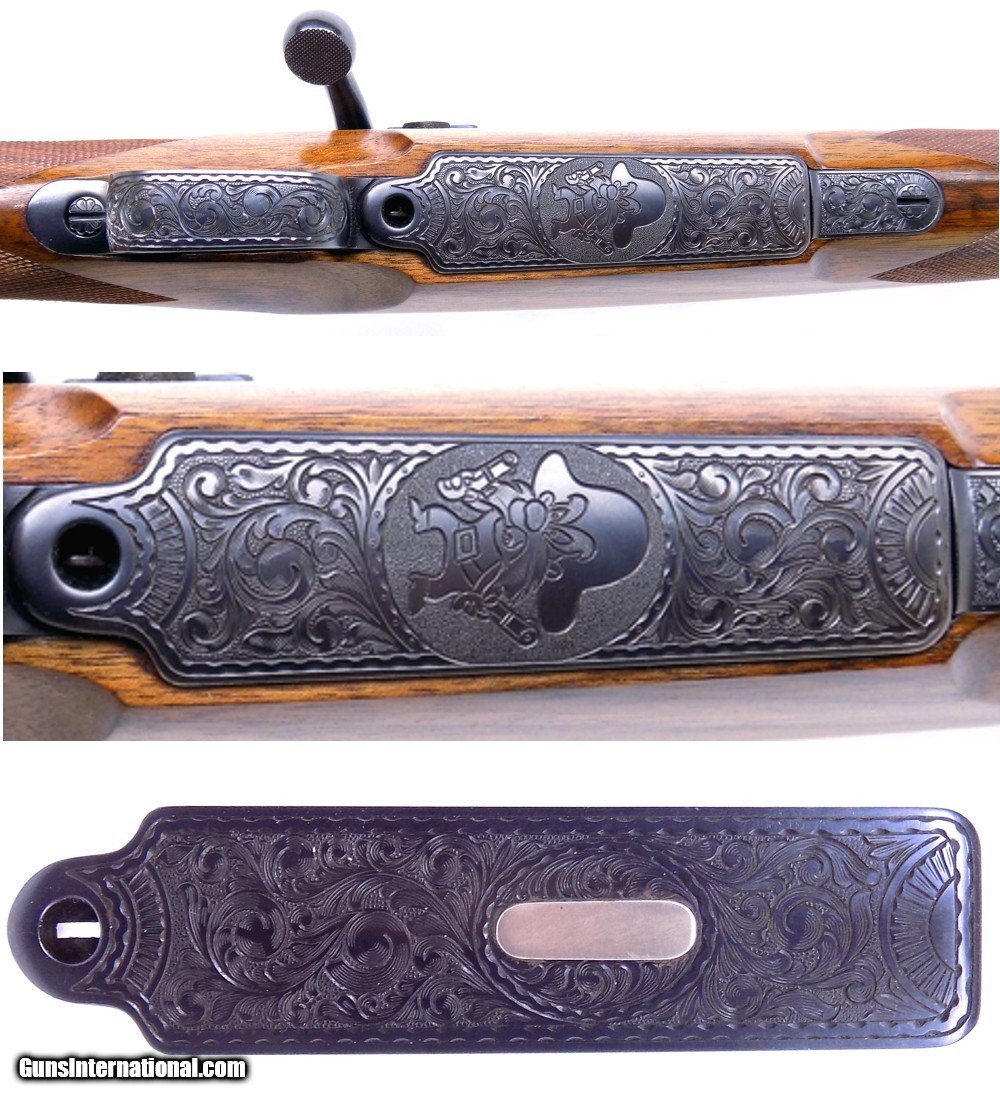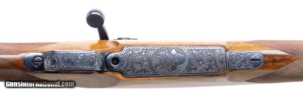 Description: Another “ESTATE” firearm listing brought to you from Dust 2 Dollars who prides themselves on showing the complete gun in high quality pictures along with a detailed description for your consideration. We offer you a “GORGEOUS” Griffith & Howe Style 1903 Springfield Custom Rifle chambered in .270 Winchester built in 1991 for Ernie Atkinson. This was built for Ernie Atkinson of Astoria Oregon in 1999. The build started with a U.S. Rock Island Arsenal model 1903 high number "double-heat-treated" action. Bob Gibson did the barrel work and it is a 26” full tapered octagon with a rib. This was a solid round blank that was milled to this shape with the full rib and front sight from the blank. I would not even guess what the cost of this would be today. On the top of the rip is some engraved scroll work with a white metal insert that once had a name on it. It is a raised area and could have a name engraved back onto it of so desired. Ahead of the chamber area on the left side is more engraved scroll work with the caliber “,270 WIN.” engraved in the center. The chamber area is completely engraved with a Gold line outline as shown. The bolt was reshaped with a checkered flat on the knob. There are two fully engraved floor plates for the rifle as pictured. One has a matching insert of white metal that matches the rifle. The other is a work of art with “Yosemite Sam” in the center as shown. All of the engraving was completed by Dale Woody and is excellent as you can see. The bluing was completed by George Komadina of Washington State. The bluing on the rifle is in excellent (PLUS) condition as you can see. The original two-stage trigger is still on the rifle but has been cleaned up and breaks crisp and clean. The stock work was completed by Scott King also of Washington State. The stock is also in excellent condition as you can see. The stock shows just a few very minor marks from storage from the past 22 years. The barreled action was bedded into the stock as shown along with “E.A. 1999” written into the barrel channel. Harry Christensen purchased the gun from Ernie in 2001. Then it was sold to the person whose estate we are selling it for currently. SOLD This will be shipped fully insured UPS Ground to your FFL for $75. It will be shipped in a foam lined double walled cardboard box that we have manufactured for us so that your gun arrives safe. Payment to be made by USPS Money Order or Cashier’s Check. All firearms come with a 3-day inspection from D2D’s. SOLD Rifle Caliber: .270 Winchester |