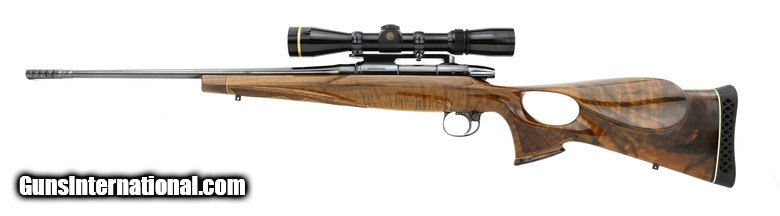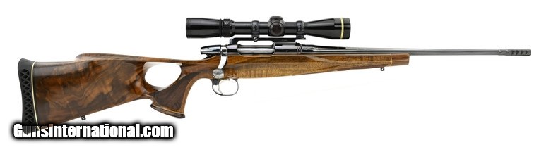 Description: Harry Lawson 650 .22-250 REM caliber carbine. Neat little Harry Lawson custom carbine. Has a 16” barrel with muzzle brake, thumbhole stock of fancy figured Walnut with inlays and a Leupold 2.5X 8 scope. LOP is 13 ½”. A sleek & petite premium grade carbine, in excellent condition.