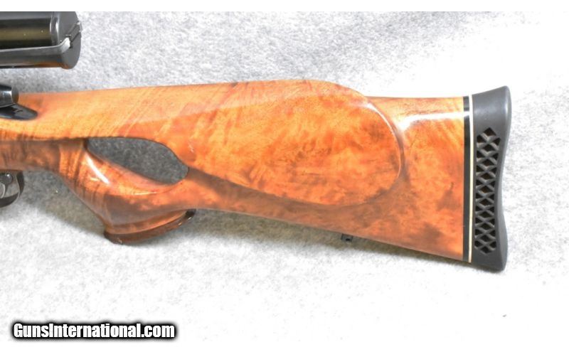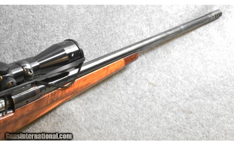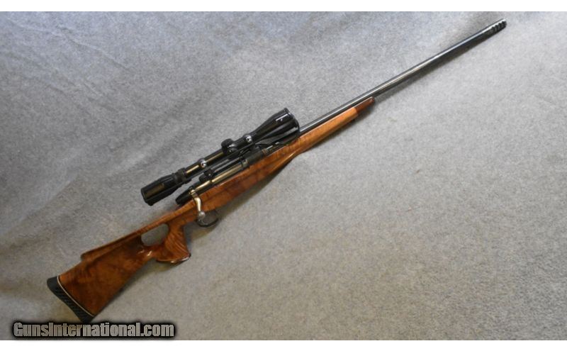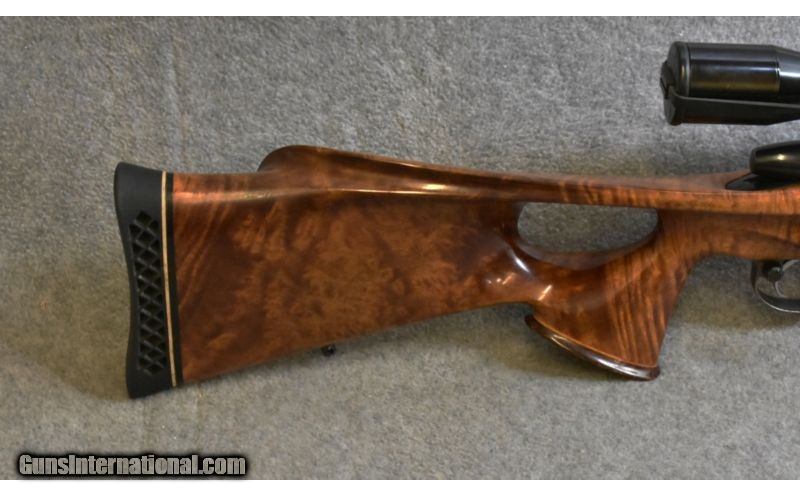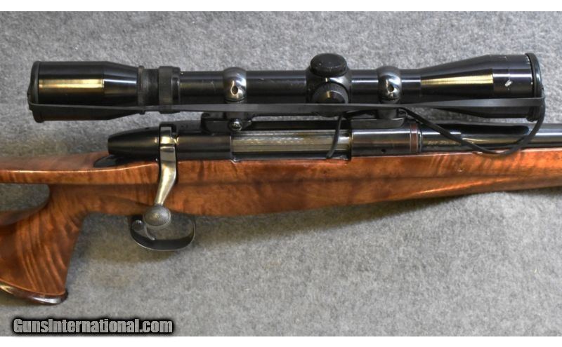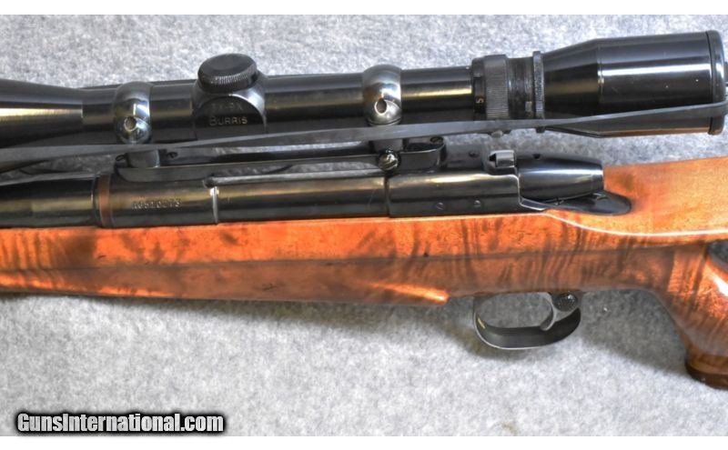 Description: Harry Lawson Co 650 series custom .264 Winchester rifle. Started life as a Remington 700. The 650 series featured Lawson's muzzle break, bolt shroud, steel trigger guard and custom safety button. Jeweled and barrel action has been micro blued. The stock is their Cochise Thumbhole using Grade 5 Extra Fancy Claro Walnut. Burris scope mount and Burris 3x-9x scope. SOLD Caliber Info: .264 Win. Metal Condition: Very good, a few scratches. Wood Condition: Very good, a few scratches and dings. Bore Condition: Clean with bright lands. Barrels: 24 inch with muzzle brake. Triggers: Single curved trigger. Stock: Cochise thumbhole, grade 5 extra fancy claro walnut. Stock Dimensions: 13 1/2 inch LOP. Fore End: Straight, smooth, Claro walnut. Butt Pad: Black rubber pad. Weight: 9 lbs 3 oz. Sights: Burris 3x-9x scope. Item Location: Kansas City, KS |