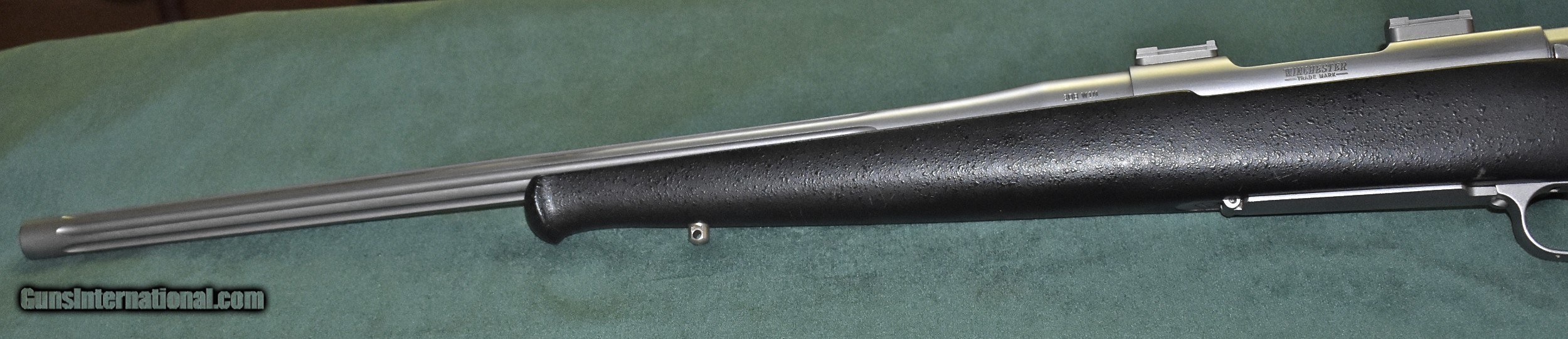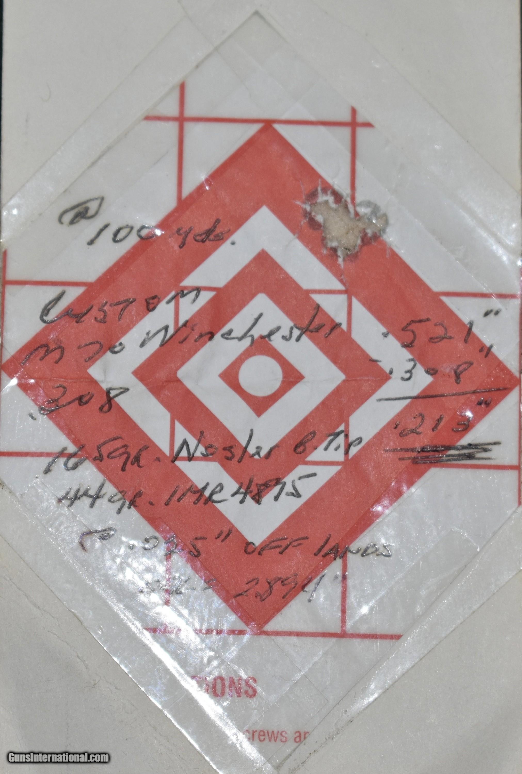 Description: A custom Winchester post 64 model 70 in 308 Win.This very high quality rifle is built on a stainless post 64 model 70 action with the contol feed claw extractor.Features include a 21" Hart #5 stainless fluted barrel,pillar bedded McMillian black synthetic stock,trigger and action work and assembly by R.LMatthews,and Talley stainless bases.This is a very accurate little rifle.See the 100 yard 3 shot group shot with this rifle in the photos.Mint like new conditon showing no visible wear.This is a great all around,all weather big game rifle.Perfect for shooting out of tree stands or a shooting box. SOLD Rifle Caliber: .308 Winchester Manufacturer: Custom Winchester Action Model: custom Serial Number: 6167708 Barrel Length: 21 Condition: mint Metal Condition: mint Wood Condition: mint Bore Condition: mint Barrel Type: Hart #5 Action: bolt |