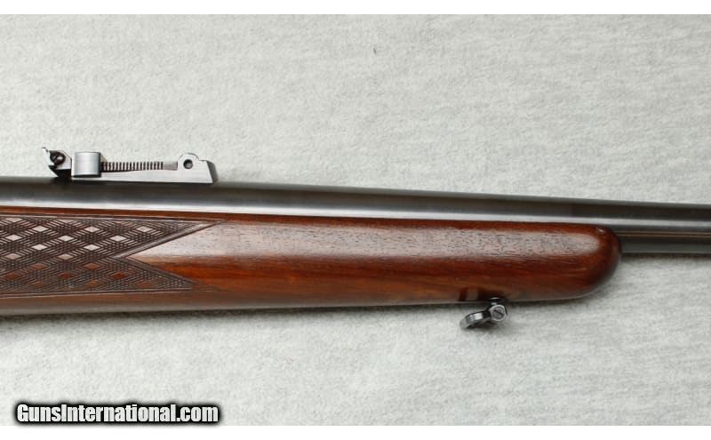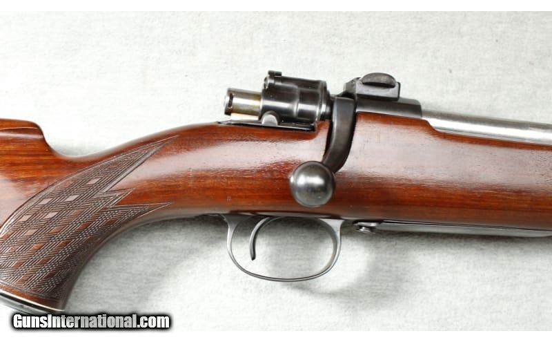 Description: J.G. Landmann Custom Mauser chambered in .458 Winchester. This rifle features a heavy 21-inch barrel and a beautiful oiled walnut stock. This action and barrel are blued. It has an adjustable sight adjustable out to 300 meters. It also has scope bases dovetailed into the receiver. It also has a rubber pad and a muzzle brake to handle the recoil of the powerful cartridge. The rifle is in very good condition with the stock having only a few very minor handling dings/handling marks. The .458 Winchester Magnum was introduced commercially in 1956 by Winchester and remains one of the most popular large game cartridges. .458 Winchester Magnum SOLD Metal Condition: Excellent Wood Condition: Excellent with minor handling marks Bore Condition: Bright bore with slight frost and strong rifling Barrels: 21 Barrel Triggers: Factory Stock Dimensions: LOP 14 inches Fore End: Checkered walnut Butt Pad: Rubber pad Sights: Sight adjustable out to 300 meters. It also has scope bases dovetailed into the receiver. Item Location: La Vista, NE |