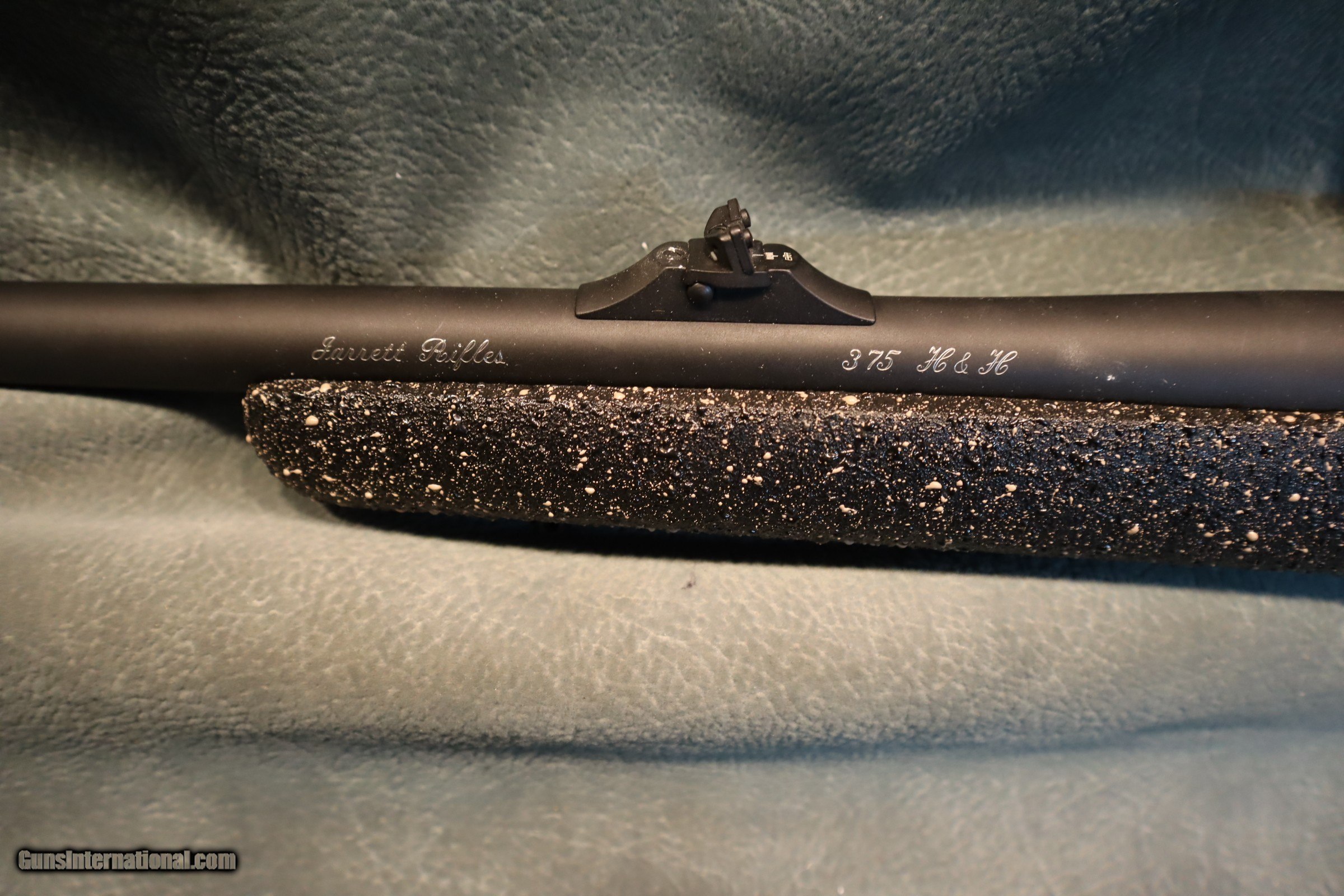 Description: Jarrett Custom Rifles 375H+H,Dakota Arms action,24" threaded barrel with island rear sight and hooded front sight,muzzlebreak and tool,great condition. GUN COLLECTIONS WANTED FOR CASH! We buy, sell, consign and trade new and used firearms.We will pay finders fees and travel for large collections. This is our 47th year in business. We offer 90 day layaways with 20% down. No return on layaways. Firearms will need to be transferred through a FFL dealer. Prices reflect a cash discount. There will be 3% added to credit card sales. We trade for gold and silver. THANK YOU! SOLD |