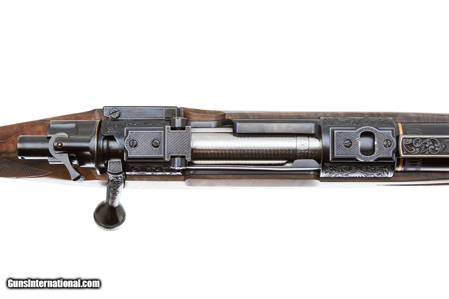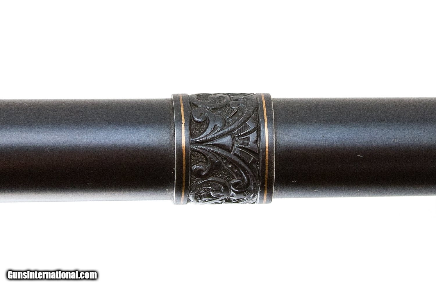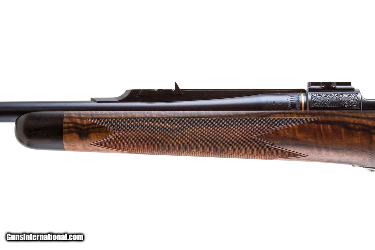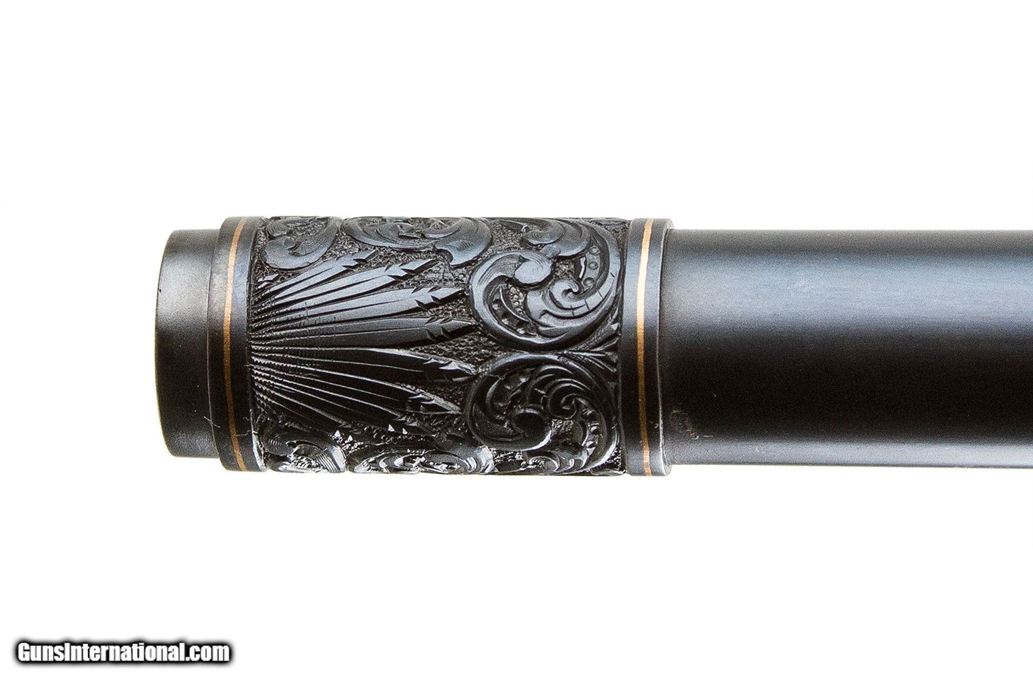 Description: EVERY DETAIL WAS CONSIDERED EXECUTED AND FINISHED TO THE HIGHEST STANDARD 24" BARREL WITH ENGRAVED 1/4 RIB 1 STANDING 2 FOLDING WITH ENGRAVED FRONT SIGHT ENGRAVED BOLT KNOW JEWELLED BOLT ENGRAVED BARREL BAND ENGRAVED INLETTED REAR SWIVEL ENGRAVED STEEL GRIP CAP MINT CONDITION 8LBS 14 1/8 LOP SOLD |