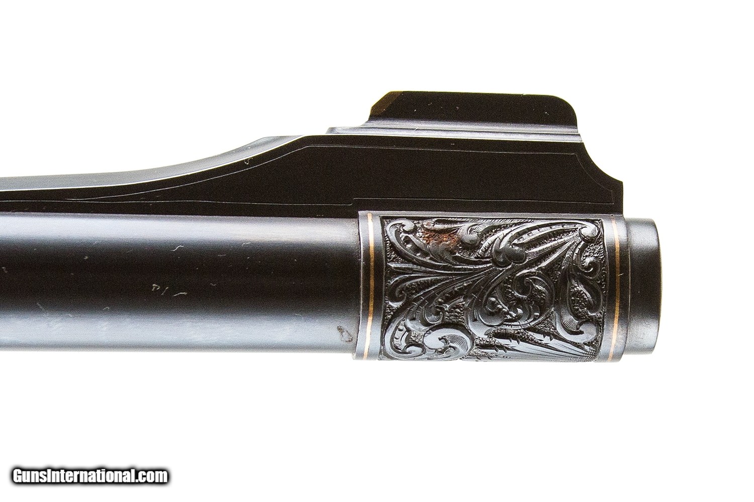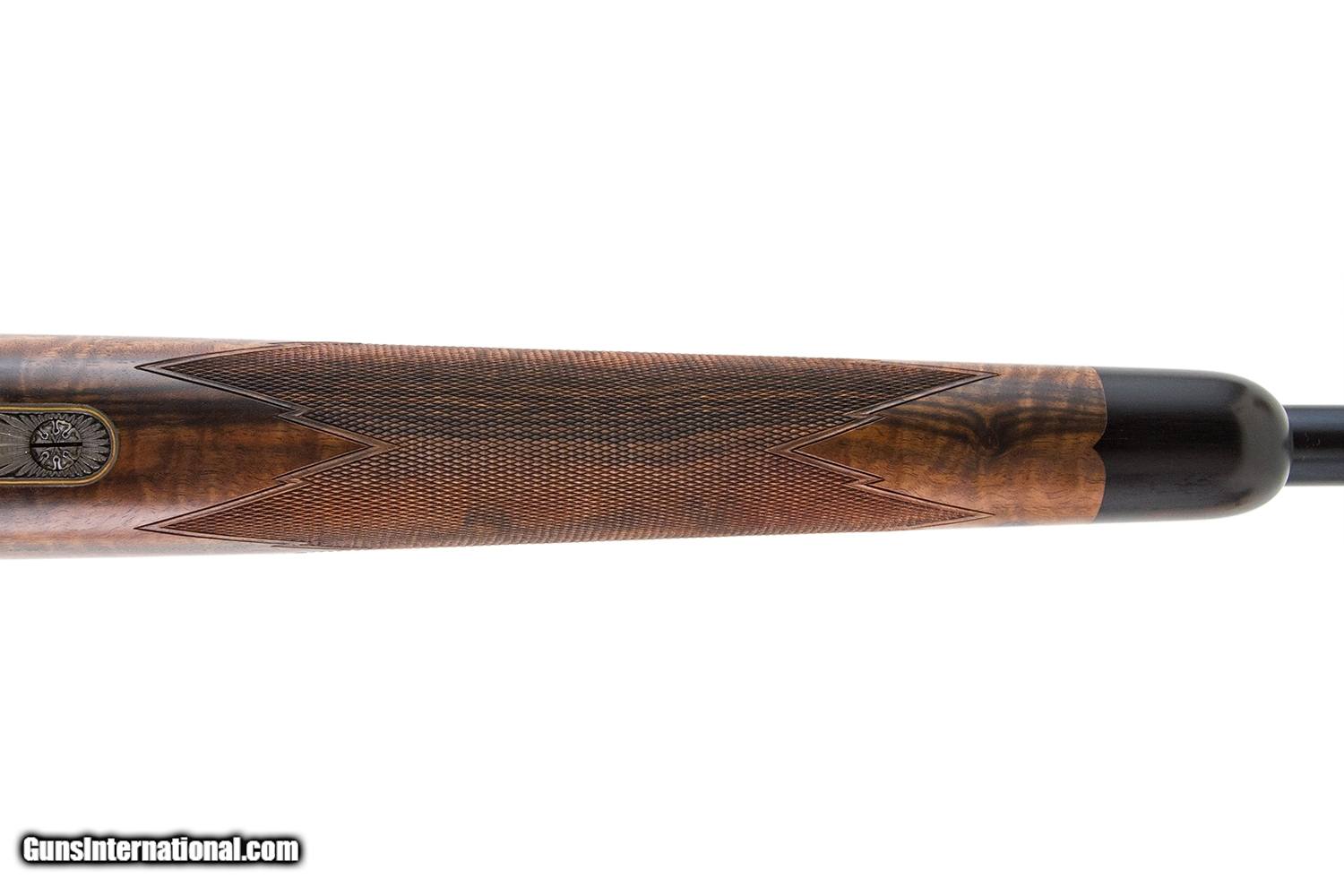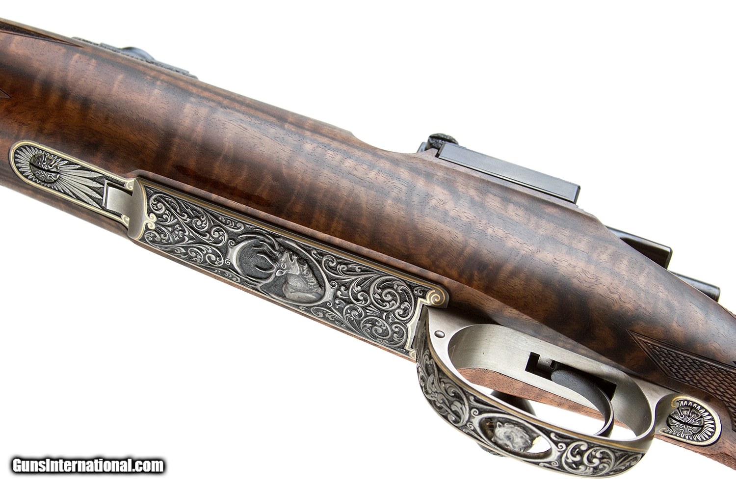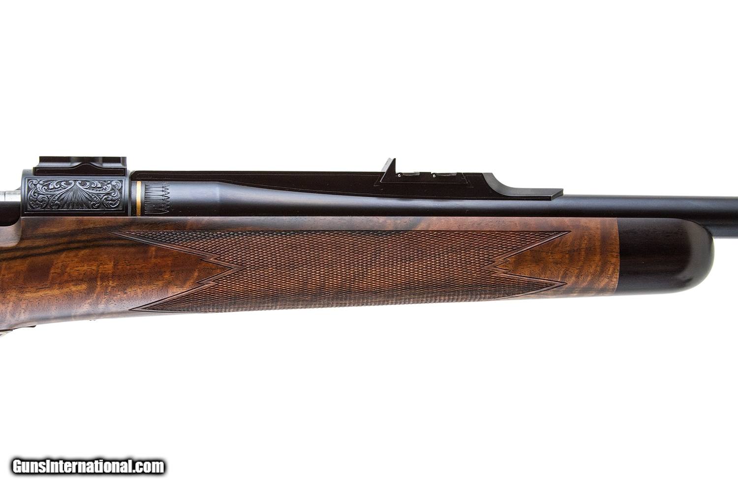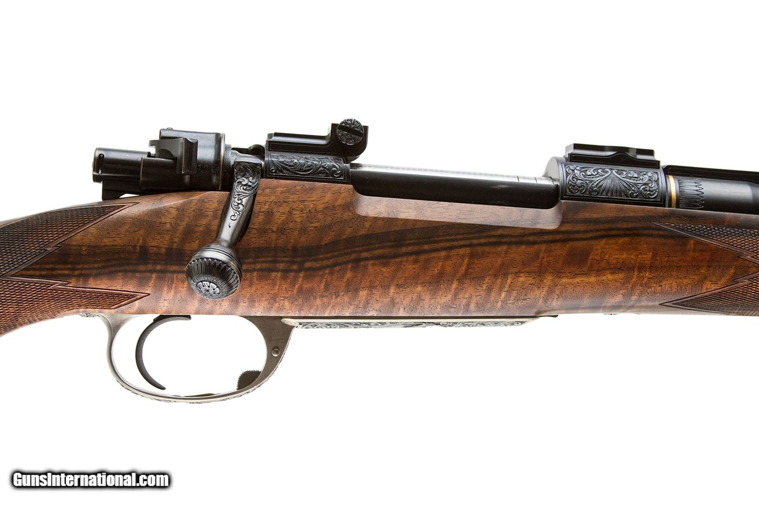 Description: EVERY DETAIL WAS CONSIDERED EXECUTED AND FINISHED TO THE HIGHEST STANDARD 24" BARREL WITH ENGRAVED 1/4 RIB 1 STANDING 2 FOLDING WITH ENGRAVED FRONT SIGHT ENGRAVED BOLT KNOW JEWELLED BOLT ENGRAVED BARREL BAND ENGRAVED INLETTED REAR SWIVEL ENGRAVED STEEL GRIP CAP MINT CONDITION 8LBS 14 1/8 LOP SOLD |