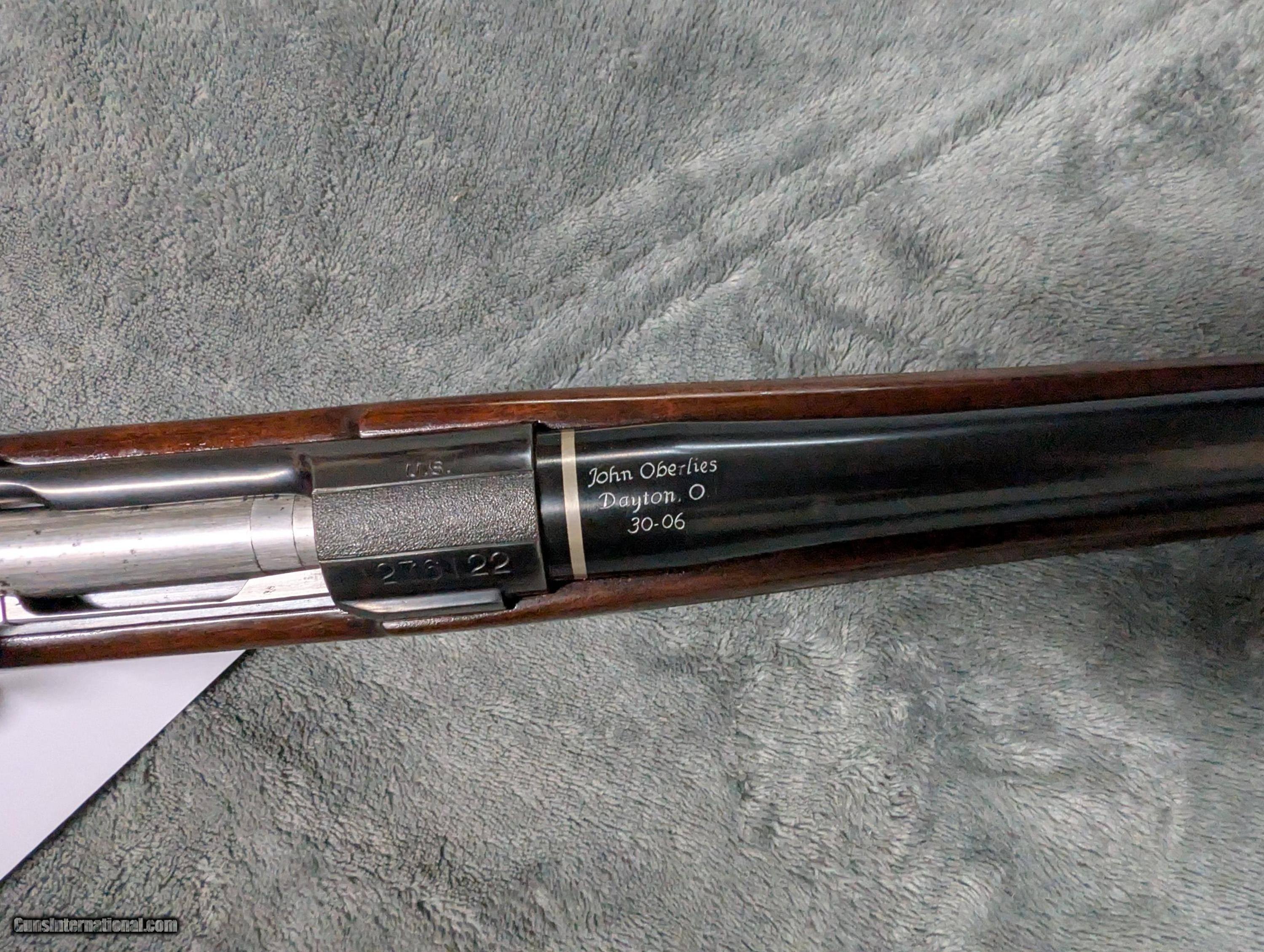 JOHN OBERLIES OF DAYTON OH, CUSTOM NRA SPORTER IN 30-06, WITH 24" STAR GAUGED BARREL DATED 3-27 IN EXCELLENT CONDITION