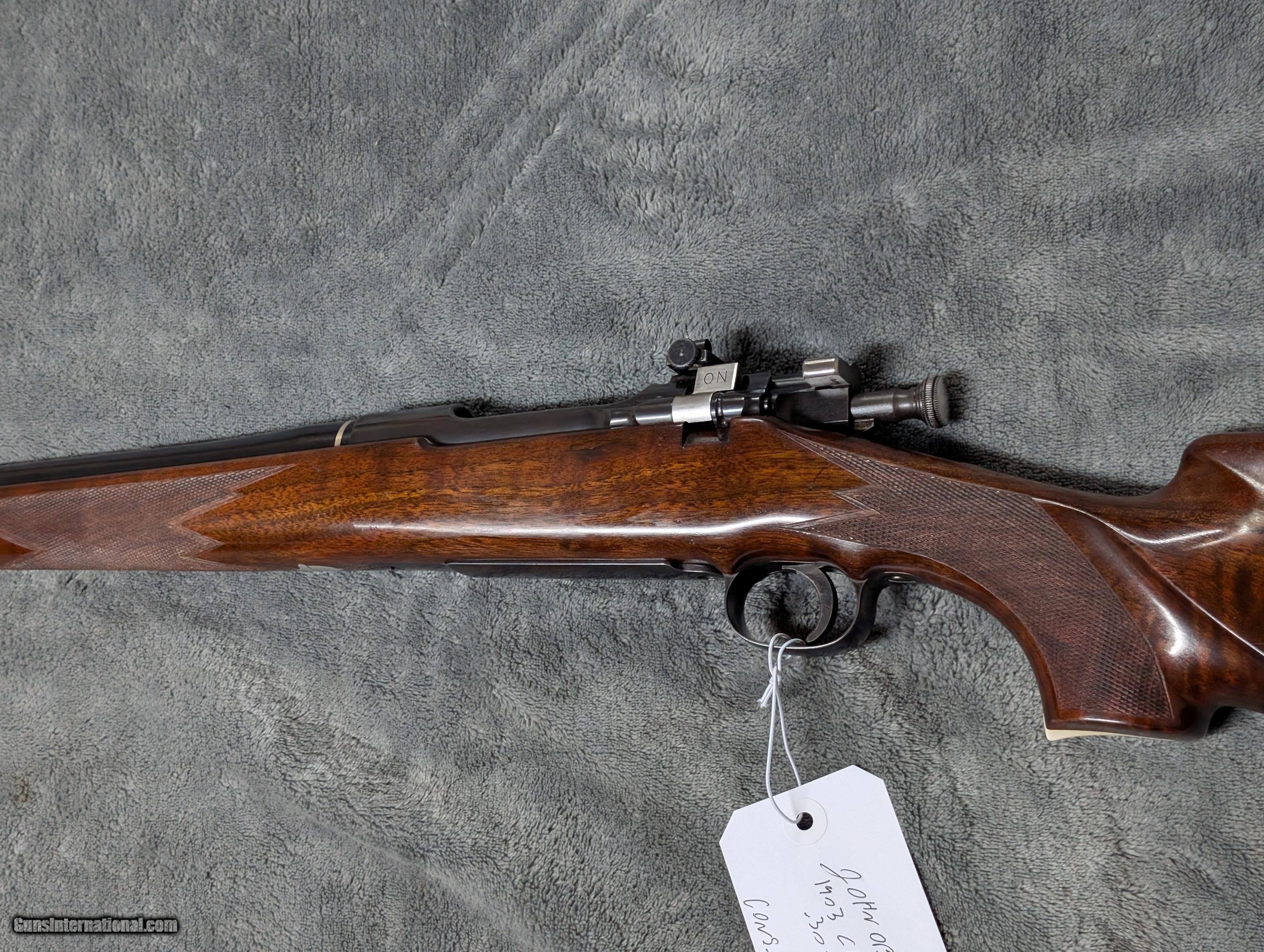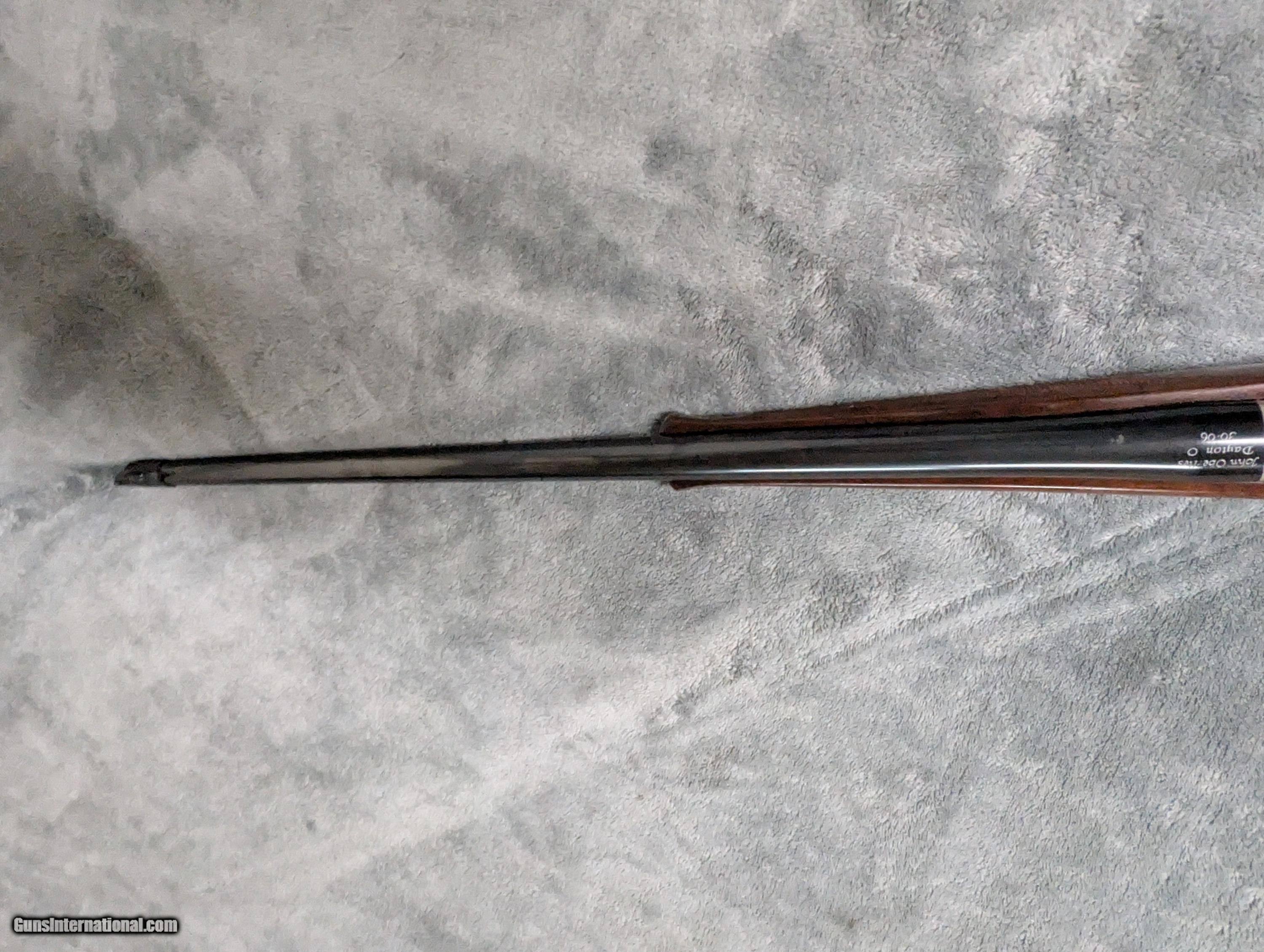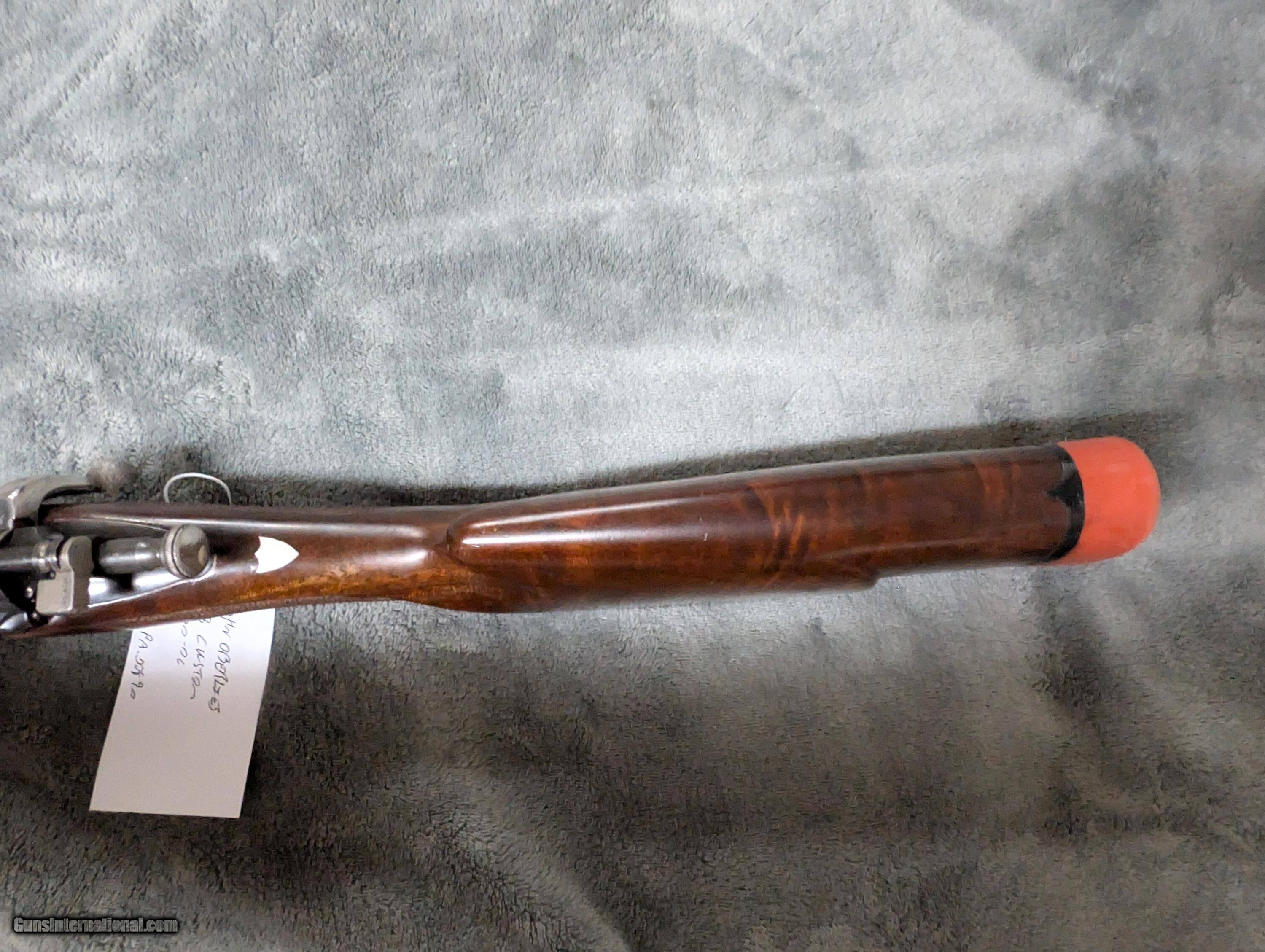 Description: CONSIGNED This John Oberlies of Dayton OH, Custom NRA Sporter in .30-06 remains in Excellent Condition.John Oberlies was a respected stockmaker/ gunsmith out of Dayton Ohio who was active in the 30-40's, he was known for his inlays of silver acorns,oak leaves as well as his use of ivory at the end of grip caps and forends, this example has both. It has star gauged barrel dated 3-27 and a Excellent bore. It has a Lyman 48 rear sight and NM front. There are a few small handing marks present but no major defects present. Please see pictures. Rifle Caliber: .30-06 Springfield Manufacturer: JOHN OBERLIES / SPRINGFIELD Model: CUSTOM 1903 NRA SPORTER Serial Number: 1276122 Barrel Length: 24 Condition: EXCELLENT Metal Condition: EXCELLENT Wood Condition: EXCELLENT Bore Condition: EXCELLENT Barrel Type: STAR GAUGED dated 3-27 Action: 1903 SPRINGFIELD Butt Pad: SILVERS RECOIL PAD LOP: 13.5 Sights: LYMAN 48 REAR, Item Location: 49253 Price: $3,195.00 Contact Seller |