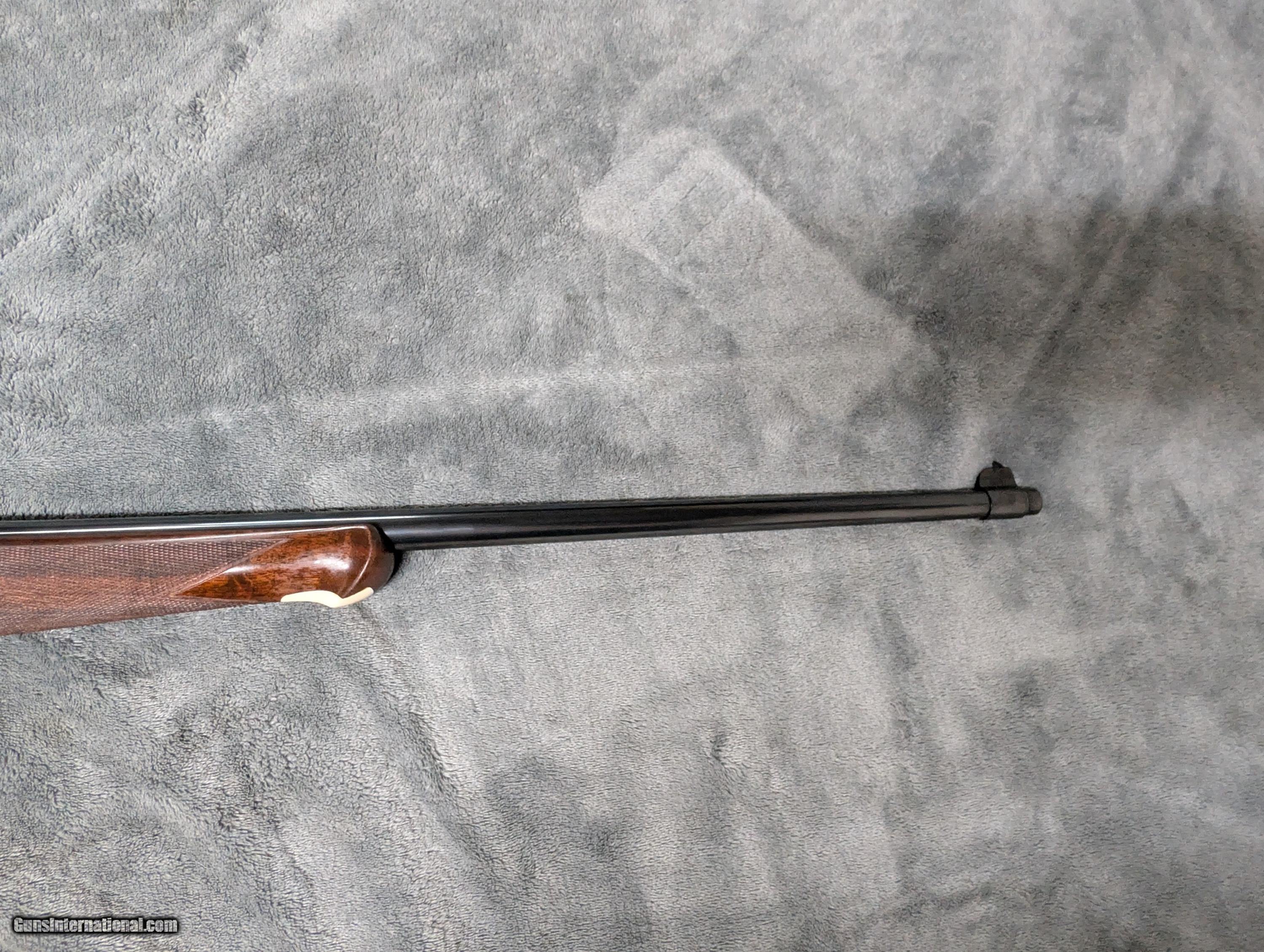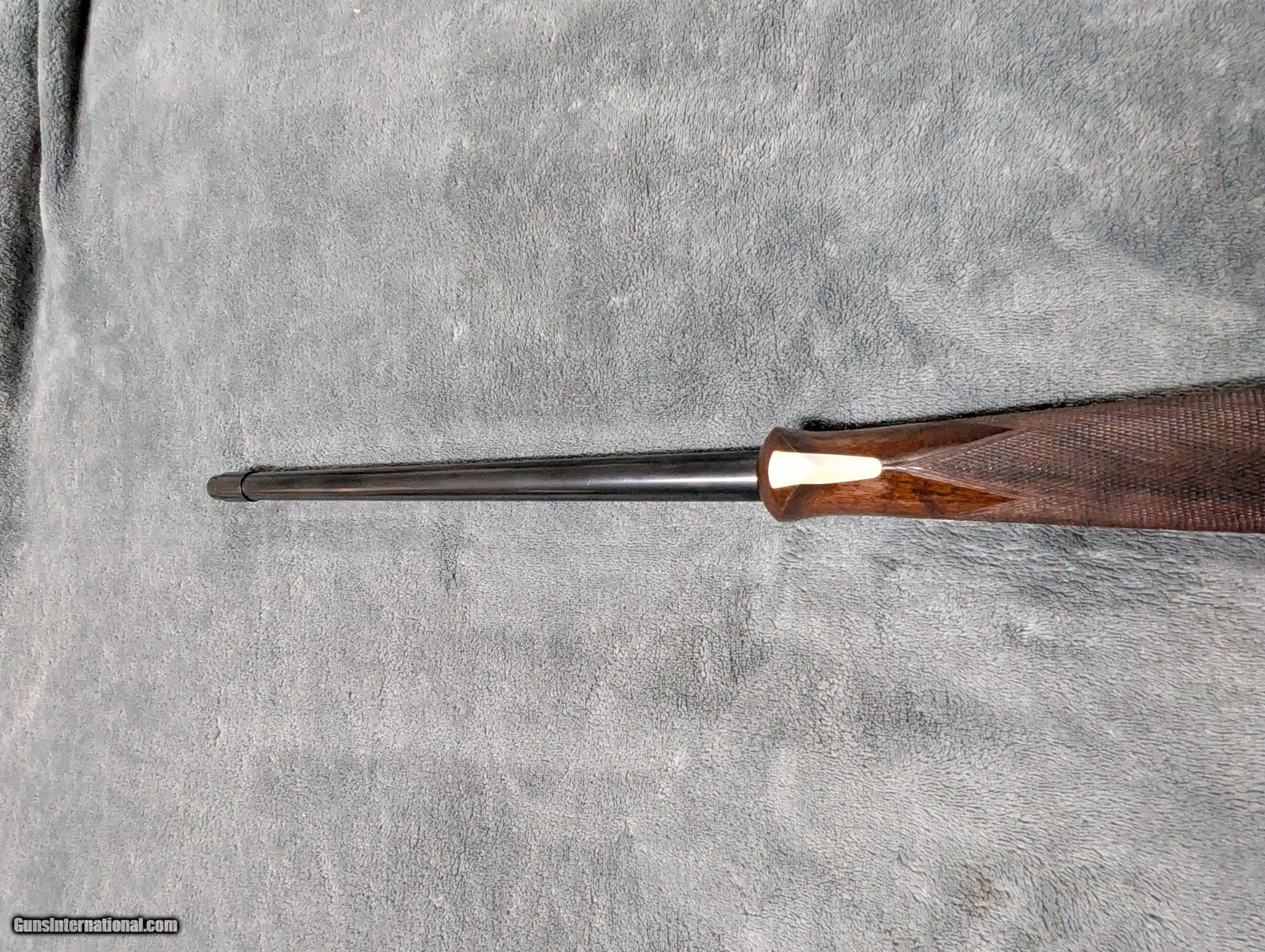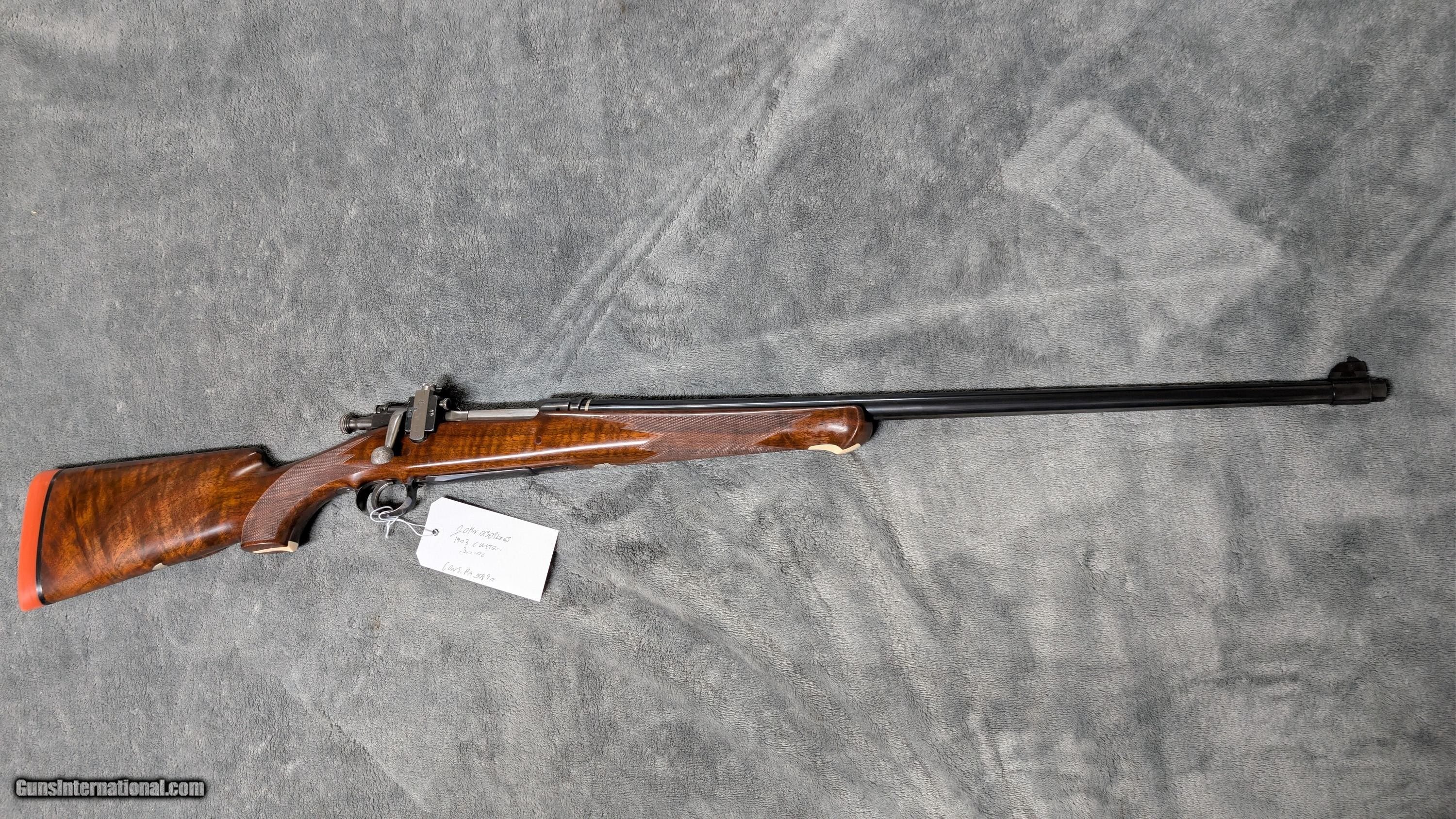 Description: CONSIGNED This John Oberlies of Dayton OH, Custom NRA Sporter in .30-06 remains in Excellent Condition.John Oberlies was a respected stockmaker/ gunsmith out of Dayton Ohio who was active in the 30-40's, he was known for his inlays of silver acorns,oak leaves as well as his use of ivory at the end of grip caps and forends, this example has both. It has star gauged barrel dated 3-27 and a Excellent bore. It has a Lyman 48 rear sight and NM front. There are a few small handing marks present but no major defects present. Please see pictures. Rifle Caliber: .30-06 Springfield Manufacturer: JOHN OBERLIES / SPRINGFIELD Model: CUSTOM 1903 NRA SPORTER Serial Number: 1276122 Barrel Length: 24 Condition: EXCELLENT Metal Condition: EXCELLENT Wood Condition: EXCELLENT Bore Condition: EXCELLENT Barrel Type: STAR GAUGED dated 3-27 Action: 1903 SPRINGFIELD Butt Pad: SILVERS RECOIL PAD LOP: 13.5 Sights: LYMAN 48 REAR, Item Location: 49253 Price: $3,195.00 Contact Seller |