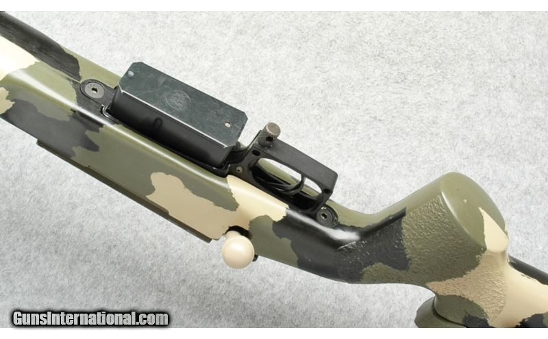 Description: Stock shows a few scratches in the camo otherwise bluing and cerakote looks great. Bi-pod included SOLD Caliber Info: 243 Ackley Improved Metal Condition: Excellent Bore Condition: Bright, Sharp Barrels: 28 Inch Fluted Heavy Contour Barrel with Muzzle Brake Stock: McMillan Tactical Stock, Adjustable Comb and Length of Pull Stock Dimensions: 14 3/8" LOP as set Butt Pad: Pachmayr Recoil Pad Weight: 14 Lbs 8 Ozs Sights: Picatanny Rail Installed Item Location: Buda, TX |