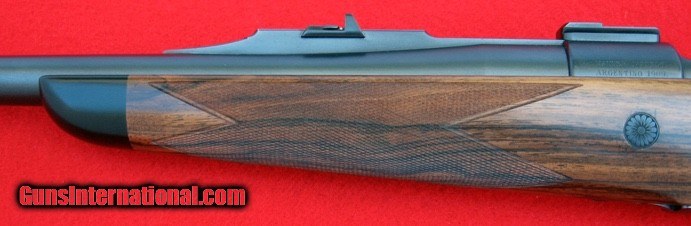 Description: Custom 7mm rifle made by Martini Gunmakers. All stock and metal work by Ralf Martini. Built on an Argentine Mauser action fitted with a 24-inch heavy contour Kriger barrel with a stepped quarter rib and express open sights zeroed at 50 and 100 yds. All screws; crossbolt, floorplate release engraved in a floral pattern. The quarter rib and front sight ramp are bordered and matted. Beautiful matted blue finish. This rifle is an example of styling and class that typifies Martini's bolt action rifles, a trully handmade bespoke rifle practically new, only test fired. SOLD Manufacturer: Martini Gunmakers Model: Mauser 98 Caliber Info: 7 mm Magnum Bore: Excellent Condition: As New Metal Condition: As New Wood Condition: As New Bore Condition: Excellent Action: Mauser 98 Extras: Talley Mounts |