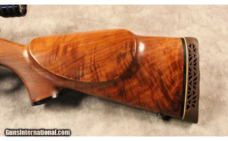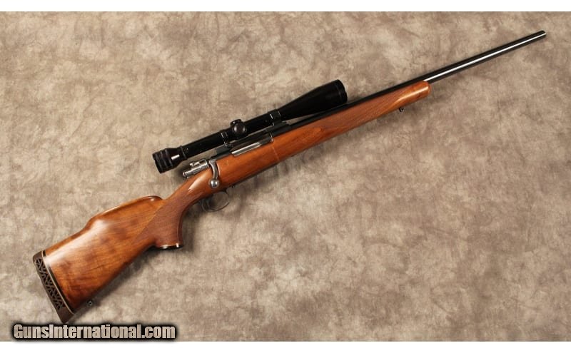 Description: Nice custom Mauser action with a 24" L.R. Wallack barrel in a custom stock with rollover cheek piece mounted with a Redfield 12X scope .22-250 Remington SOLD Metal Condition: Very good Wood Condition: Very good Bore Condition: Very good Barrels: 24 L.R. Wallack barrel Weight: 9lbs Sights: Redfield 12X Item Location: Mesa, AZ |