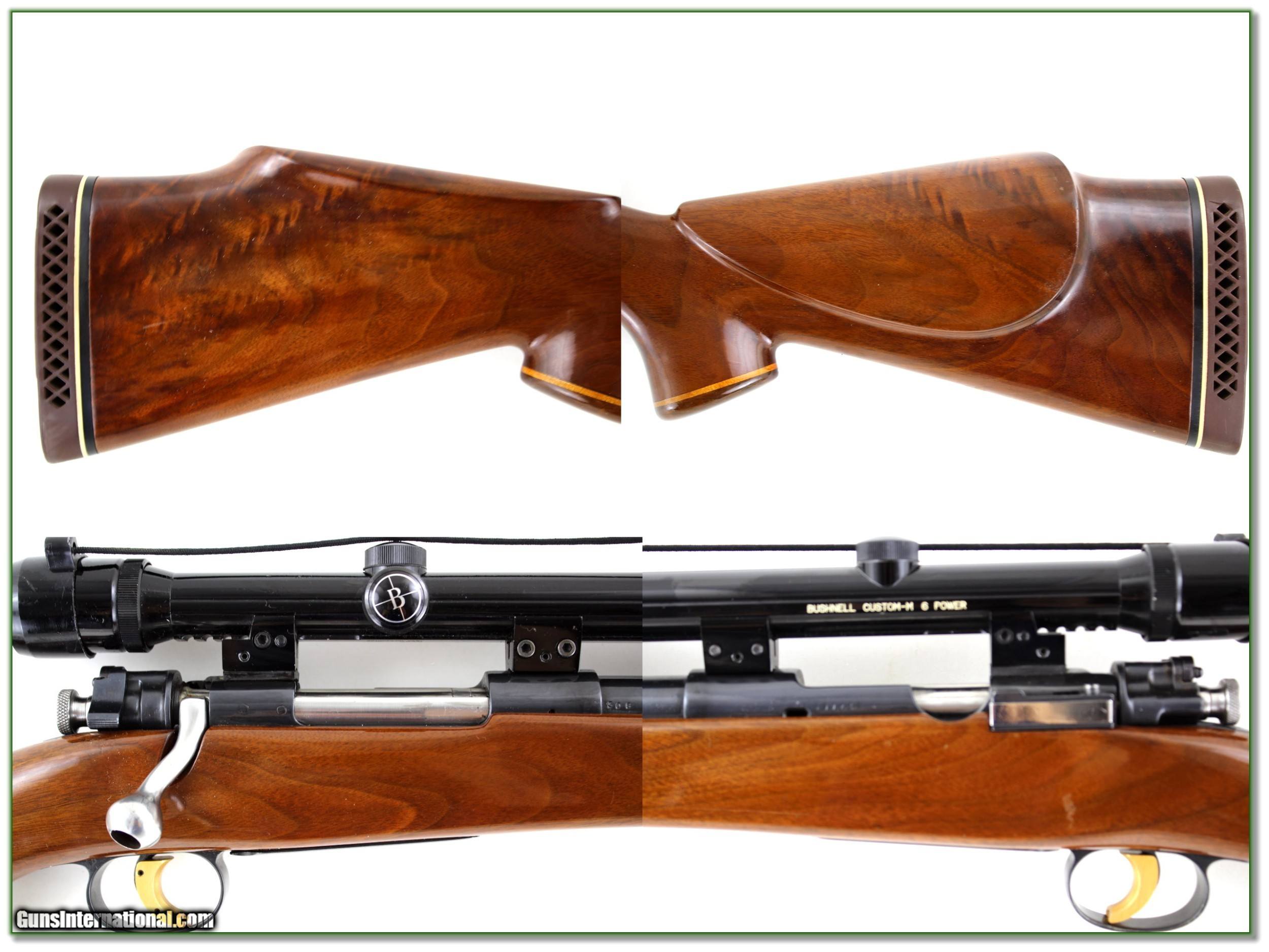 Description: This is an excellent condition and beautiful custom Mauser in 308 Winchester. The wood is outstanding with beautiful figure and excellent wood to metal fit. It has a 22in barrel and 14in LOP over pad to gold trigger boot. The scope is a Japan made Bushnell 6X. These Japan made scopes have excellent optics. I am selling this one on consignment and as such lay-a-way can’t be used. It does of course have the standard 3-day inspection. Shipping and insurance is $39. Please email me with any questions or larger pictures. (Consign your quality firearms with Shooting Investments for only 12%! Let me know if you have any you would like to sell!) 20-0788 Payment: Payment is by Money Order, Cashiers Check or Personal Check. I can now also accept Credit Cards (MasterCard, Visa, Discover & American Express) with a 3% convenience fee. Shipping: The shipping charge will be listed in each description. It is $39 for most firearms. Some heavy guns or those insured for over $2000 will be higher. Shipments to Alaska and Hawaii are higher because air shipment is required. Most firearms are shipped on Tuesday and Thursday and usually in 5 days of receipt of payment. We package all shipments carefully and insure them. Optics are shipped Priority Mail and most other non-firearm shipments are shipped First Class. Returns: Our return policy is simple. If for any reason you are not pleased with your purchase, you may return your item for a full refund of purchase price. Ammunition cannot be returned. It is important to us that you are happy. Guns cannot be fired or dissembled before returning them and they must be returned in the same condition as received. Notification of a return must occur with-in 3 days of receipt at your dealer. Shipping, convenience and dealer fees are not refundable and are the responsibility of the buyer. Lay-a-way: If needed, we offer a 60 day lay-a-way option on most firearms. It is 1/3 now, 1/3 in 30 days and 1/3 in 60 days. Lay-a-way firearm sales are final and if not completed the first payment cannot be returned. Consigning your firearms with Shooting Investments: We will help you get top dollar for your firearms. While most local guns shops charge 20% or more, our fee is only 12% with a minimum of $75. At your local gun shop it might take months to sell. Selling on-line provides instant access to thousands of interested buyers. You won’t find any other on-line dealer willing to sell your firearms for only 12% or listing every gun on 3 separate s. Selling through an House typically costs the seller 15% and the buyer an addition 15% (so 30%) and you have to wait several months to sell and longer to receive funds. If properly priced, we will sell your firearms in a few weeks. Send us an email or give us a call and we’ll explain how easy it is for you to get top dollar. Trading: Trading for use is really just buying your gun to re-sell. If you have a gun you want to trade, please email a picture and we will let you know what we can give or it. You will always get more if we sell it for you on consignment. Help for California Buyers: We are happy to ship to California. It is the buyer’s responsibility to make sure any item you buy is legal in your state. We are also happy to help with your purchase of a firearm from someone other than us. If you see a gun you would like to buy but the seller can’t or won’t ship to California they can ship to use and we’ll then ship it to your California dealer. The cost for this service is only $30 + shipping. Let us know if we can help! SOLD |