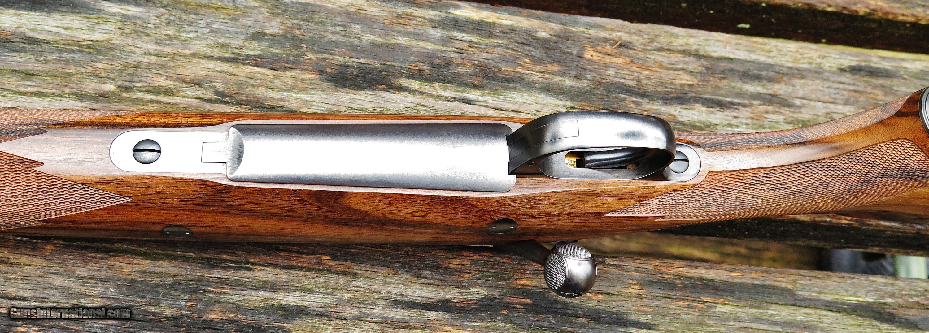 Description: This is a custom Mauser 98 rifle with 23" Barrel in the Wildcat .550 Ivory Express caliber. It was made about 40 years ago by renowned Master Gunsmith Robert Snapp who was President of the American Custom Gunmakers Guild in 1992. The design and workmanship are superb. The stock is American black walnut that is by another Guild member Chuck Grace. The caliber is a made from .378 Weatherby brass that is expanded to take the .550 Bullet. Lots of bullets, brass, completed ammo and RCBS loading dies etc. come with the gun. The action is smoothed and polished inside and out. Quarter rib with folding express sights. This is a big rifle that weighs in a 10 Lbs. 5 Oz. It was little fired by the owner and also recently test fired by my gunsmith. A very beautiful African style rifle that cost $8,000 to build years ago. I am Oregon Lumberjack on the other big site with 1000's of positive feedbacks. Offered at $4995 plus the actual cost of shipping the gun ammo and accessories. SOLD |