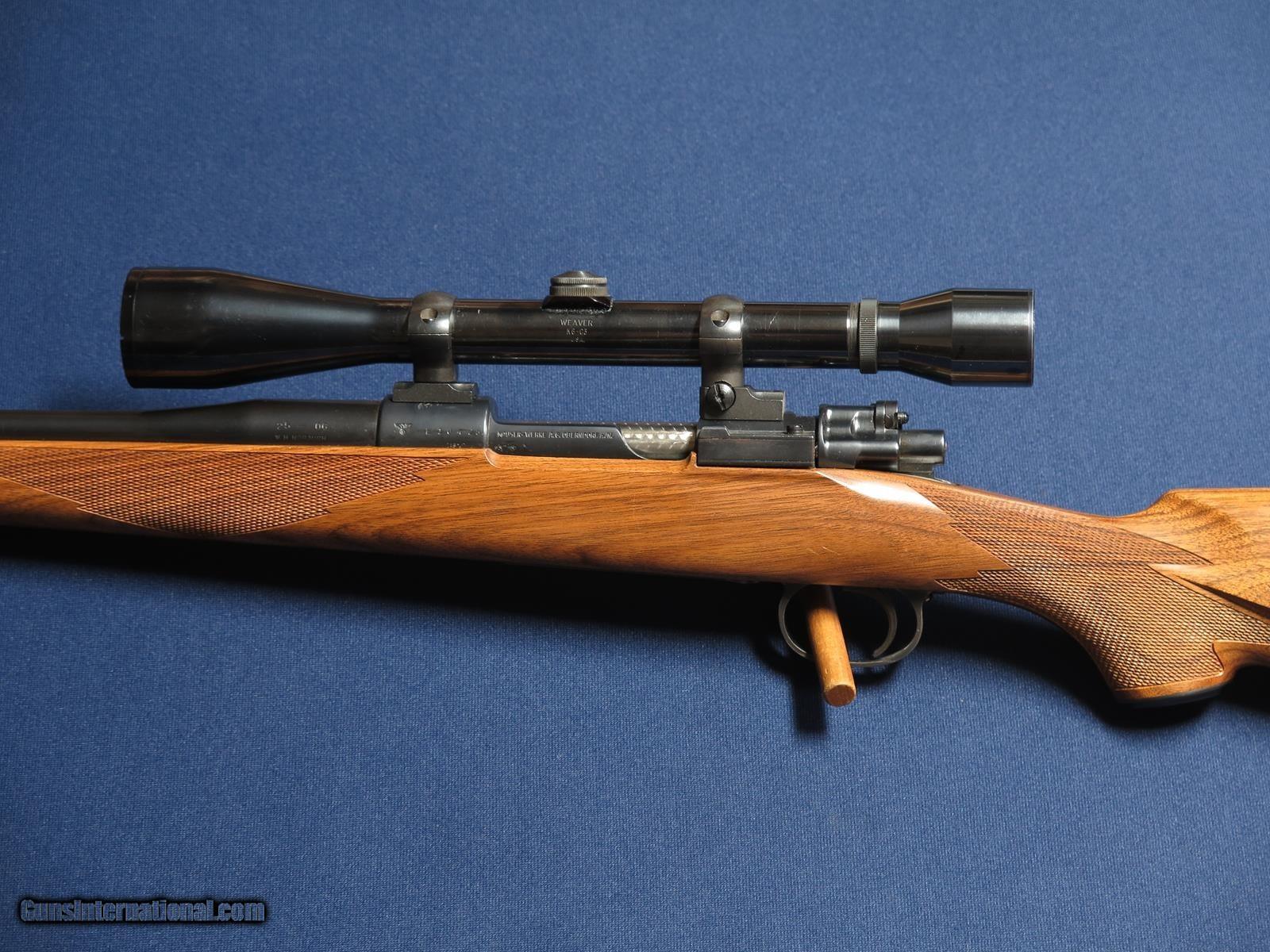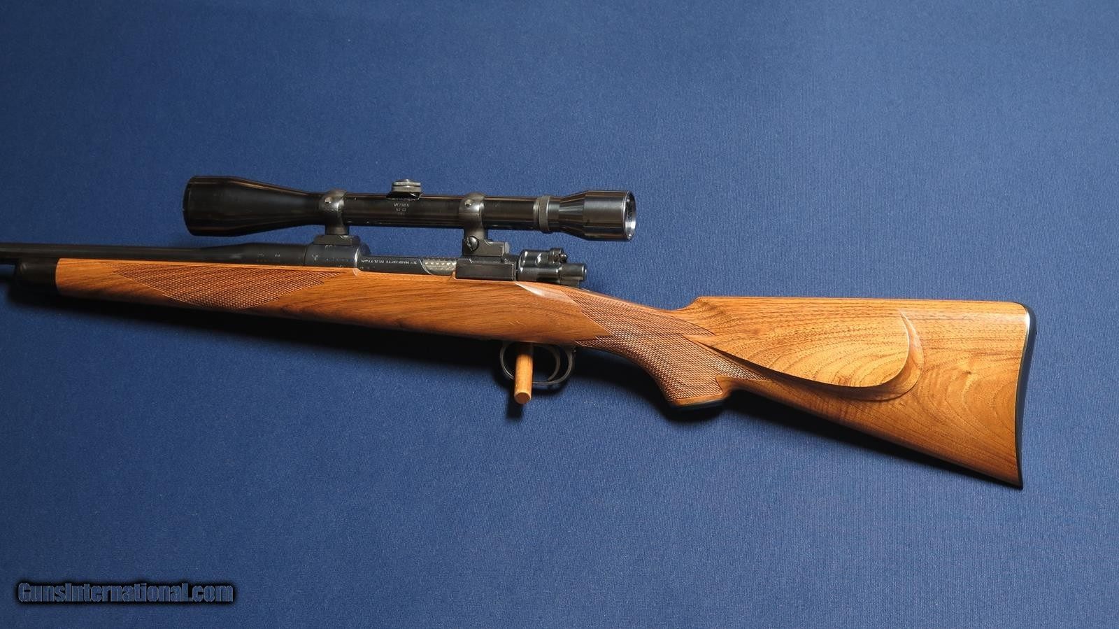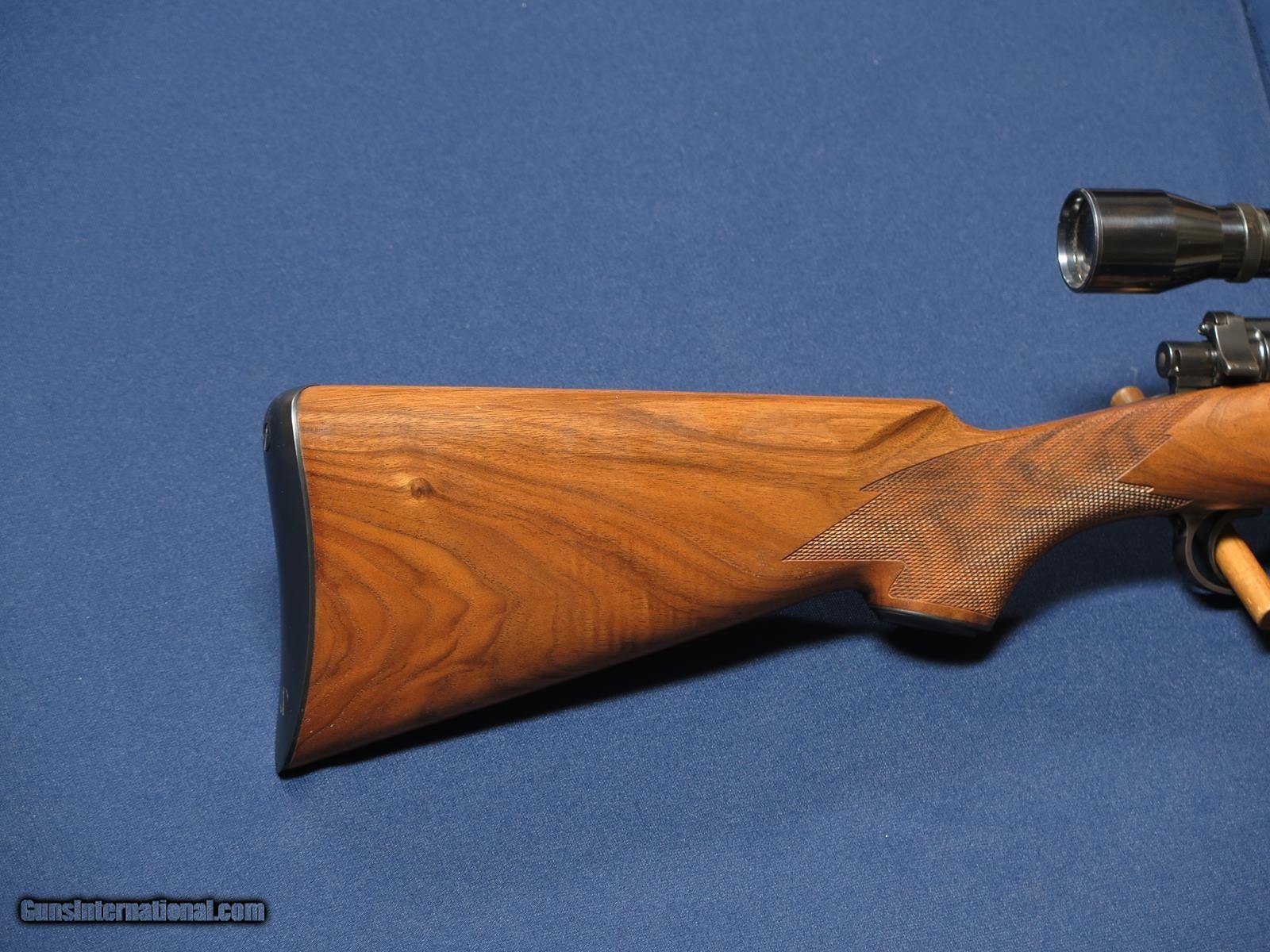 Description: Mauser Oberndorf W.H. Hobaugh 25-06 custom rifle. Mauser 98 control feed action. Jeweled bolt. 22.5 inch W.H. Hobough barrel. Ebony forend. Metal butt plate and grip cap. Jaeger trigger. Checkered wood with cheek piece. Weaver K6 scope with mounts and rings. Very nice well made gun in excellent condition. SOLD Rifle Caliber: .25-06 Remington |