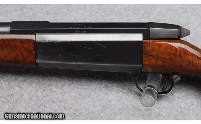 Description: This is an Omega Arms Omega III rifle in 7MM Remington Magnum. The action is in Good to Very Good condition with some handling wear and scratches on the metal. The barrel is in Very Good to Excellent condition with very litttle wear. The wood is highly figured with some scratches and handling marks. SOLD Caliber Info: 7mm Remington Magnum Metal Condition: Good to Very good with some scratches and handling marks on the action Wood Condition: Good to Very Good with some scratches handling marks Bore Condition: Bright and shiny. Barrels: 24 Triggers: Single Stock: Figured Wood with metsl grip cap Stock Dimensions: LOP: 13 1/2 Fore End: Figured Wood with contrasting end cap Butt Pad: Ventilated Rubber Sights: None Item Location: Reno, NV |
