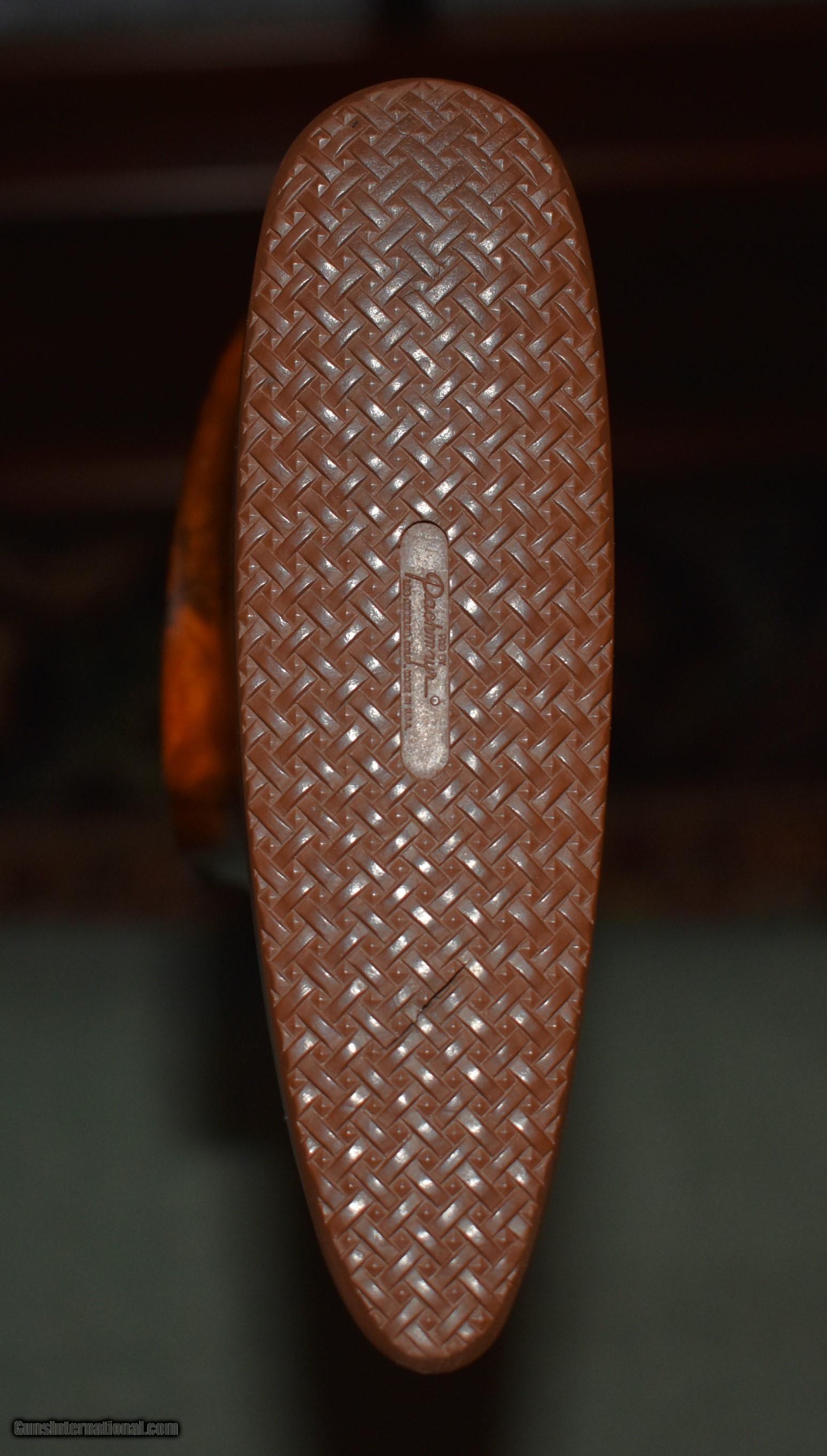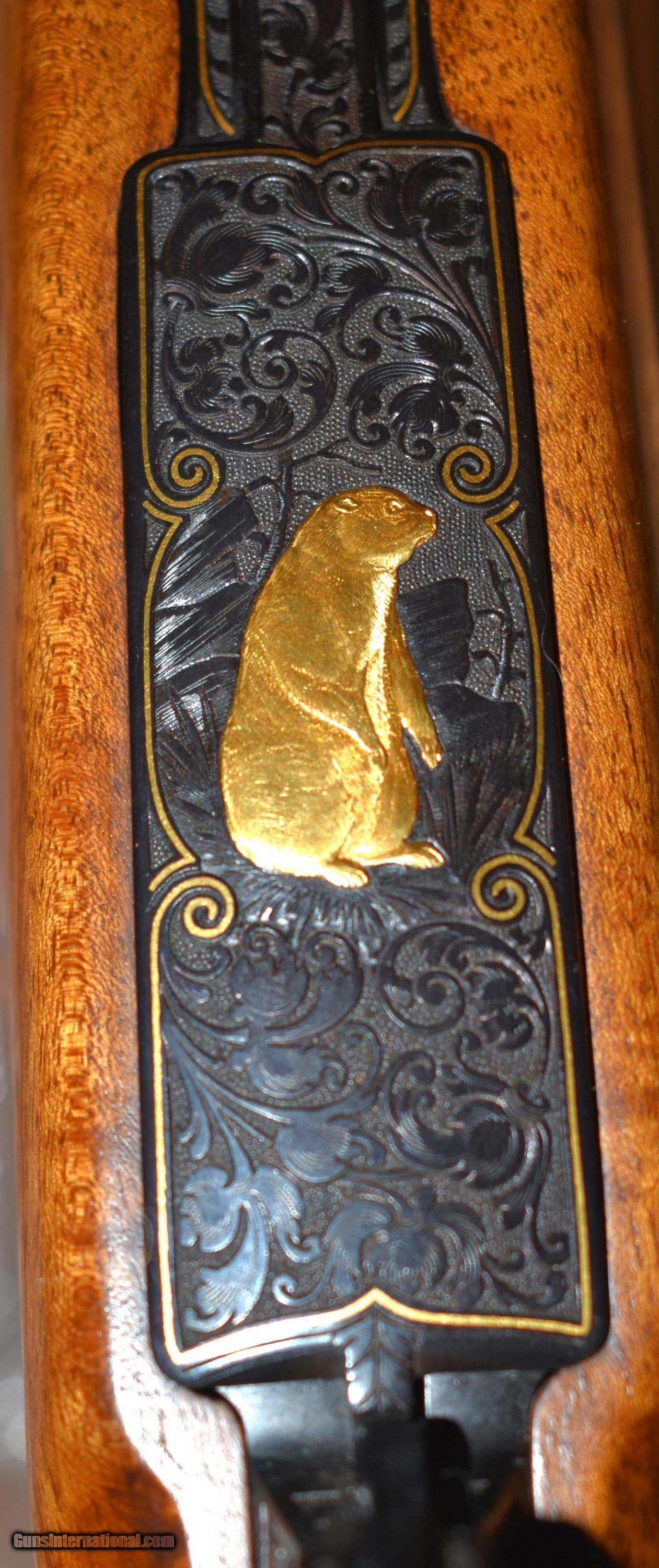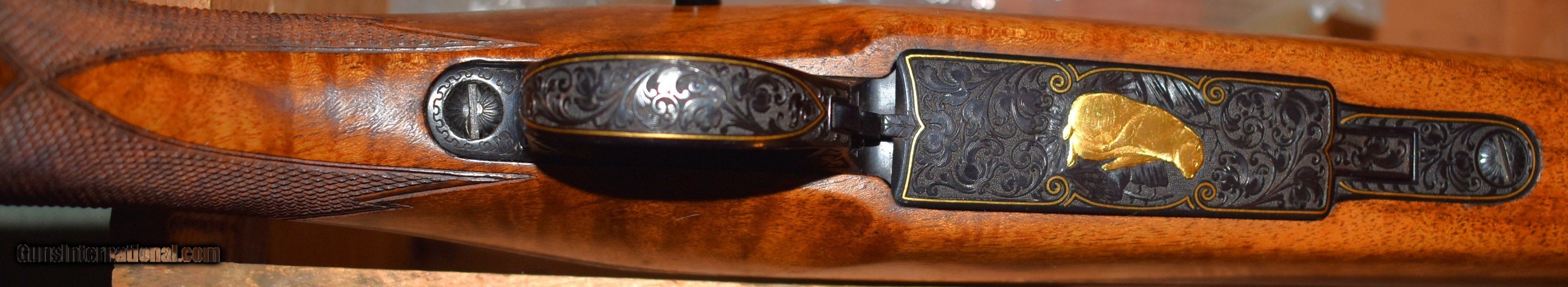 Description: A beautiful custom 243 built by Paul Jaeger Inc of Jenkintown,Pa in the mid 1970s. Built on a Sako L579 action,this rifle is in mint condition retaining 100% of the metal and wood finishes. Custom features include: deep relief oak leaf engraving with gold wire and gold lnlay of a woodchuck on the floorplate,trigger guard,and grip cap. A Douglas premium 26" barrel. An incredible stock of very highly figured European walnut with a slim beavertail forend. Blackburn bottom metal. Very fine checkered wrap around checkering on forend and grip. Engine turned bolt with checkered bolt handle. Sako bases and 1" rings. Gold initial oval with the intitals "EO" engraved. The ultimate varmint rifle from one of the classic custom builders of our time. A true work of gunmaking art. C&R eligible. Price includes shipping to your FFL. SOLD Curio/Relic: Yes Rifle Caliber: .243 Winchester Manufacturer: Paul Jaeger Model: Custom Serial Number: 65297 Barrel Length: 28 Condition: mint Metal Condition: mint Wood Condition: mint Bore Condition: mint Barrel Type: Douglas Premium Action: Bolt Butt Pad: Factory Recoil Pad Manufacture Date: Mid 1970s |