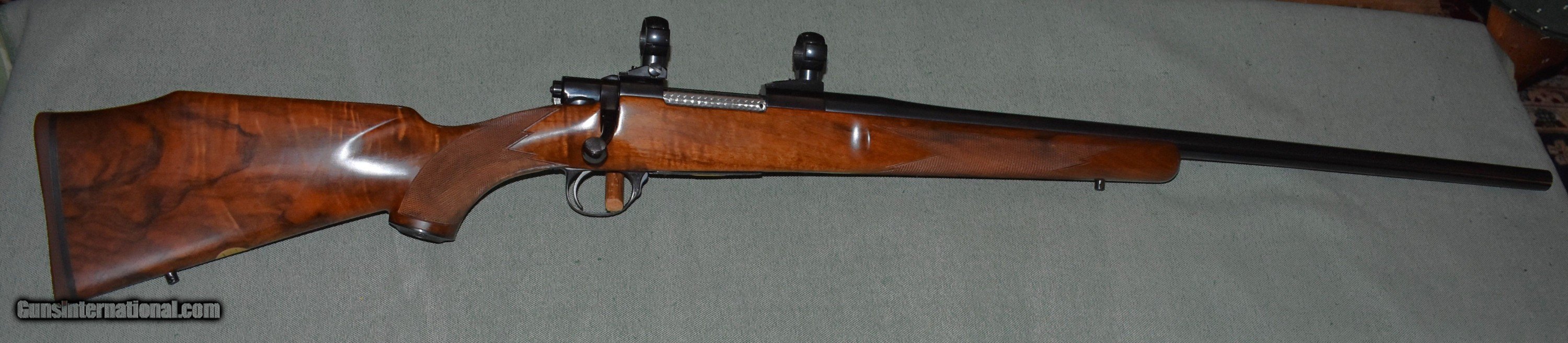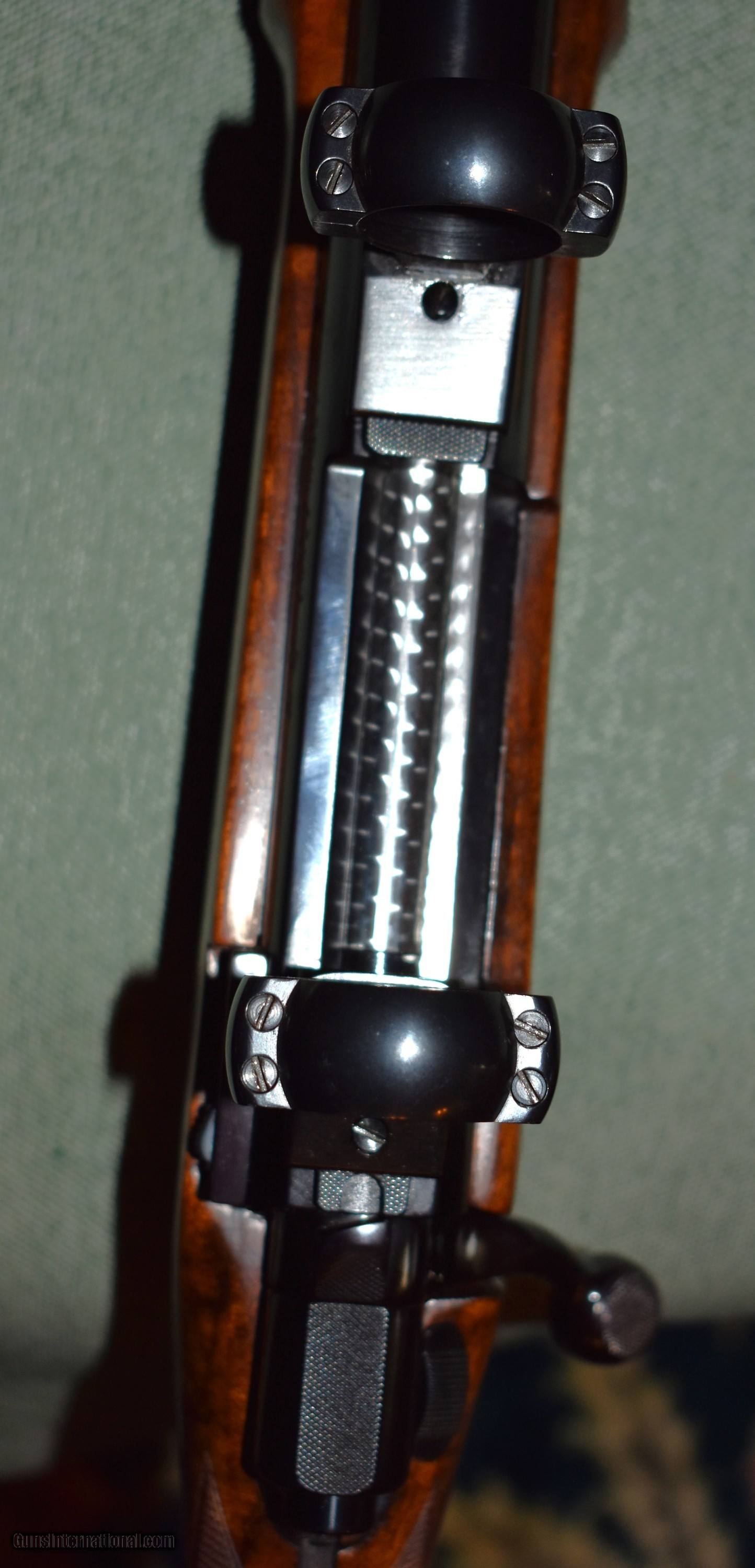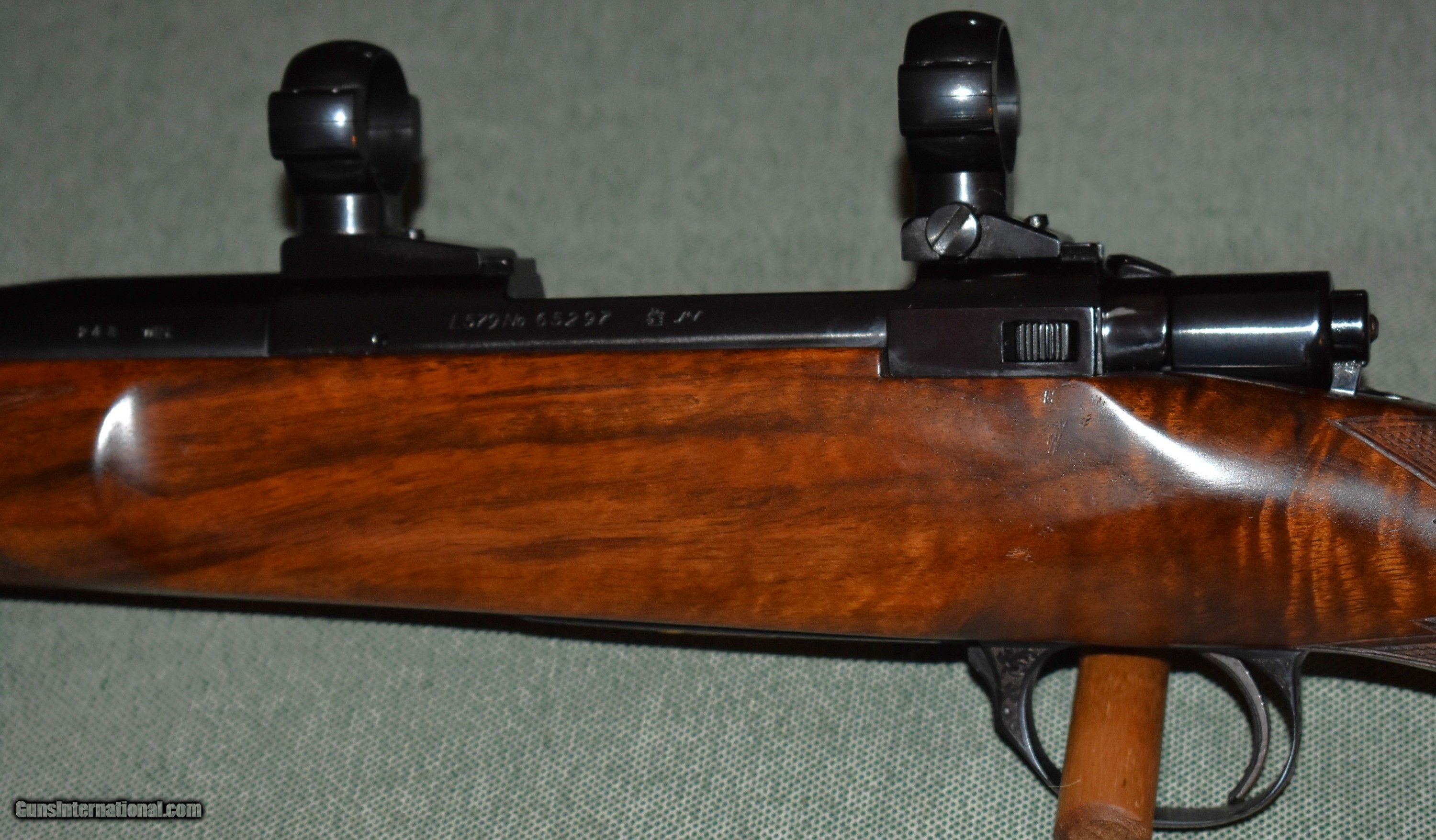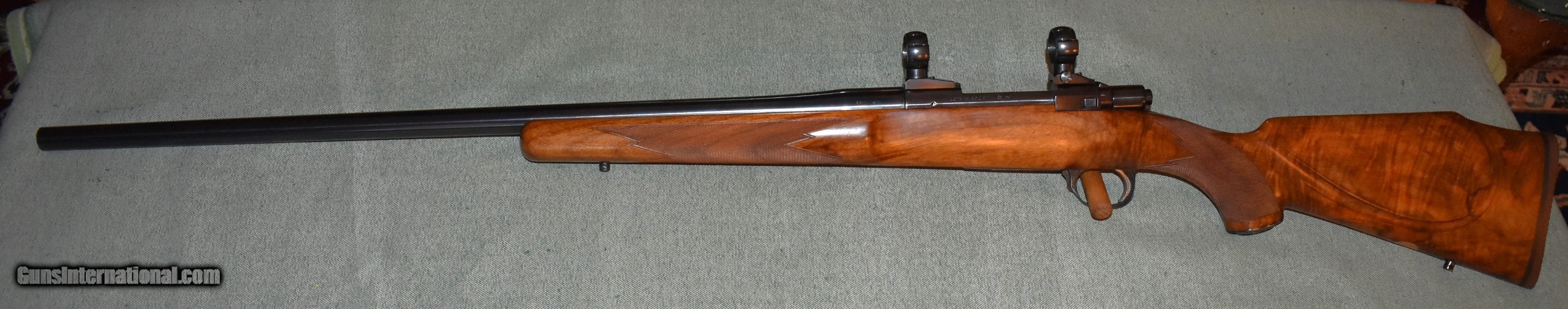 Description: A beautiful custom 243 built by Paul Jaeger Inc of Jenkintown,Pa in the mid 1970s. Built on a Sako L579 action,this rifle is in mint condition retaining 100% of the metal and wood finishes. Custom features include: deep relief oak leaf engraving with gold wire and gold lnlay of a woodchuck on the floorplate,trigger guard,and grip cap. A Douglas premium 26" barrel. An incredible stock of very highly figured European walnut with a slim beavertail forend. Blackburn bottom metal. Very fine checkered wrap around checkering on forend and grip. Engine turned bolt with checkered bolt handle. Sako bases and 1" rings. Gold initial oval with the intitals "EO" engraved. The ultimate varmint rifle from one of the classic custom builders of our time. A true work of gunmaking art. C&R eligible. Price includes shipping to your FFL. SOLD Curio/Relic: Yes Rifle Caliber: .243 Winchester Manufacturer: Paul Jaeger Model: Custom Serial Number: 65297 Barrel Length: 28 Condition: mint Metal Condition: mint Wood Condition: mint Bore Condition: mint Barrel Type: Douglas Premium Action: Bolt Butt Pad: Factory Recoil Pad Manufacture Date: Mid 1970s |