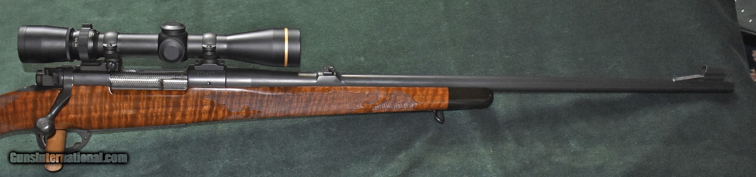 Description: A custom built 270 Win built by Pachmayr Gun Works of Los Angeles. Built on a pre 64 Winchester model 70 barreled action, this rifle has a 24" barrel with a mint bore. Features include Blackburn bottom metal, a jeweled bolt and follower, a checkered bolt handle, a shadowline cheekpiece,inletted sling swivelsnand an ebony forend tip. The stock is 3x walnut and is finely checkered with fluer style checkering. the rifle has a Leupold vari-X III 2.5x8 scope installed. The rifle is in mint condition retaining 100% of the wood and metal finish. A classic custom rifle at 1/3 of the cost to have it built today. C&R eligible. SOLD Curio/Relic: Yes Rifle Caliber: .270 Winchester Manufacturer: Pachamyr Gun Works Model: custom Serial Number: 215427 Barrel Length: 24 Condition: mint Metal Condition: mint Wood Condition: mint Bore Condition: mint Barrel Type: Winchester proof steel Action: bolt |