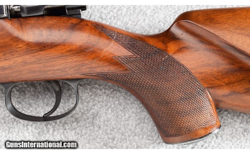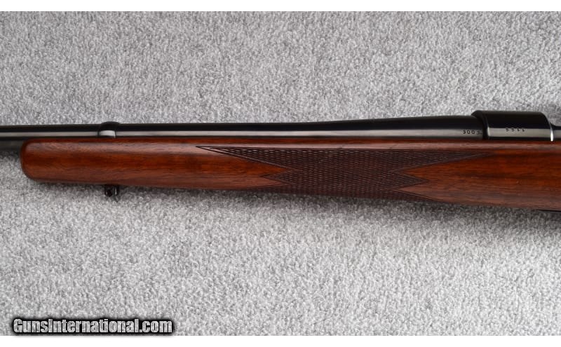 Description: The story of Paul Jaeger is very unique and interesting. Born in the United States in 1901, he returned to Germany with his parents when he was two. He completed his schooling in Germany with several areas of interest and graduated with a degree in engineering. He moved back to the US settling in New York. He soon moved to Philadelphia (Jenkintown) and converted a horse stable to a shop. After WWII he converted to a machine shop and started making custom hunting rifles from surplus military components. Later he converted the shop to a retail establishment where he sold guns and gun accessories. His innovations include a Single Set Trigger and Jaeger quick detach side mount for scopes. This gun is in excellent overall condition showing only light use. Wood is nicely figured and shows only a few light use marks. Some darkening at butt plate from age. Wood was broke at the wrist and professionally repaired. Blue remains excellent with a few light scratches and some light areas of oxidation. Barrel is stamped "Paul Jaeger-Jenkintown PA". Bore is excellent. This is a Controlled Round Feed action and is complete with a period Lyman adjustable peep sight. Beautiful gun! .300 Savage SOLD Metal Condition: Very Good Wood Condition: Very Good Bore Condition: Excellent Barrels: 22 Triggers: Original "Jaeger" Trigger Stock Dimensions: 14 1/4" LOP Fore End: Checkered Walnut Pistol Grip with Metal Pistol Grip Cap - Checkered Walnut Forend Butt Pad: Checkered Metal Butt Plate Weight: 8 lbs Sights: Post & Bead Front - Lyman Adjustable Rear Peep Sight Item Location: Wheeling |