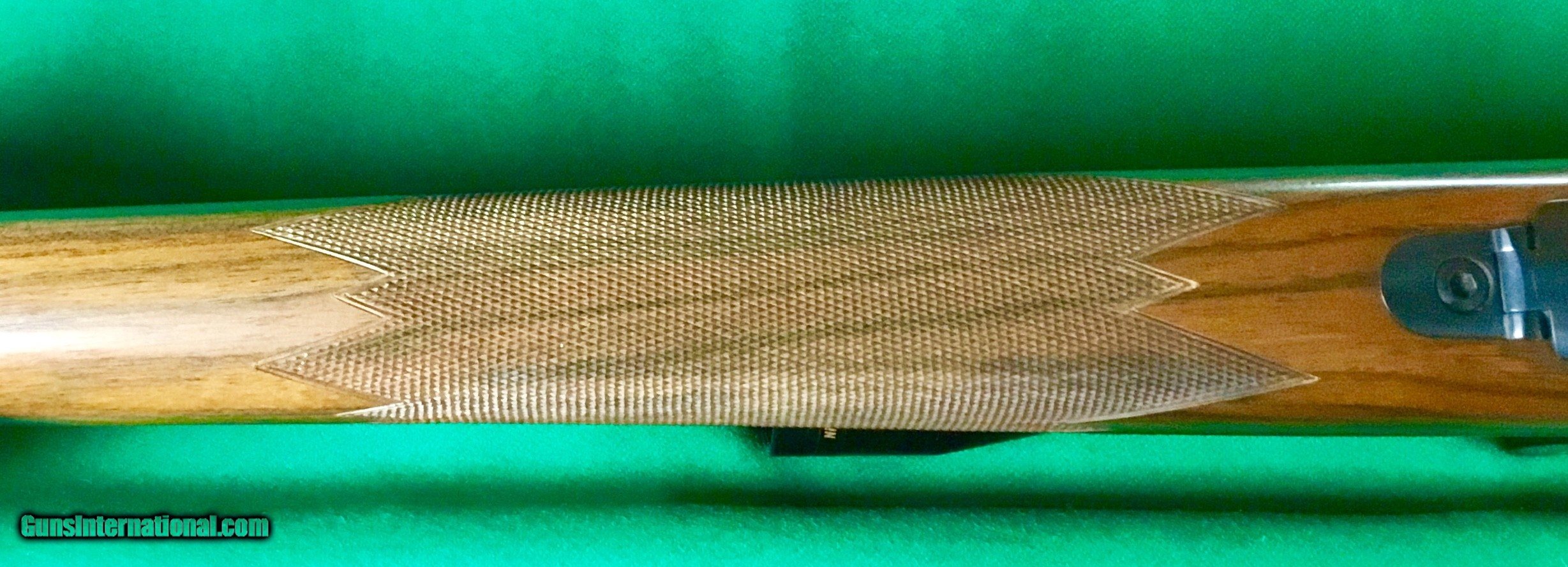 Description: Final reduction to $2698 /// Jim Duncan, a local artist, now deceased, built this beautiful 338 Winchester magnum on a 1960 Pre-64 338 Winchester Magnum Model 70 barreled action. His stock work is second to none. Note the wrap around checkering on the forearm. 13 1/2 inch pull over pad. Stock shows a few minor hunting marks, nothing serious. Nikon scope included. $2698 plus $55 insured shipping in a hard case. Lay a way available. No credit cards and no trades. C&R ok. more info and photos on request. SOLD Curio/Relic: Yes |