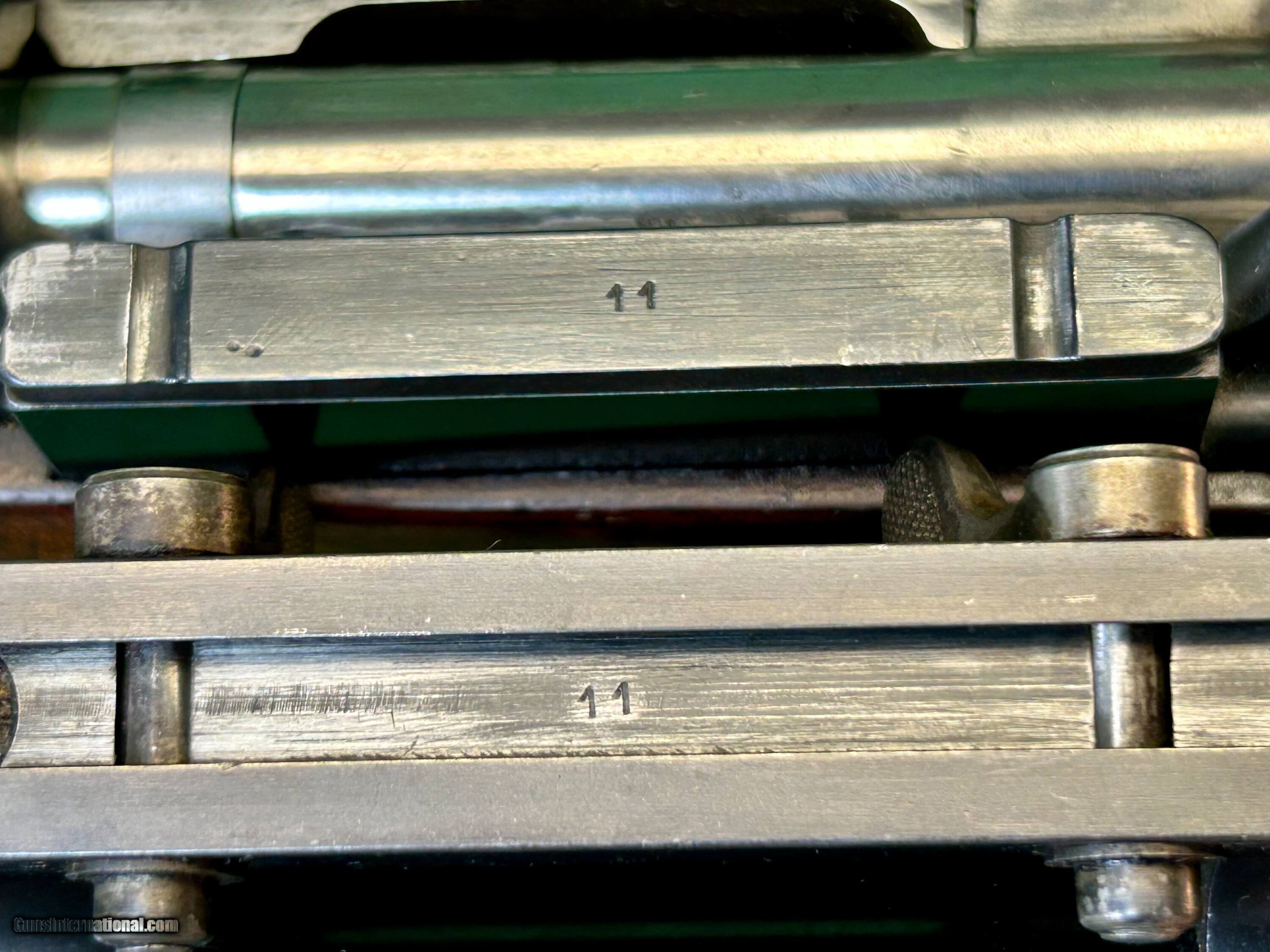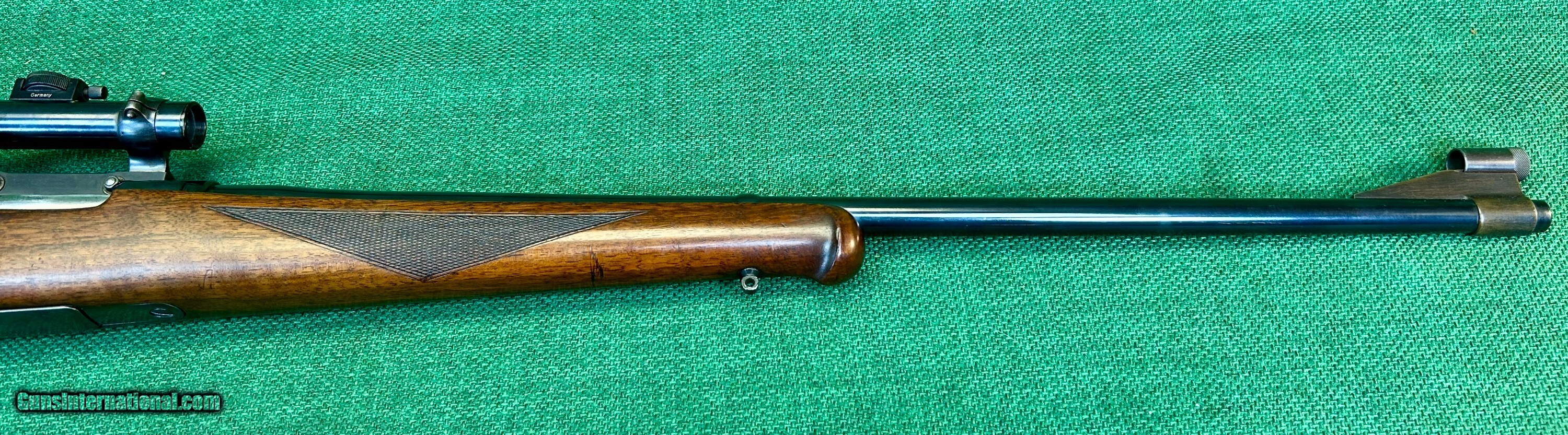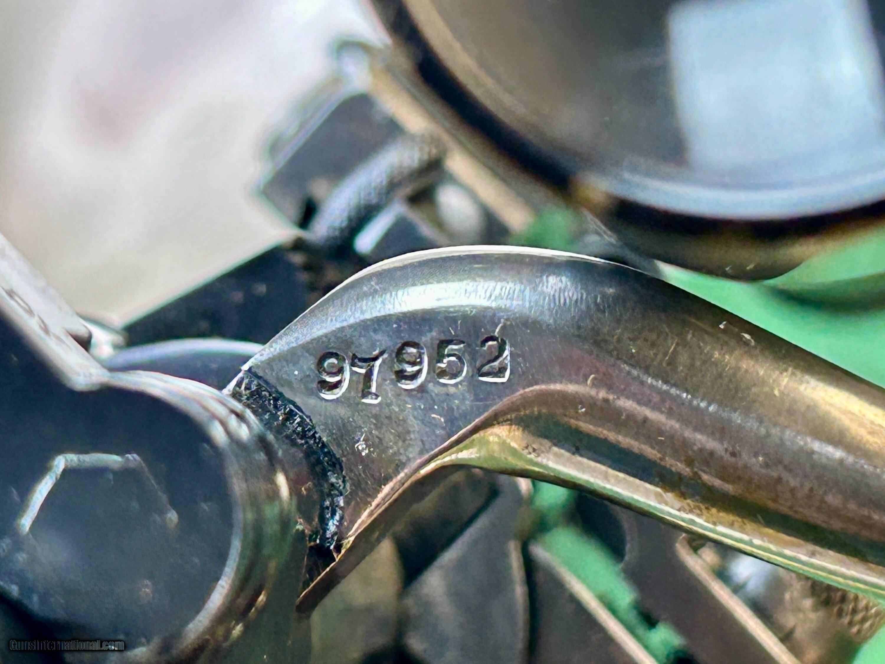 Description: Reginald F. Sedgley, a Philadelphia gunsmith formed R.F. Sedgley, Inc. Sedgley was known for buying pre-existing actions and rebarreling and restocking them. This rifle is one of them. A Springfield 1903, chambered in .30-06, its approximately 23.5" barrel is stamped “R.F. SEDGLEY. INC. PHILA, PA. U.S.A.,” along with his circled “S” proofmark. This rifle's walnut stock with schnabel forend is checkered and does have hook-and-eye sling mounts. This Sedgley also features Sedgley's signature hooded ramp-based front sight, a Lyman No. 48 rear sight, Winchester checkered steel buttplate, and hard rubber grip cap. We find this rifle's receiver, bolt, and custom stock to be numbers-matching. Topping off this Sedgley custom is a Hensolt Wentzlet Ziel Dialyst scope with a post reticle. This scope is paired with a numbers-matching Griffin & Howe scope base and rail. The barrel's rifling is strong and clean. The bluing on this rifle presents well with no scratches. The stock is also in excellent condition with minimal handling marks seen. The stock has no cracks or gouges. When we removed the butt plate we found the serial number for the rifle along with what appears to be a GH. Please see pictures for details. We accept USPS Money Order, cashier’s check, or credit card for immediate shipping. Please note credit card sales are subject to an additional 3% fee. US shipping only. Shipping costs are actual postage, with adult signature required, to your FFL 01 or 03. We will pay the insurance for the amount sold. All items are for sale locally, so make contact as soon as you make your decision. Inquiries will be handled in chronological order. All postings will remain active until funds are received. We appreciate funds to arrive within 10 days of verbal agreement. After such time we will entertain other inquiries in the order they were received. Curio/Relic: Yes Rifle Caliber: .30-06 Springfield Manufacturer: Sedgley Sporter Springfield Model: 1903 Barrel Length: 23.5 Price: $1,999.00 Contact Seller |