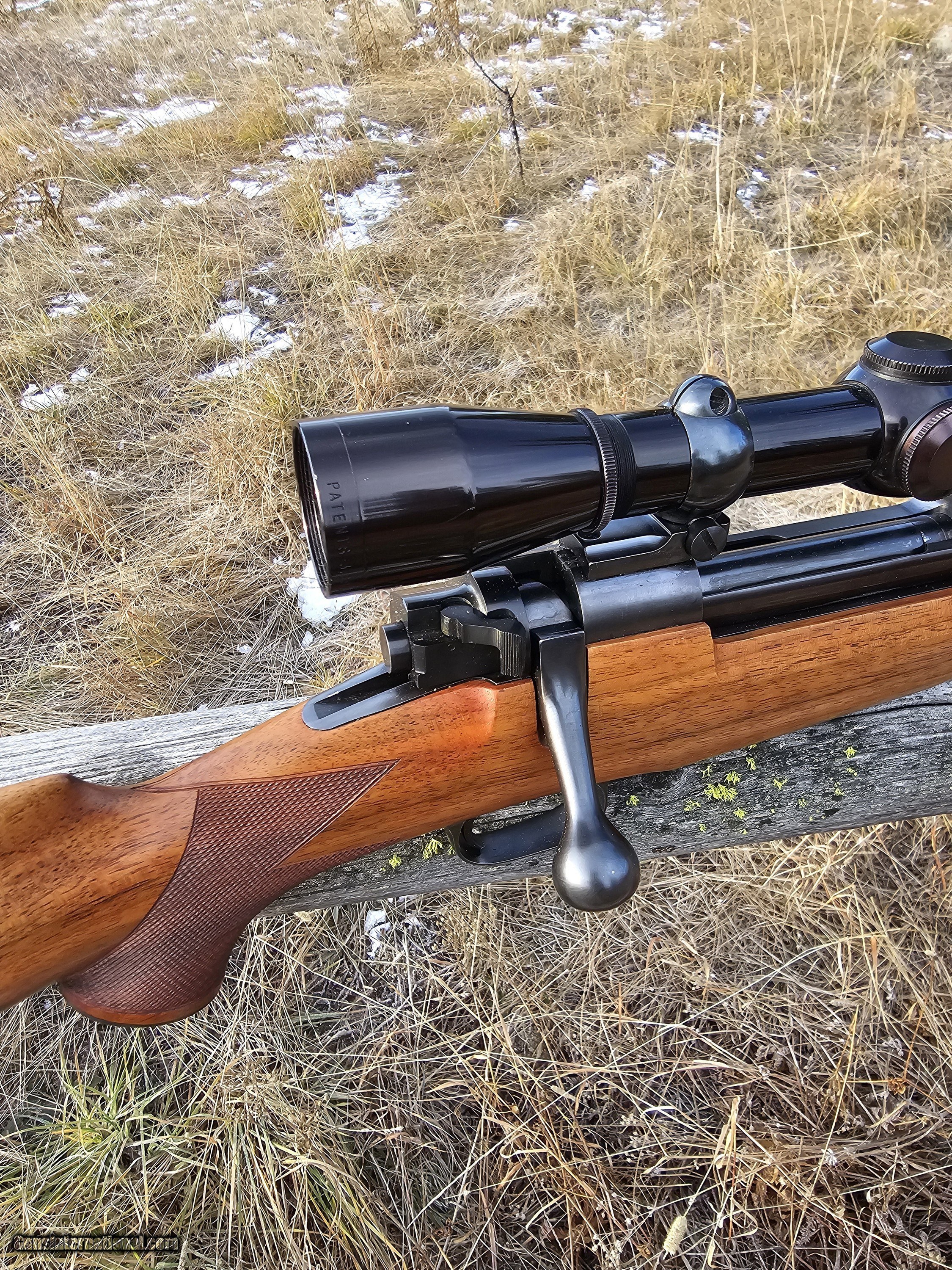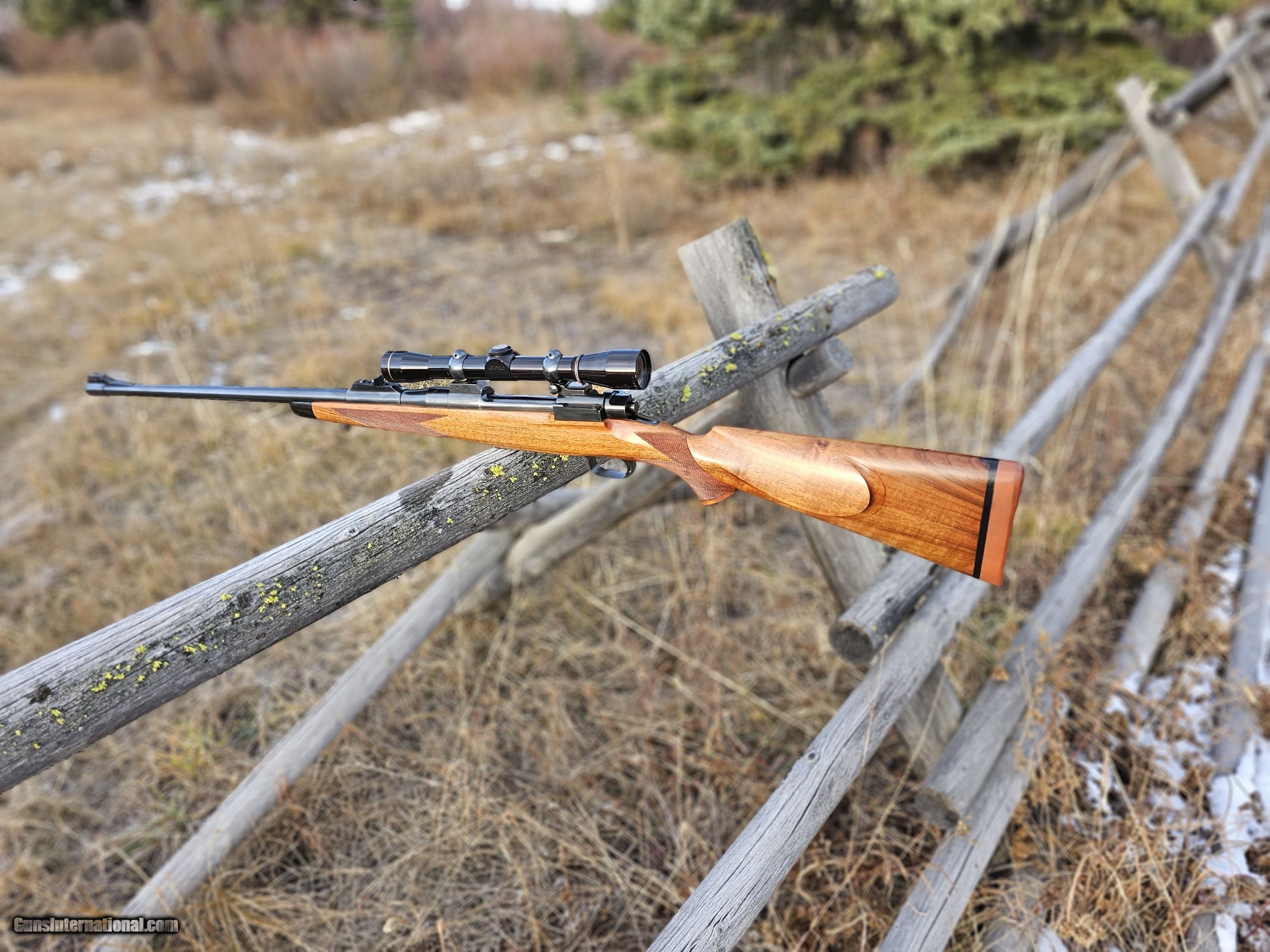 Description: Here is an excellent custom Remington Model 30 in .30-06. The metalwork is by Phil Fisher, and the stock was built by Bill Ferguson. The beautifully rust-blued 24" barrel has an excellent bore. It features a banded front sight and a unique thumb-adjustable rear express sight. A Leupold M8 4x scope is mounted in Buehler mounts. The scope has a duplex reticle and excellent optics. The rifle has a very smooth action. It has a two-position safety, a Mauser-style bolt release and a Timney trigger. Mr. Ferguson stocked the rifle in a figured piece of California walnut. The length of pull is 14 5/8" including a solid red pad. The weight (scoped) is 9 lbs 6 oz. A fabulous, high quality rifle that appears to have been used very little, if at all. Curio/Relic: Yes Rifle Caliber: .30-06 Springfield Price: $3,250.00 Contact Seller |