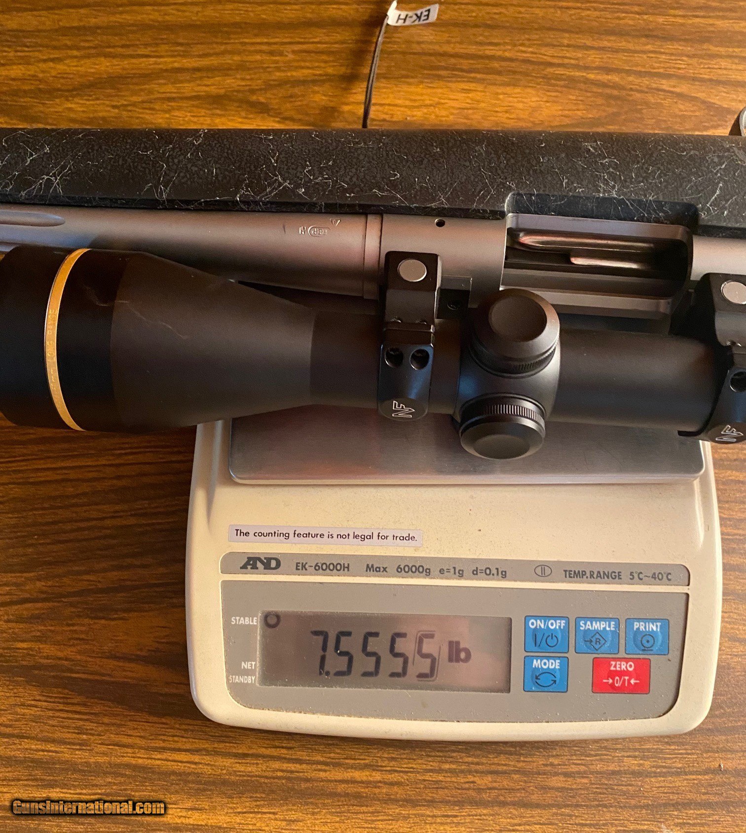 Description: Super Rare- Remington Ti Titanium in 300 WSM, Vias brake installed by Vias, fluted bolt, fluted bbl, Jewell Trigger breaks at a crisp perfection 2lbs, factory HS Precision stock, Nightforce Titanium & T6 Ultralight Rings, Leupold Long Range VX3 4.5x-14x-50mm Duplex reticle with drop hash marks, less than 100rds is down the bbl, probably closer to 50 just testing factory loads for my wife. I purchased this rifle NIB years ago and built it for her and due to health issues she was not able to hunt-its been a safe queen for a while and moving on. The power of a 300 win mag in a short action and sub 8lb rig-ultimate carry. I just installed a new Kickeeze sorbethane pad (shown) . The scale dont lie (see photo) *****7.5lbs exactly as shown****. $2.7k as she sits, $2.1 sans glass and rings- Remington made these for a very short time and seldom come up. SOLD |