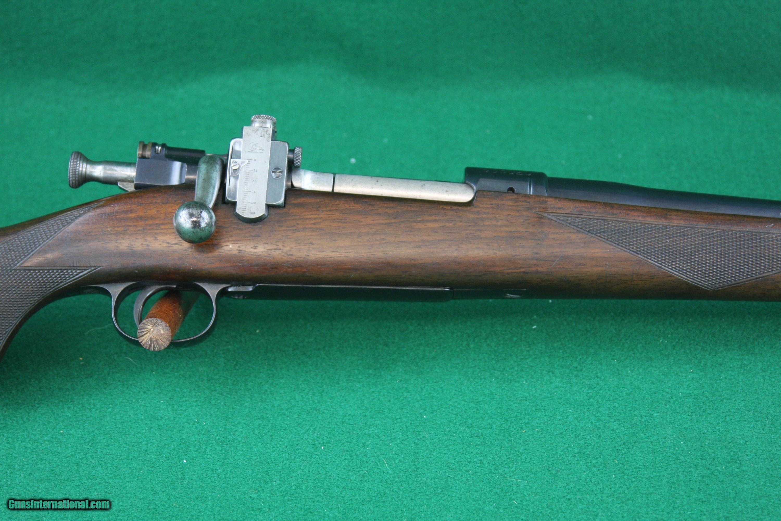 Description: Here’s a true American Classic Custom Rifle from R.F. Sedgley, one of the pre-imminent rifle builders of the era. Pre WWII manufacture featuring a Lyman Receiver Sight and ramp front bead sight on a 24” barrel. The stock is Checkered Walnut with Schnabel fore end, grip cap, Neidner style checkered steel butt plate and sling swivels. Chambered in the versatile .30-06 Springfield. See the pictures for condition. Happy to talk, text or email any time. Let me know if you have any questions. Thanks for looking! 9440440 BCEE 3G If your preference is Walnut & Blue, check out my other listings for quality Traditional and Custom Firearms. Curio/Relic: Yes Rifle Caliber: .30-06 Springfield Manufacturer: Sedgley/Springfield Armory Model: 1903 Serial Number: 605920 Barrel Length: 24 Condition: EXCELLENT W/very minor handling marks Metal Condition: EXCELLENT Wood Condition: Excellent w/very minor handling marks Bore Condition: EXCELLENT - SHARP RIFLING Action: BOLT Action Stock: CHeckered Walnut, Schnabel fore end Fore End: SCHNABEL Butt Pad: NEIDNER STYLE CHECKERED STEEL LOP: 13-1/2 Finish: Satin Stock/deep blue metal Weight: 7 LBS 8 OZ Sights: LYMAN RECEIVER & FRONT RAMP BEAD Manufacture Date: PRE WWII Price: $2,295.00 Buy Now Contact Seller |