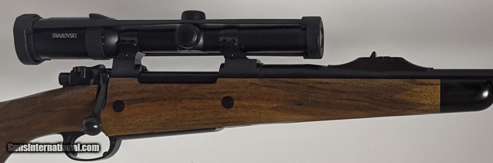 Description: Great big bore rifle from Ryan Breeding! Boasts a 24" barrel with a 14" LOP over 1" leather-covered recoil pad. Granite Mountain Action with a beautiful piece of French Walnut. Point wrap checkering pattern with 2 crossbolts (w/ Ebony plugs). Features an Ebony forend tip, Island-style rear sight (1 Standing & 2 Folding rear sights), and banded/hooded front sight. Sports an inletted rear swivel and a barrel band front swivel. Has custom bottom metal and a shadowline cheekpiece. SN - RB0909. This rifle is NEW and UNFIRED! Avoid the long wait...as this piece is by one of the world's great rifle makers!! ***Please add $75 for shipping*** Feel free to call the shop with any questions, or to secure payment. We are open Monday through Friday (11 - 5 CST). Thank you! SOLD Rifle Caliber: .404 Jeffery Manufacturer: Ryan Breeding Model: 98 Mauser Serial Number: RB0909 Bore Condition: Perfect Stock: French Walnut LOP: 14 Sights: Island-Style |