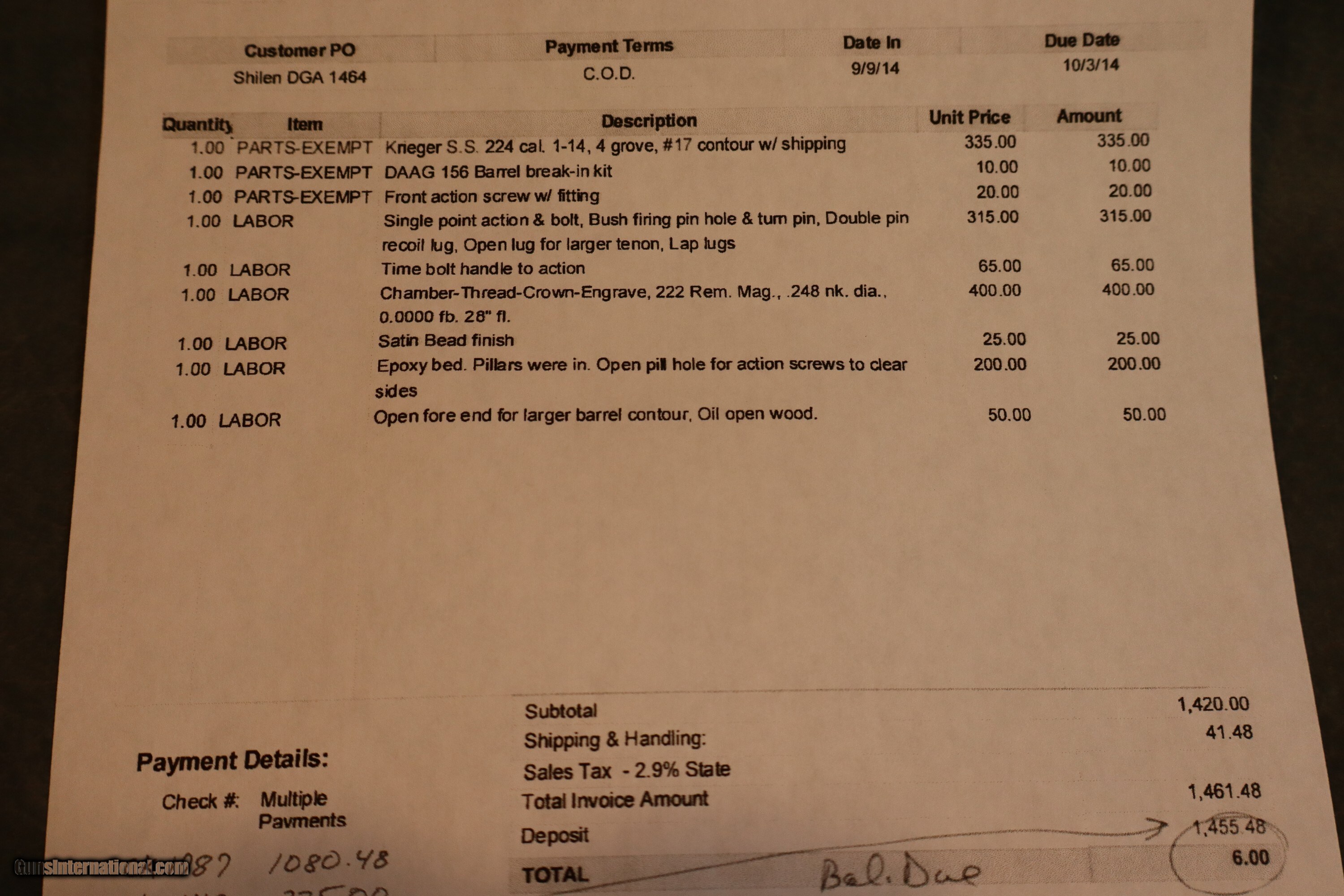 Description: Shilen DGA 223 Krieger Custom stainless barrel by Gre-Tan for $1420,was going to be 222 but switched to 223,30mm rings and bases. GUN COLLECTIONS WANTED FOR CASH! We buy, sell, consign and trade new and used firearms.We travel for large collections,finders fee available. This is our 49th year in business. We offer 90 day layaways with 20% down. No return on layaways. Firearms will need to be transferred through a FFL dealer. Prices reflect a cash discount. There will be 3% added to credit card sales. We trade for gold and silver. THANK YOU! Price: $1,495.00 Shipping: $45.00 Contact Seller |