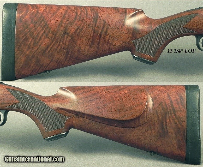 Description: #G1926, Winchester Model 70 - 7mm Rem. Mag. Custom Shop Completed October 2001 as a Custom Super Grade Model, Claw controlled round feed extraction, 26" match grade cut rifled round barrel that is fluted, No open sights, Leupold 2 piece bases with 30mm rings, Hand honed action, Wolff firing pin spring that improves firing acceleration, 3-position Model 70 safety, Model 70 trigger, Jeweled bolt body, A blind rear guard screw in the receiver tang, Steel trigger guard and a steel hinged floorplate, Satin matte blue on all the metal, Deluxe American Walnut stock in a Classic style, Polyurethane finish, Shadowline cheekpiece, Black forend tip, Point pattern checkering, Steel grip cap, 2 screw tiedown sling eyes both front and back, Single cross bolt back of the magazine, 8 lbs. 12 oz., 13 3/4" LOP over a 1" pad with the Winchester logo, The gun has the Custom Shop Proof Stamp along with the Winchester proof, It retains 99% original blue, The stock finish is 100% as it has a spare synthetic stock that was used for hunting, The checkering is 100%, The bore remains as new. It comes with the Custom Shop letter of authenticity and an owner's manual. It comes with a spare McMillan classic style black synthetic stock to be used for rough hunting that cost $694 in 2005, if the buyer of the Super Grade does not want the McMillan stock it can be bought separately for $600. SOLD Rifle Caliber: 7mm Remington Magnum |