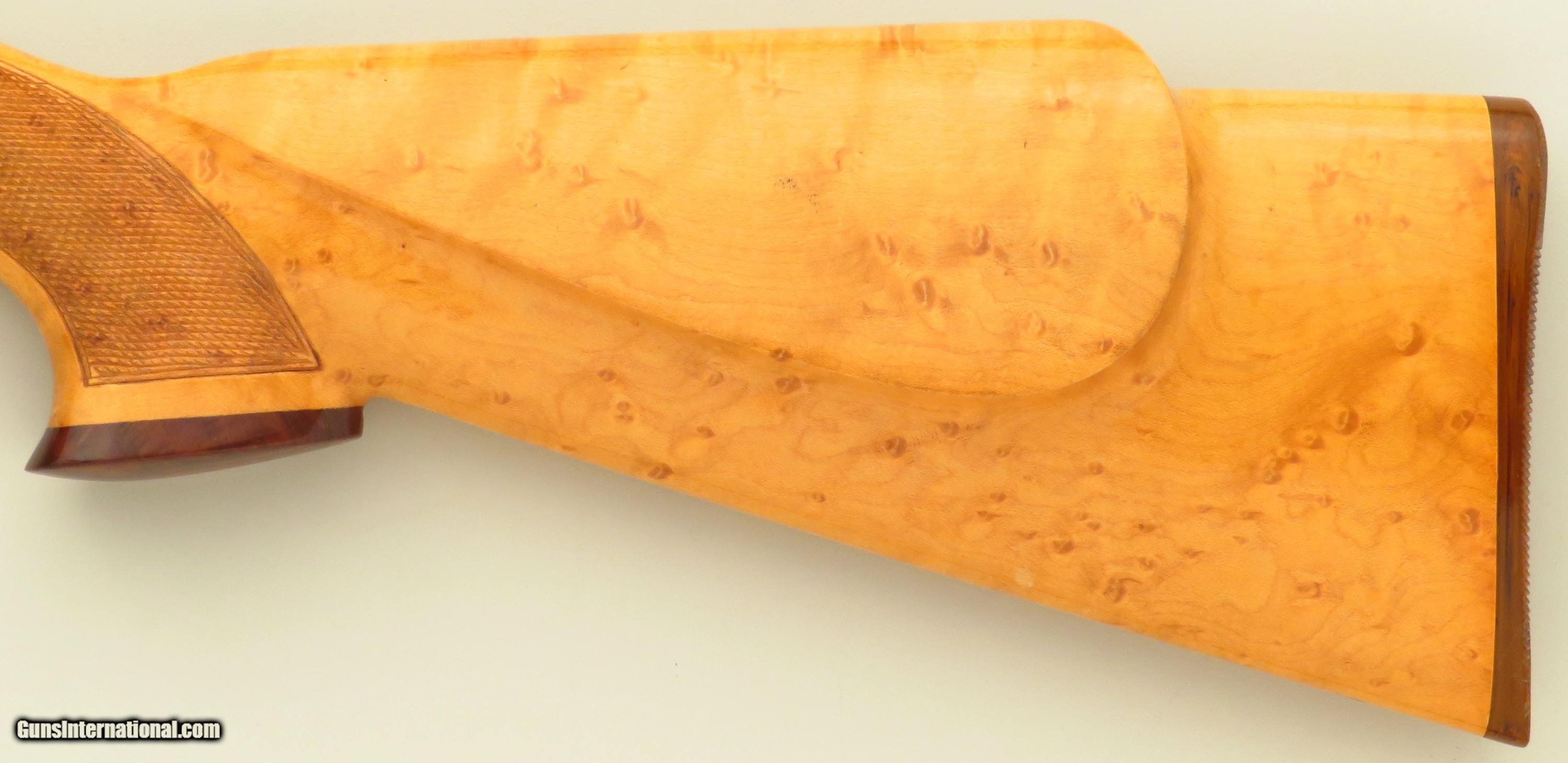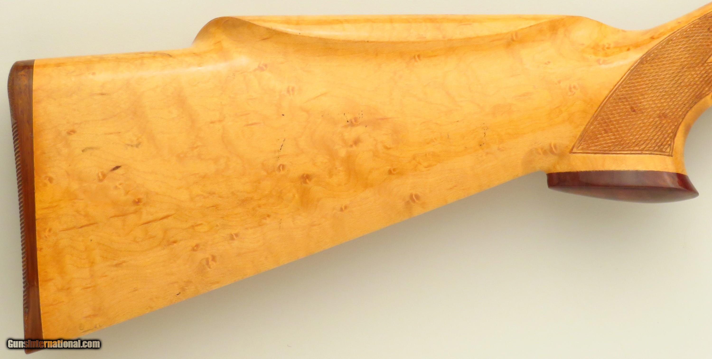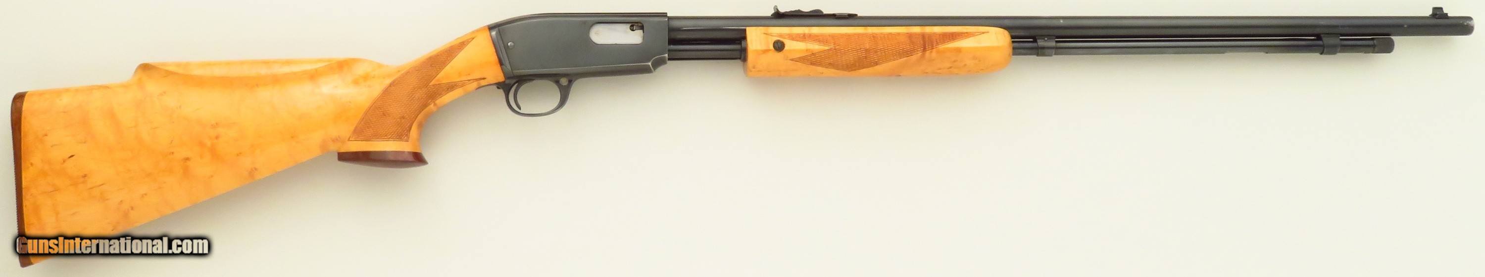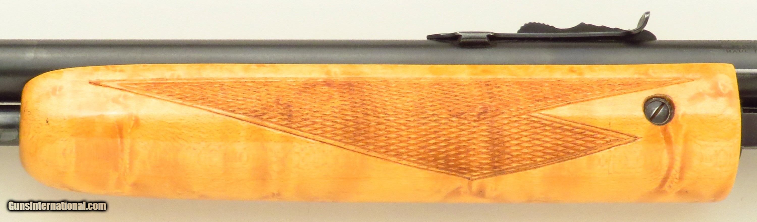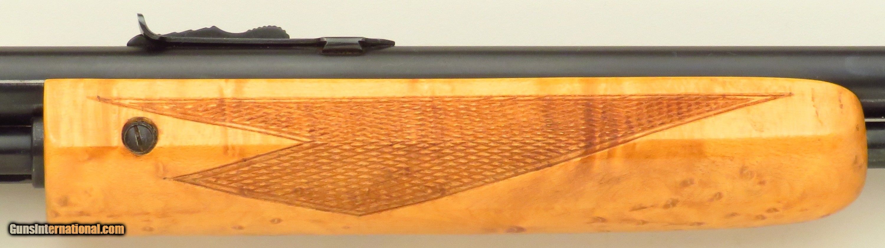 Description: Winchester Model 61 .22 Magnum with custom Fajen maple stock. Serial 283688 has a 24-inch barrel (blade front sight, eleva)tion-adjustabe rear sight). Features include a dovetailed receiver, wide forearm with double-bordered wrap checkering and butt with Monte Carlo comb (scalloped cheek rest, flared grip with rosewood cap and molded logo butt plate. DIMENSIONS: Weight is 6.0 pounds and the length-of-pull is 13.6 inches. CONDITION: The bore is strong and bright with one small scratch or machine mark on one of the lands. Mechanics are solid and trigger pull is crisp. Metal finish is at least 85 percent, most of the adjustment from what appear to be rack rubs on the barrel. Wood is at least 95 percent. The price is firm and layaway is available. $1,500 plus shipping. Rifle Caliber: .22 WMR (.22 Magnum) Price: $1,500.00 Shipping: $100.00 Contact Seller |