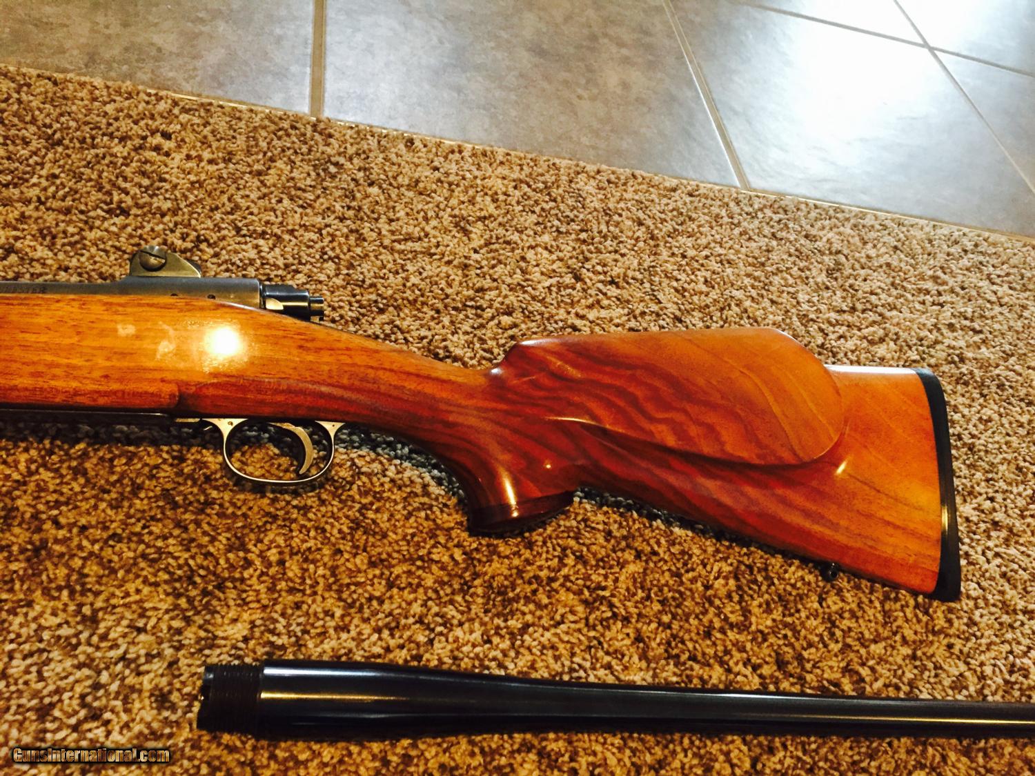 Description: 1952 Winchester model 70 rifle with a custom stock and custom 3 barrel set chambered in 7x61. One barrel is a Douglas premier. Reloading dies and some brass will also be included. SOLD |