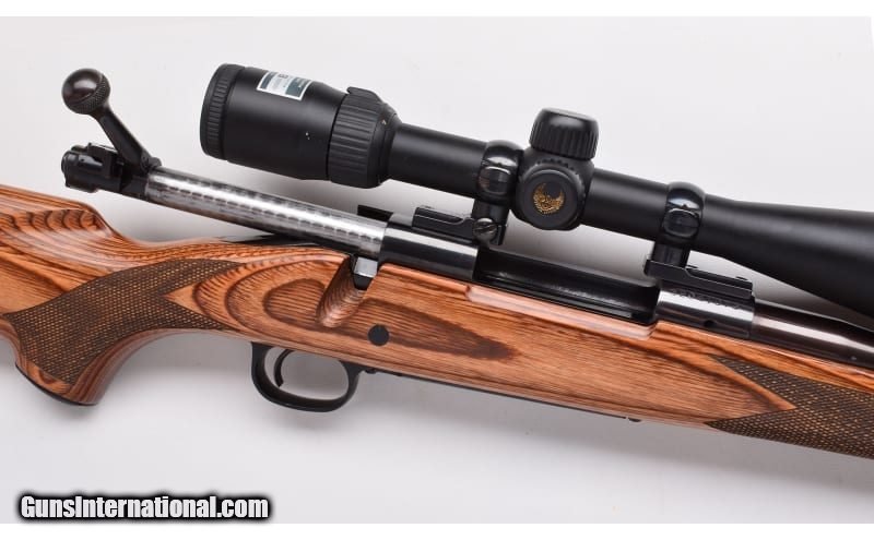 Description: Custom rifle based on a Winchester push-feed action with Douglas barrel with Kleinguenther muzzle brake. Clean rifle shows only a few light handling handling marks and freckles. .270 Winchester SOLD Metal Condition: Blued Wood Condition: Laminate Bore Condition: "Bright, Sharp Barrels: 26 inch Douglas Barrel Stock Dimensions: 13.5" LOP Butt Pad: Winchester Recoil Pad Weight: 10 Lbs. 5 Oz. Sights: Nikon Prostaff 4-12x40mm BDC Scope Item Location: Buda, TX |