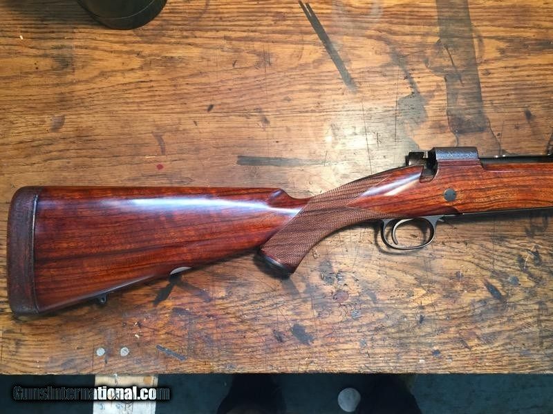 Description: Complete custom Winchester model 70 pre 64 in 338 Winchester Magnum with Douglas premium Barrel engraved receiver and bottom metal freshly blued. With expertly carved and checkered English Walnut gun stock with a leather-covered butt pad. All expertly completed by Jesse Brennan. Check out Jessie's work on the internet. SOLD Curio/Relic: Yes Manufacturer: Winchester Model: Pre 64 Model 70 Caliber Info: 338 Bore: New Chambers: New Condition: New Metal Condition: New rust blued Wood Condition: New Bore Condition: New Barrels: New Stock: English Walnut |