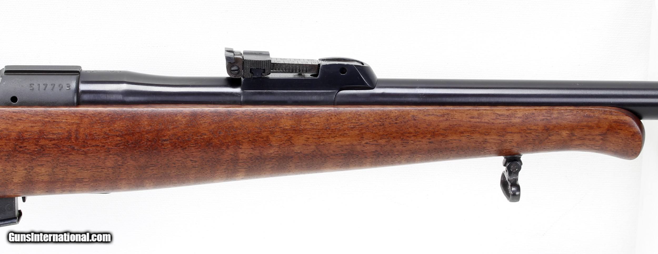 Description: CZ 452-2E ZKM Bolt Action Rifle in .22 Magnum. SN #517793. Mfg. in 1994. LOP 14". 25" Barrel with an EXCELLENT Bright Bore with STRONG RIFLING. The Blued Metal and Checkered Walnut Stock and Smooth Forend with Schnabel have been FULLY RESTORED by SHOOTER'S EXCHANGE and LOOK GREAT. Open sights. Top of Receiver is Slotted for Mounting a Scope. Sling Swivels. 1- 5 shot magazine. Plastic Buttplate. A GREAT LOOKING RIFLE IN A GREAT CALIBER. Weight: 6.37 lbs. Trigger Pull: 4 1/4 lbs. More photos available upon request. Ships to Lower 48 W/ Insurance $45.00. SOLD Rifle Caliber: .22 WMR (.22 Magnum) Manufacturer: CZ Model: 452-2E ZKM Serial Number: 517793 Barrel Length: 25 Condition: Excellent Metal Condition: Refinished Wood Condition: Refinished Bore Condition: Excellent Action: Bolt LOP: 14 Finish: Blue Weight: 6.37 lbs. Manufacture Date: 1994 |