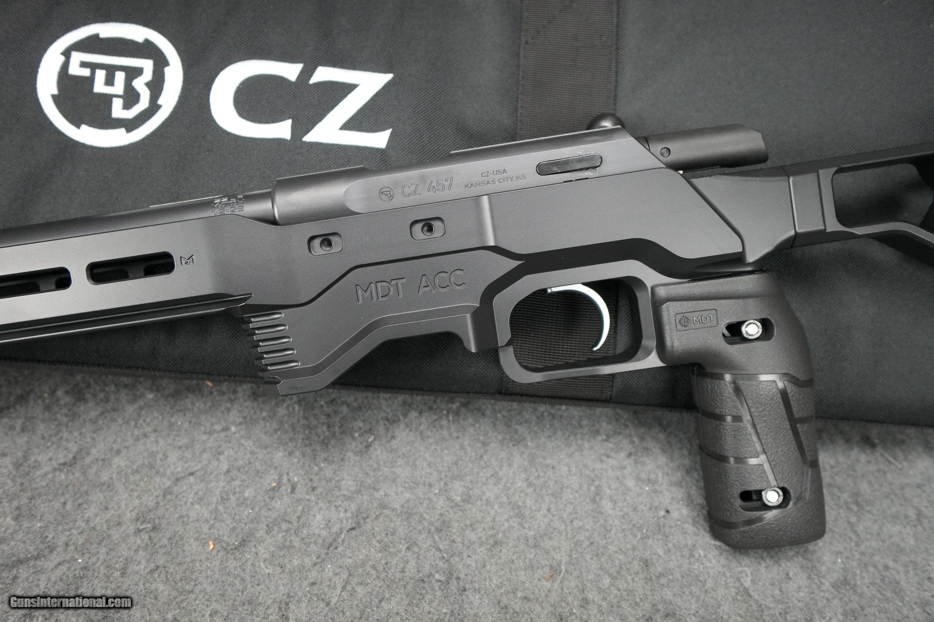 Description: The CZ 457 Chassis boasts an upgraded chassis designed to enhance the rimfire competition experience. Geared towards providing cost-effective training for centerfire shooters, this full-sized rifle in 22 LR offers a shorter field for effective and economical practice sessions. Featuring the MDT ACC Premier Chassis, it enables adjustments for Length of Pull (LOP), a Cheek riser, Grip Adjustment, and an Arca rail attachment, providing versatility and adaptability. Renowned in the competitive sphere, MDT brings its respected craftsmanship to this collaboration, marking a significant partnership. With only 500 units available for the year 2023, this limited run rifle offers exclusivity alongside its functionality. The inclusion of a 24-inch barrel ensures a balanced feel, replicating the handling of a full-size rifle for an optimal shooting experience. Product Name CZ 457 Chassis Firearm Type Rifle Purpose Competition Chambering 22 LR Twist Rate 1:16 in Magazine Capacity 5 Magazine Type Detachable Stock Hard anodized aircraft-grade 6061 aluminum, with Cerakote finish Sights No Sights, Integrated 11mm Dovetail Barrel Heavy Cold Hammer Forged Barrel Length 24 in Weight 9 lbs. Trigger Mech ADJ, Single Stage Safety Two-Position, Push-To-Fire SOLD Rifle Caliber: .22 Long Rifle Manufacturer: CZ-USA Model: 457 Varmint Precision Barrel Length: 24" Barrel Condition: BRAND NEW Action: BOLT |