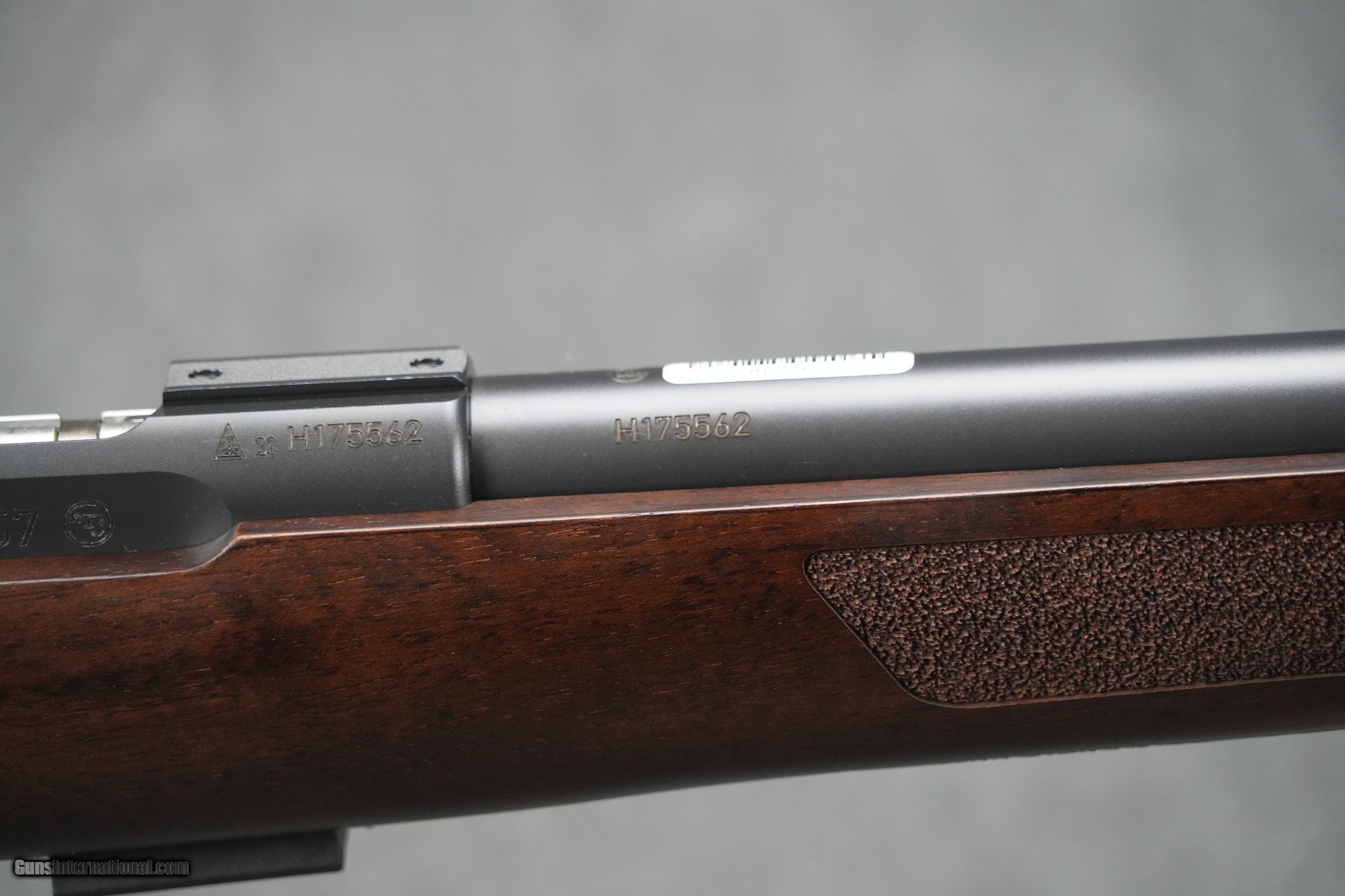 Description: Finally, after numerous requests from their customers, the long-awaited and anticipated left-handed version of our popular rimfire rifle is here! The left-hand model retains all of the same high-quality parts and features as CZ’s standard 457 Varmint. The heavy barrel not only makes for good harmonics, but it also allows the Varmint to perform well with a wide variety of rimfire loads, translating into an accurate platform for shooting targets or getting game. The Turkish walnut stock has an American-style comb for use with a scope and a wide, flat forend that rides a sandbag well. Laser-cut stippling gives grip fore and aft. It also features the same 60° bolt throw, allowing for a much easier scope fitment. Finally, the trigger will still be adjustable for weight, creep, and over-travel allowing you to set the trigger exactly how you want it. With the exact same swappable barrel system as the 455 and the same reliable polymer magazine system, the 457 is without a doubt the best rimfire platform they’ve ever fielded. Product Name CZ 457 Varmint LH 22 LR SKU 02392 Firearm Type Rifle Purpose Hunting Chambering .22 LR Twist Rate 1:16 in Magazine Capacity 5 Magazine Type Detachable Stock Circassian Walnut, Varmint-Style Length Of Pull 13.75 in Sights No Sights, Integrated 11mm Dovetail Barrel Cold Hammer Forged Barrel Length 20 in Trigger Mech Adjustable Safety Two-Position, Push-To-Fire SOLD Rifle Caliber: .22 Long Rifle Manufacturer: CZ USA Model: 457 Varmint Left Hand Condition: BRAND NEW |