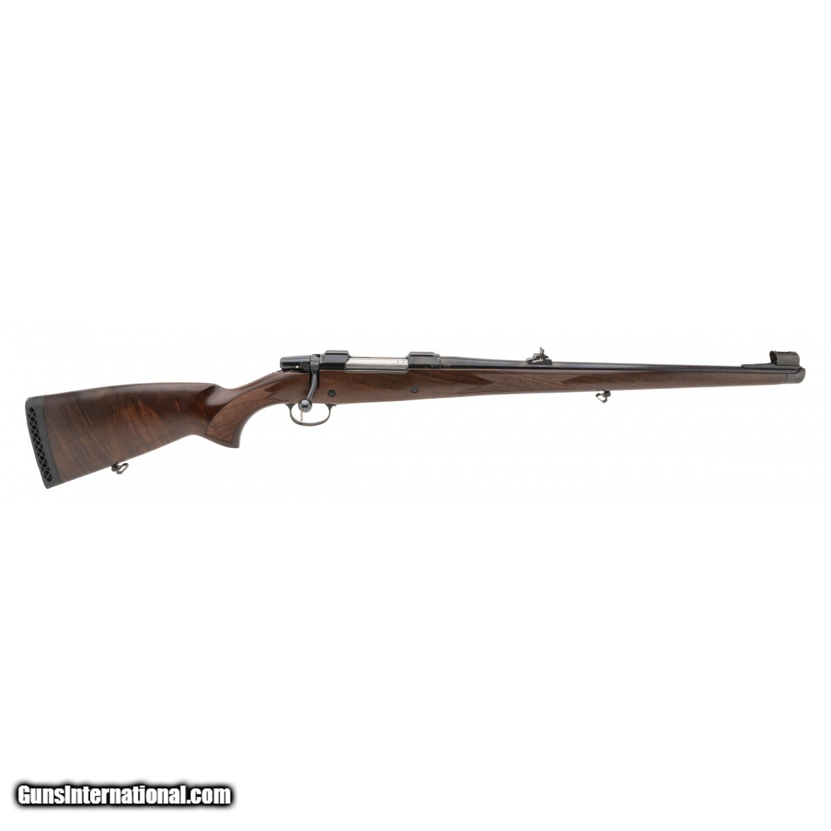 SN: A296419. Big-bore bolt-action rifle based on the Mauser action, made by CZ in 2007. ""FS"" model with full-length Mannlicher style stock. 20"" barrel chambered for 9.3x62mm Mauser, with adjustable rear leaf and hooded front bead sights. Good to great condition with some finish wear on the rear of the barrel and scattered handling marks in the wood. Action functions correctly including safety. Bore is bright with good rifling.