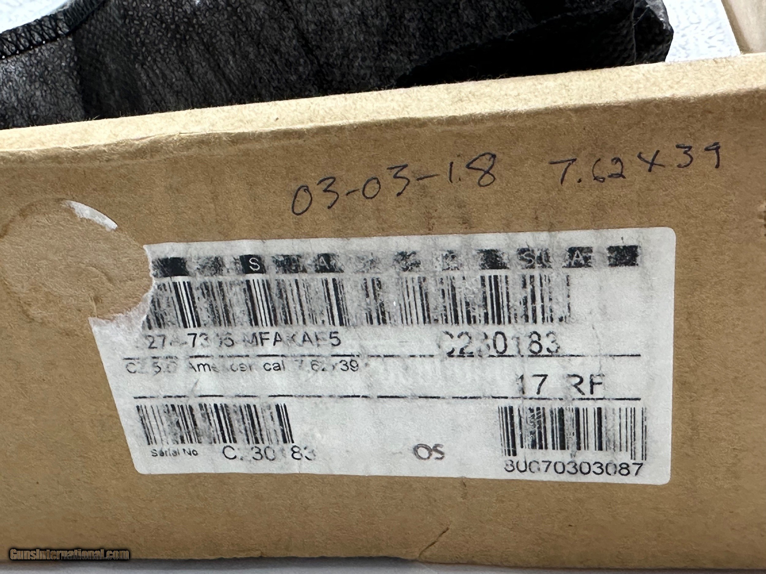 Description: Discontinued 2017. This special version of the 527 American wears an aged beechwood stock and is chambered in 7.62×39. Whether you’re after varmints, medium game or just like to punch holes in paper, our micro-Mauser 527 can do the job. Built on a .223-length action, the thiniest of our centerfire platforms is also one of the most beloved by CZ fans. The CZ 527 American features a classic American pattern stock, a sporter-weight hammer forged barrel, a single set trigger and a recessed target crown. Made to be used with optics, the American has no sights but is equipped with a 16mm dovetail for mounting rails or ringmounts. Comes with CZ factory Rings. Maine residents add 5.5% Sales tax Flat 45.00 Shipping Fee Price reflects a 3.5% cash discount SOLD Rifle Caliber: 7.62x39mm Manufacturer: CZ Model: 527 American Serial Number: C23018 Barrel Length: 22 Condition: *Mint* New in Box Metal Condition: *Mint* New in Box Wood Condition: *Mint* New in Box Bore Condition: *Mint* New in Box Action: Bolt Finish: Blued Manufacture Date: 2017 or older Extras: Box and papers Item Location: Buxton Maine |